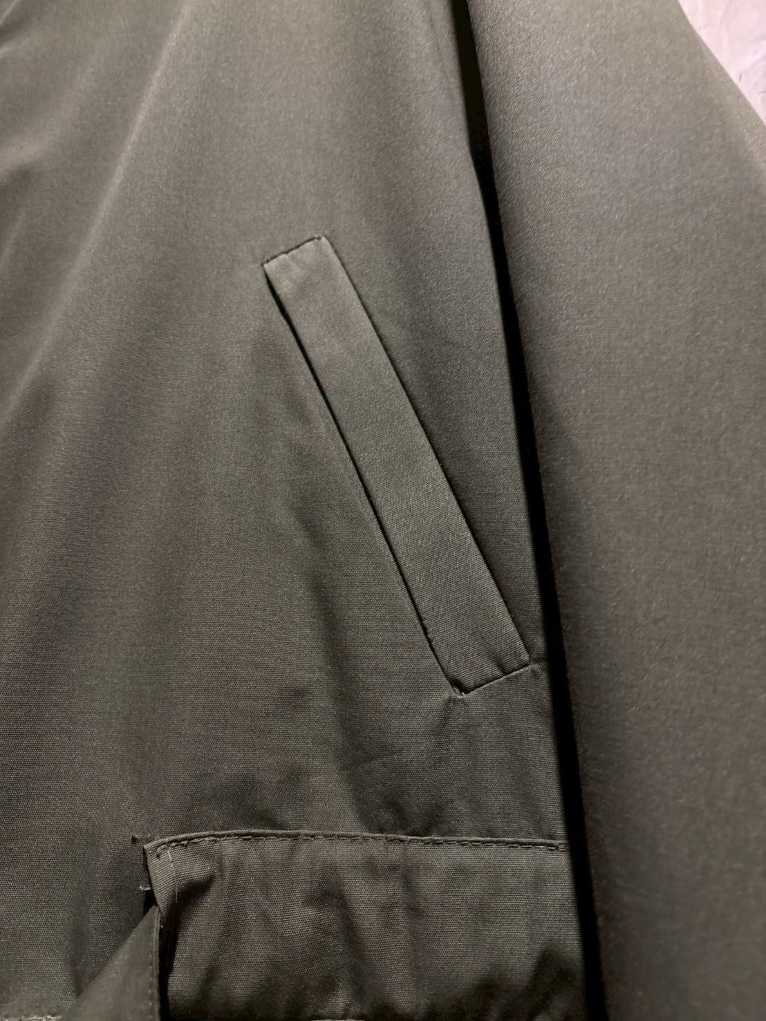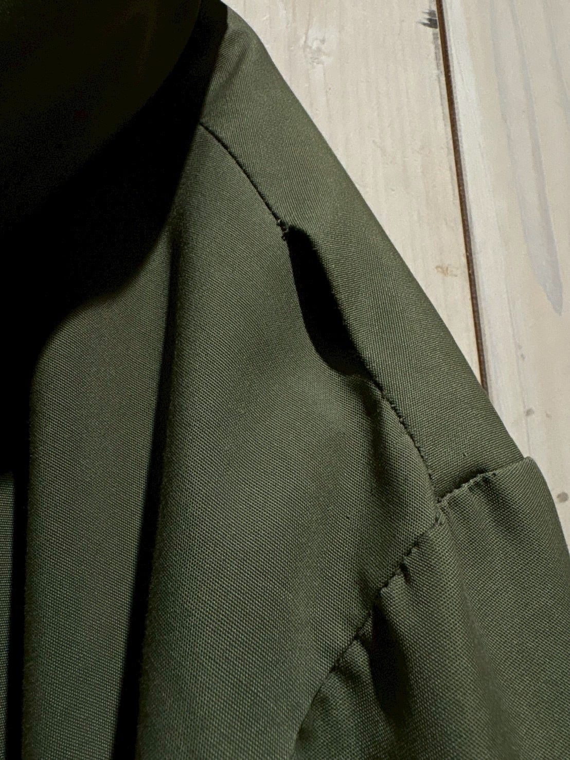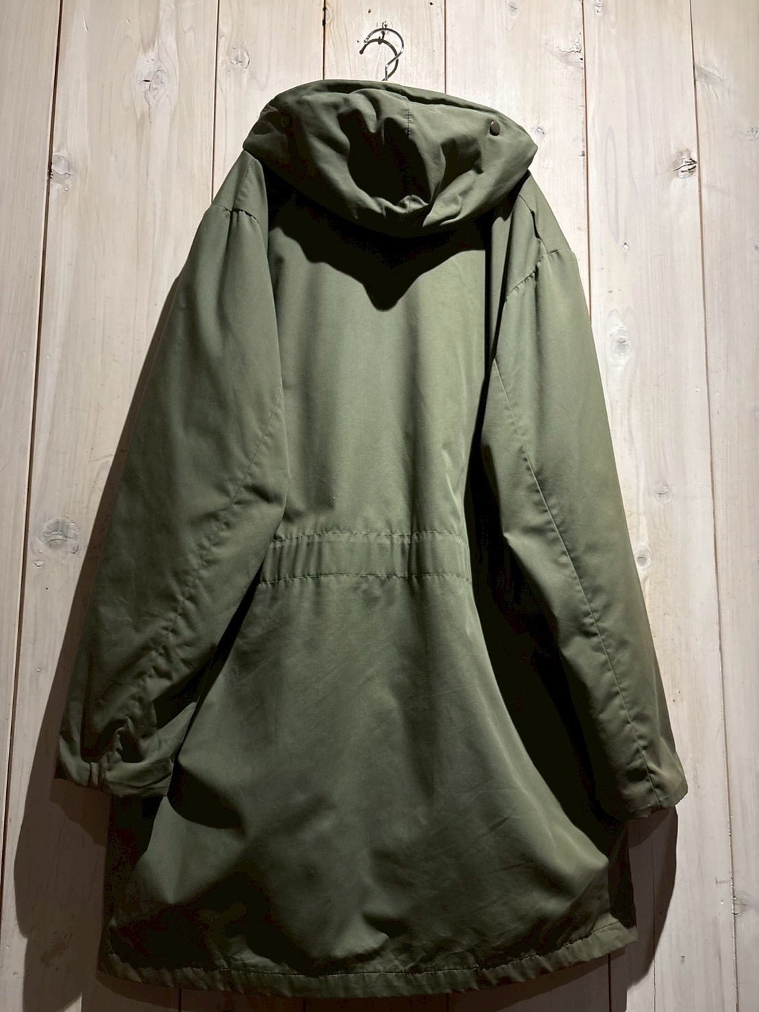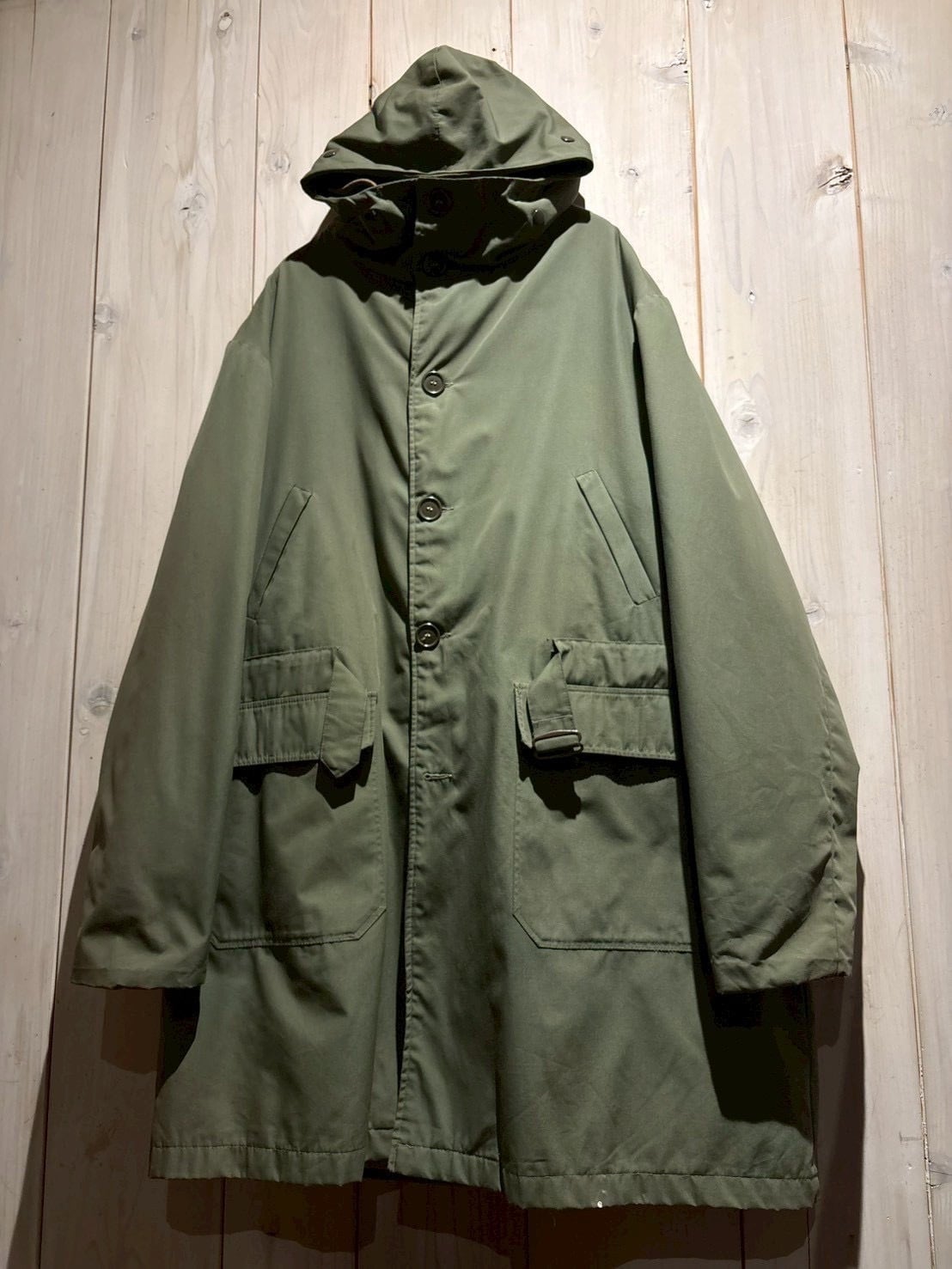 シェルにはオリーブカラーのコットン×ナイロンのファブリックを採用。ハリのある質感で風をしっかりと遮りつつ、着用を重ねることで柔らかさと表情が増していく素材感。内側にはウールライニングが配され、当時の寒冷地仕様らしい高い保温性を確保しています。