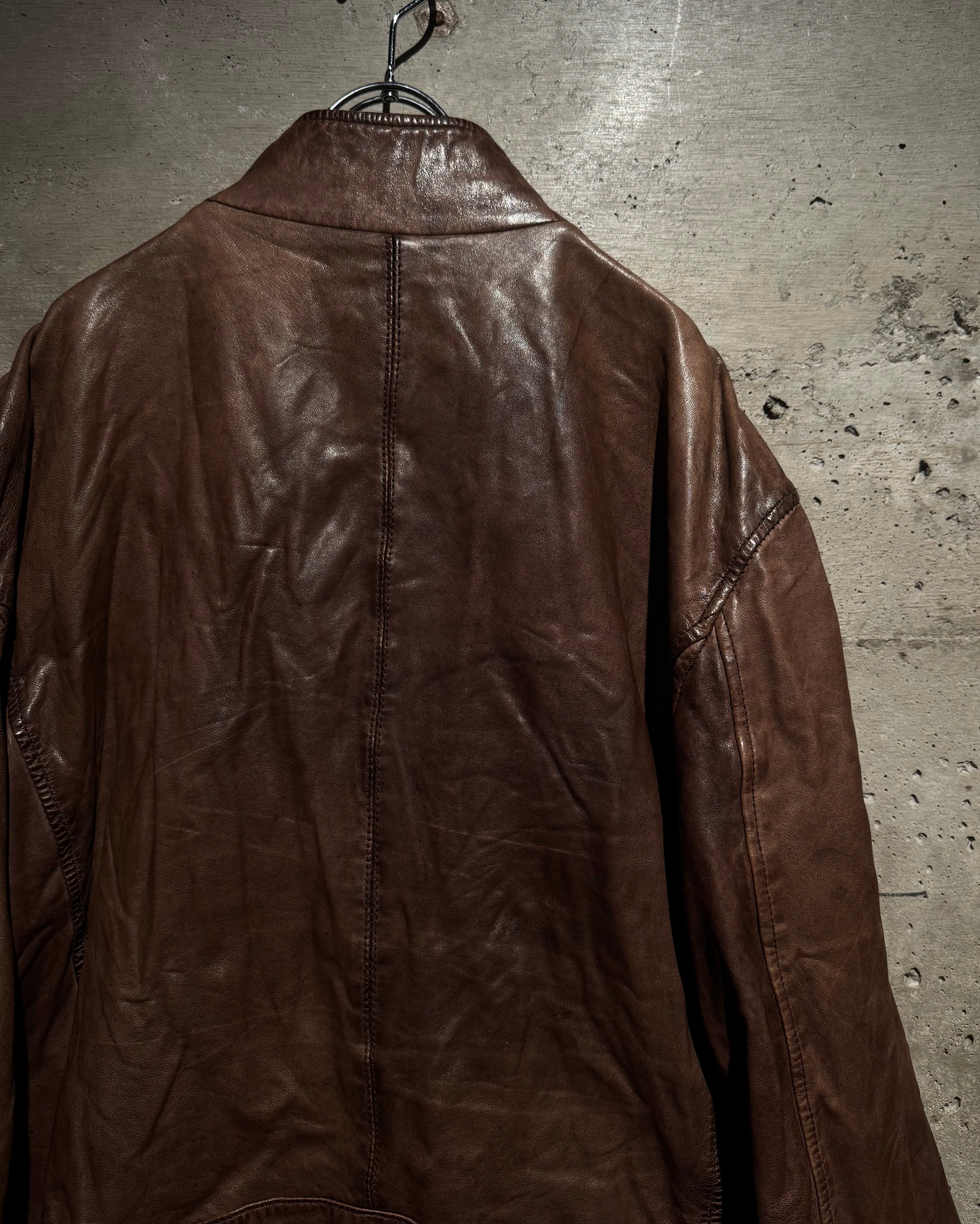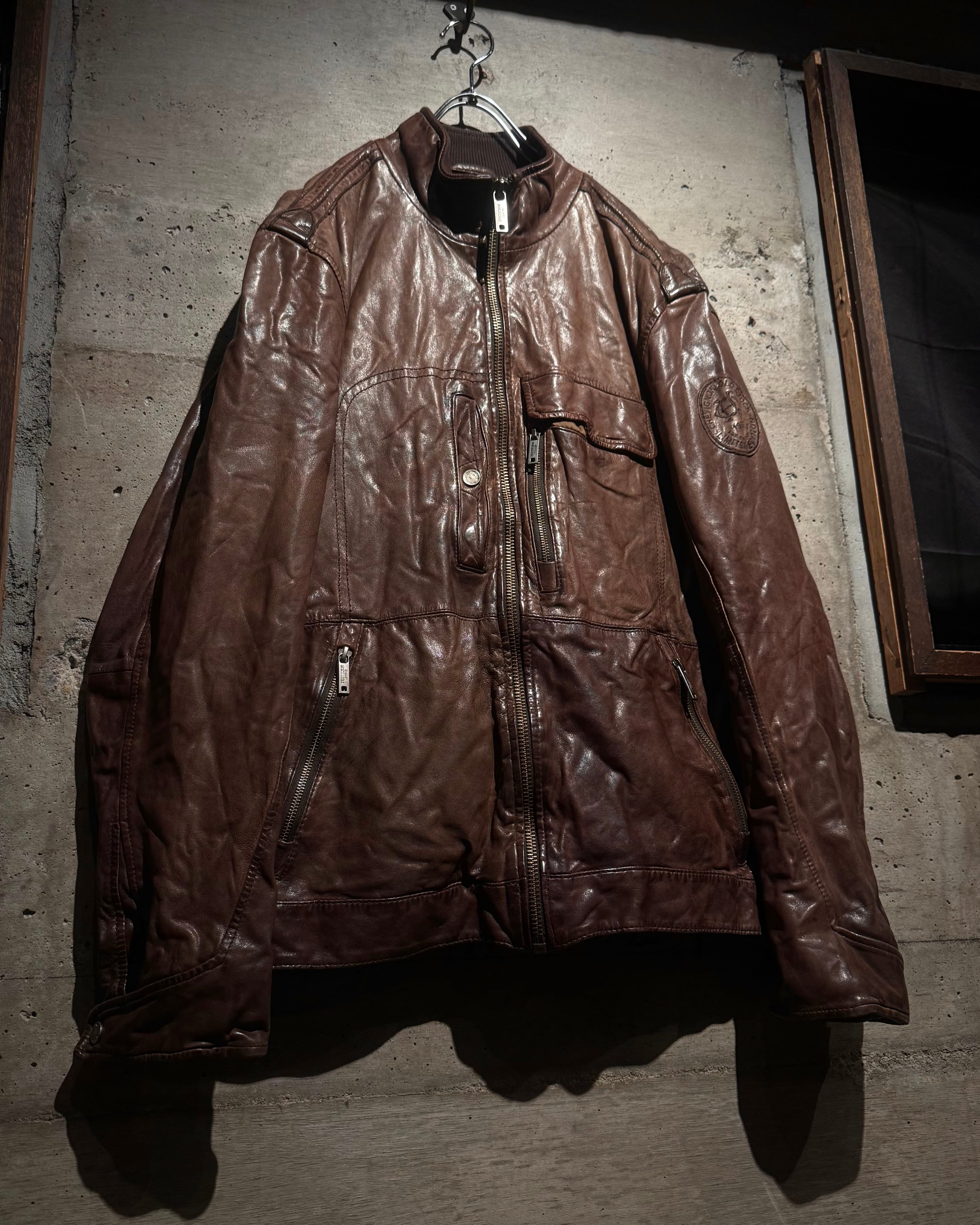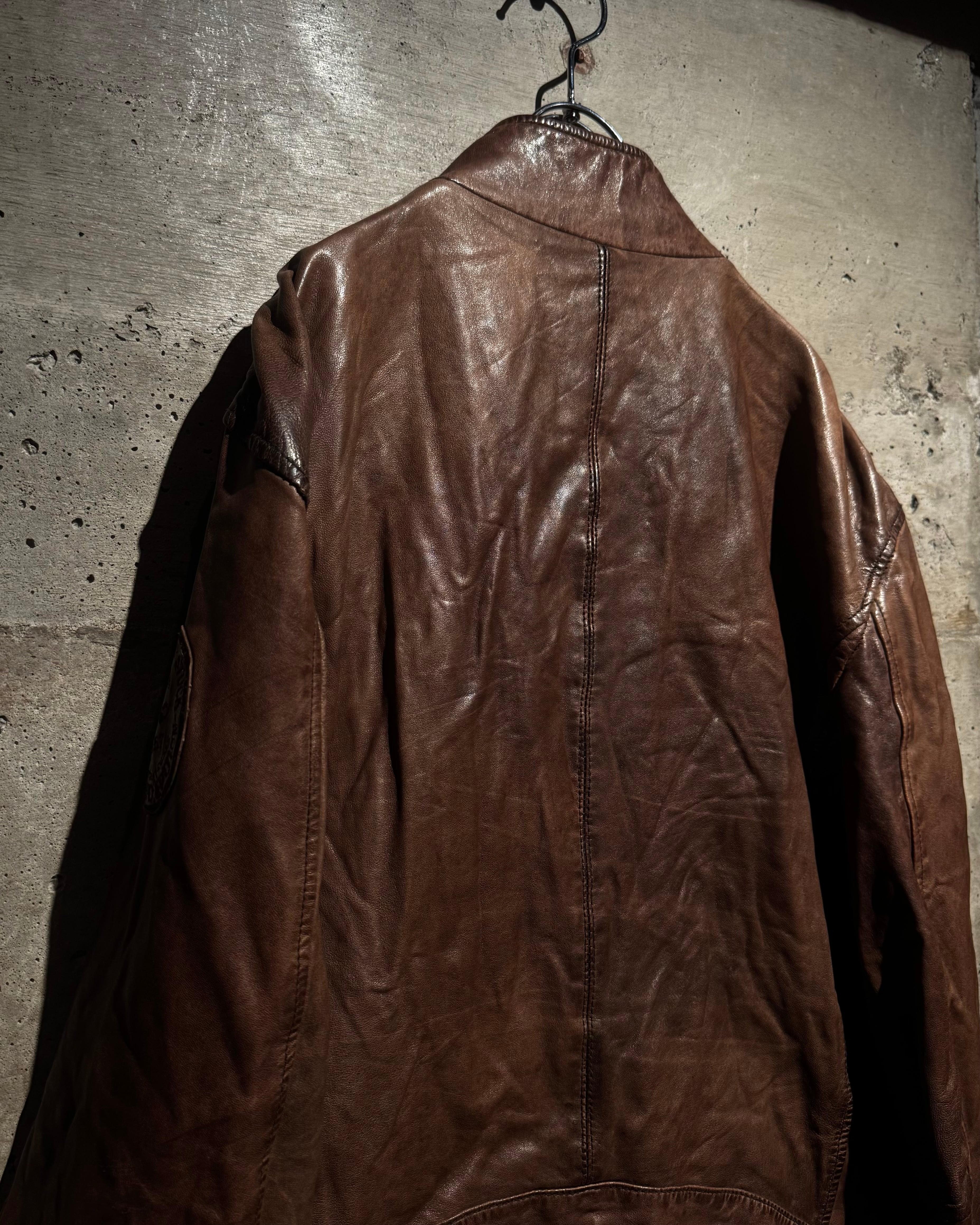 しっとりとしたブラウンレザーを用いたボディは、着用を重ねることで生まれた深いシワと艶が混ざり合い、非常に奥行きのある仕上がりに。