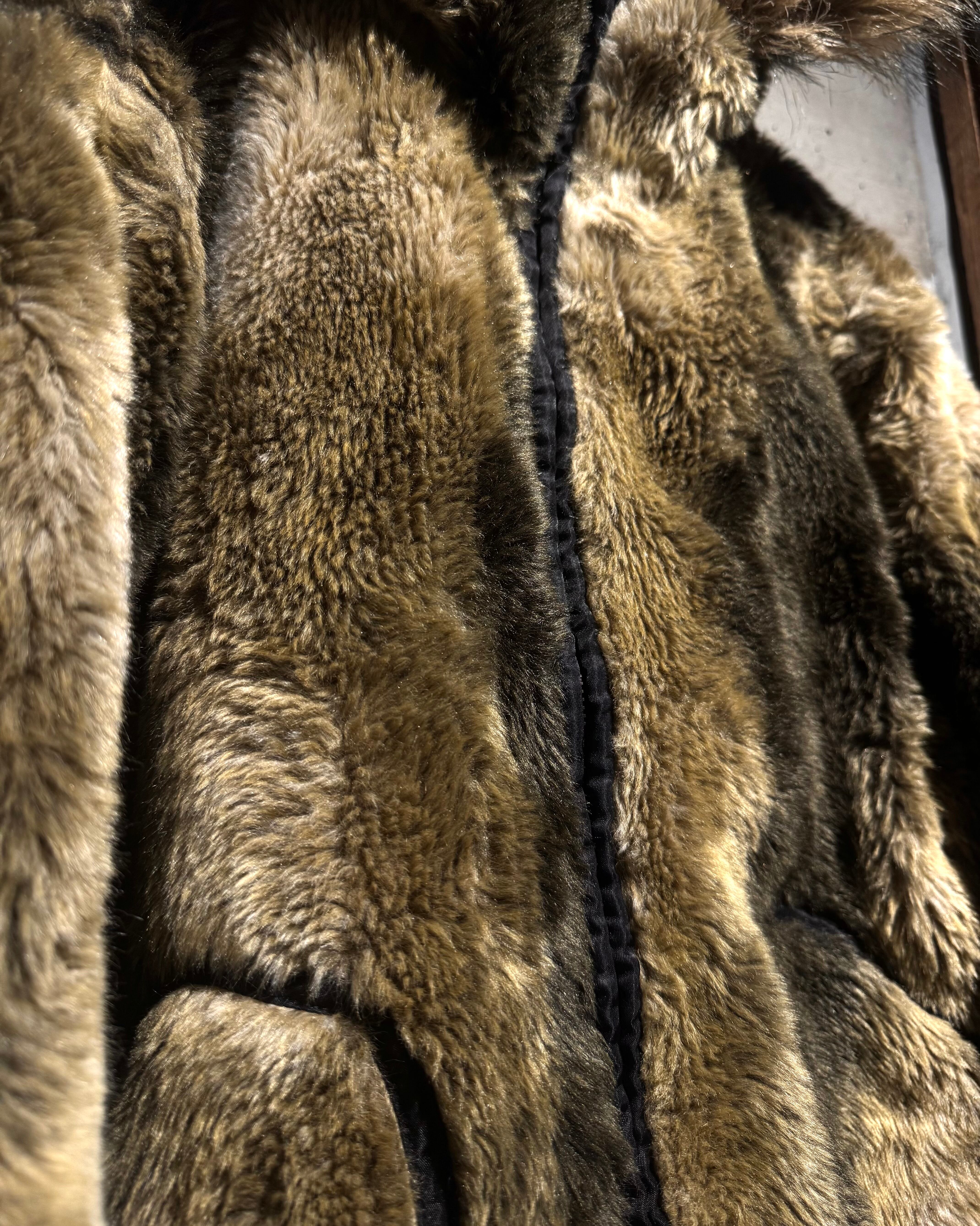 一面は毛足の長いフェイクファーを贅沢に使用。ブラウン、ベースの奥行きのあるグラデーションで、光の当たり方によって表情が変化するラグジュアリーな仕上がり。ボリューム感がありながらも、野暮ったさのないバランスで、主役級の存在感を放ちます。