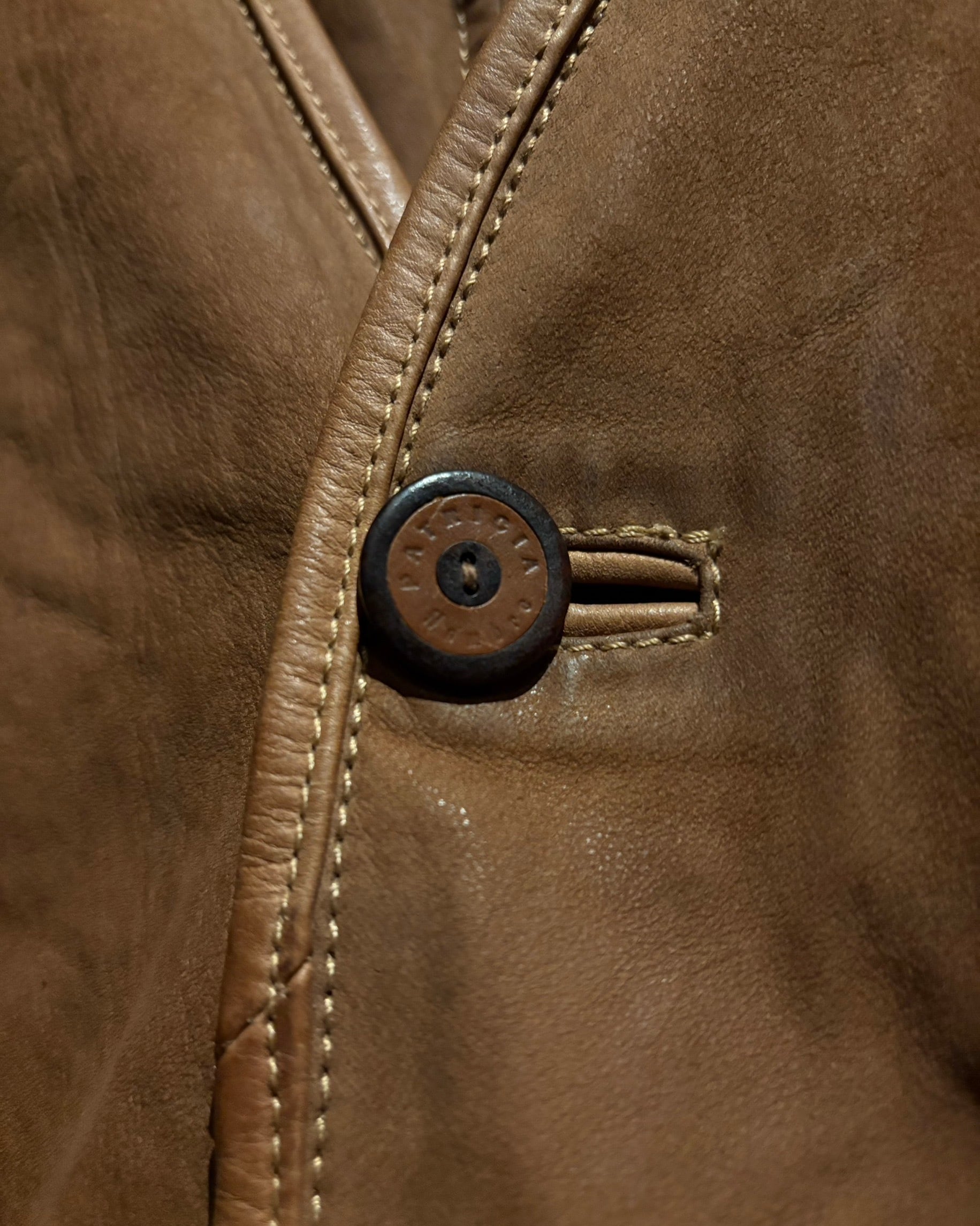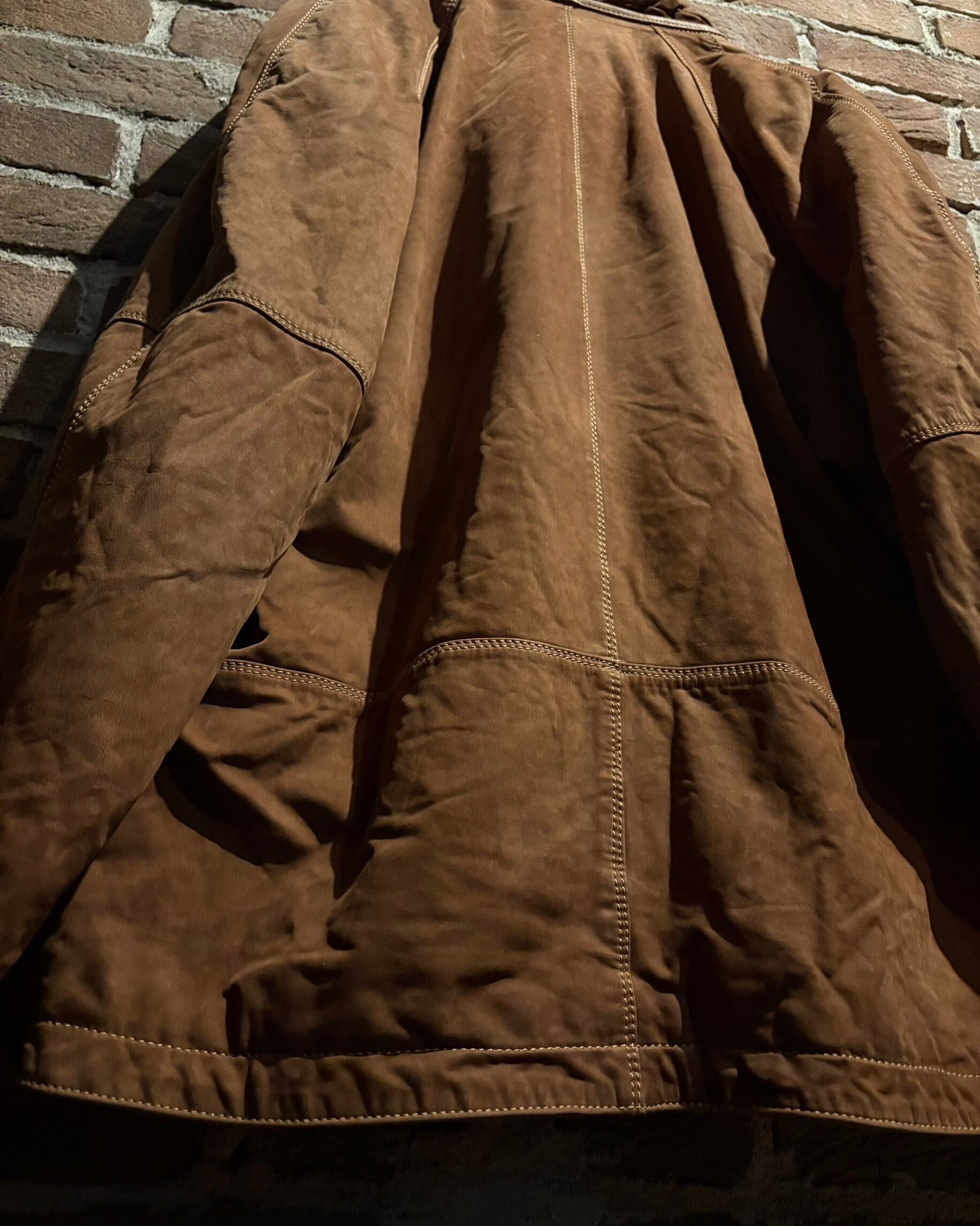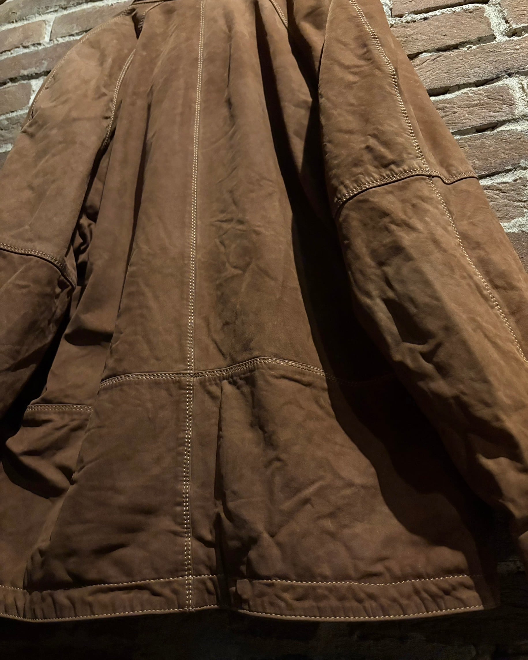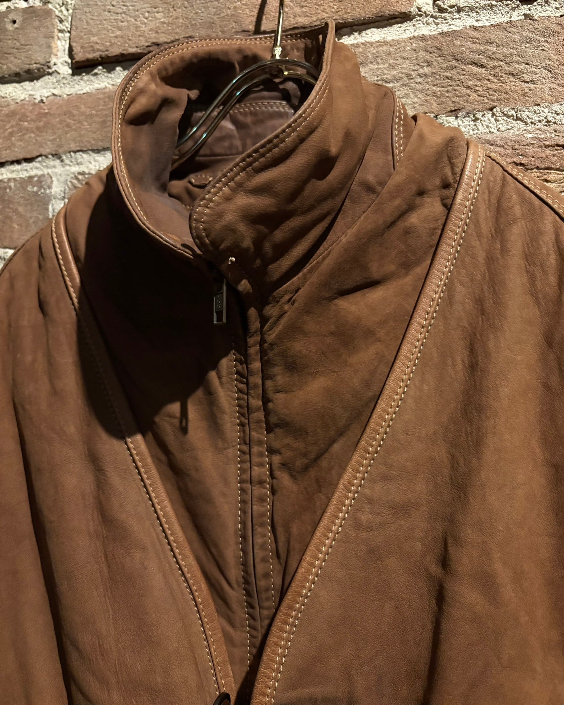 柔らかさと鈍い艶を併せ持つレザーに、立体的なパターンが重なり、非常に雰囲気のある仕上がり。薄手で着用しやすい点も魅力です。