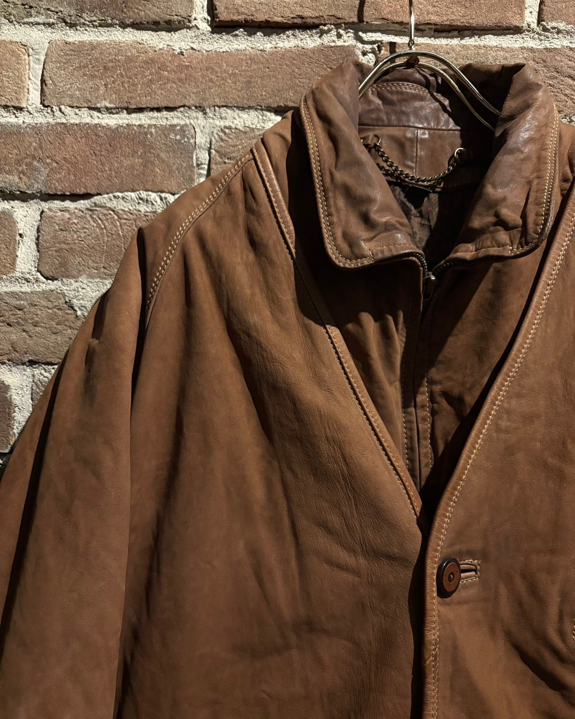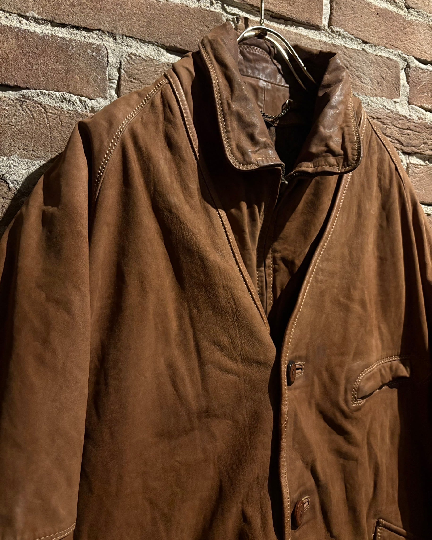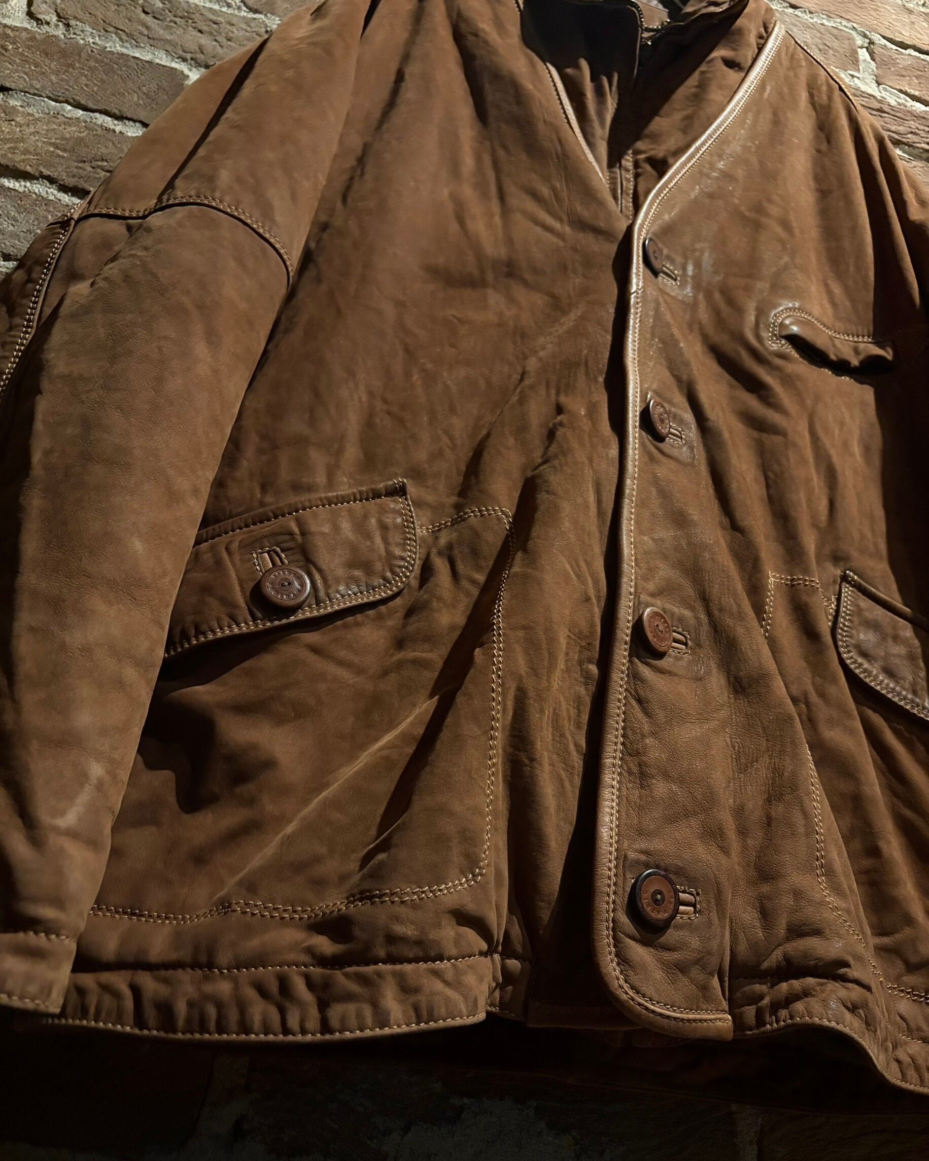 重厚感のあるブラウンレザーを用いたボディに、独創的なレイヤードデザインを落とし込んだスペシャルなレザージャケット。