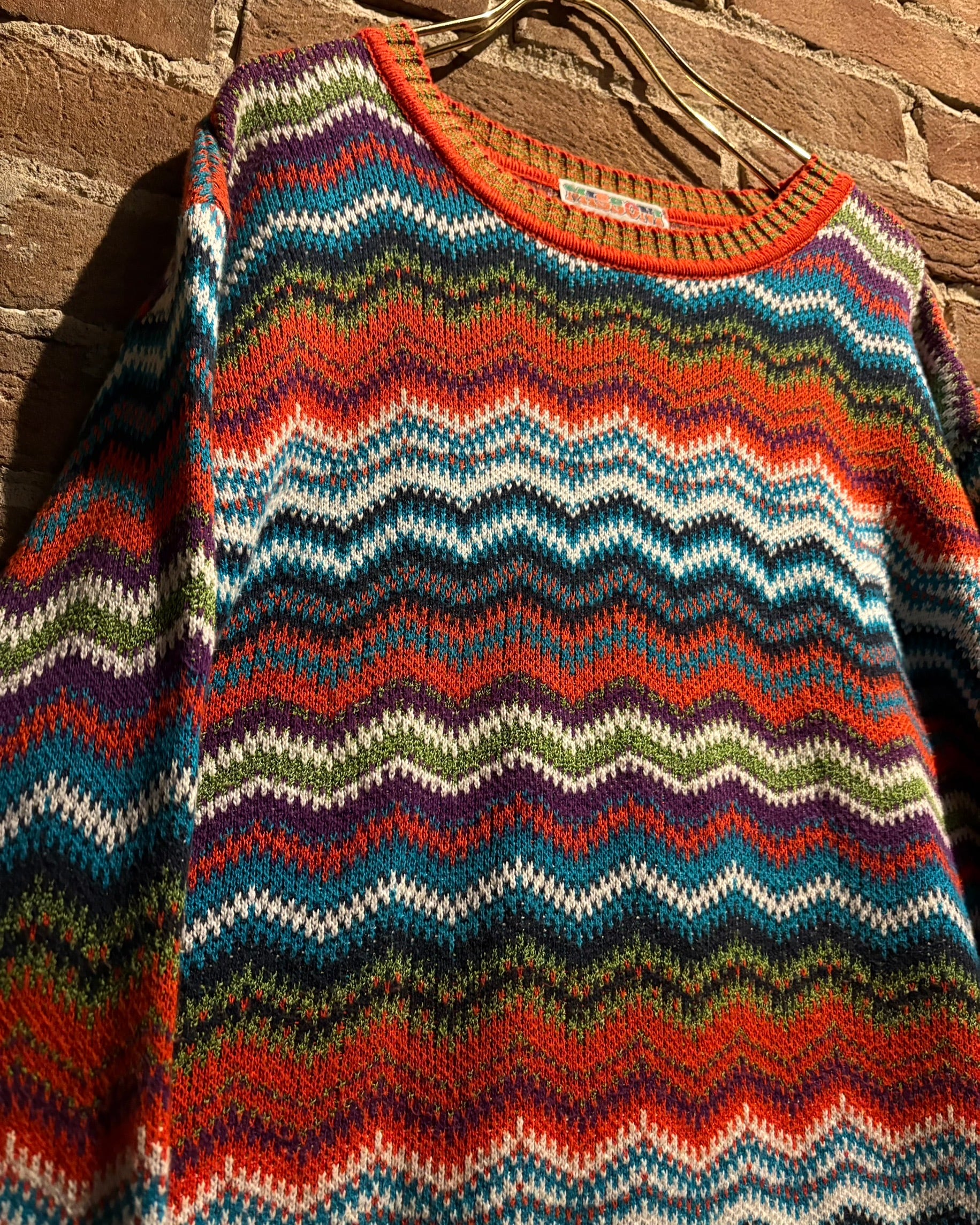 イタリアを代表するニットブランド“MISSONI”らしい、色彩感覚とパターンワークが存分に発揮された存在感抜群のニット。