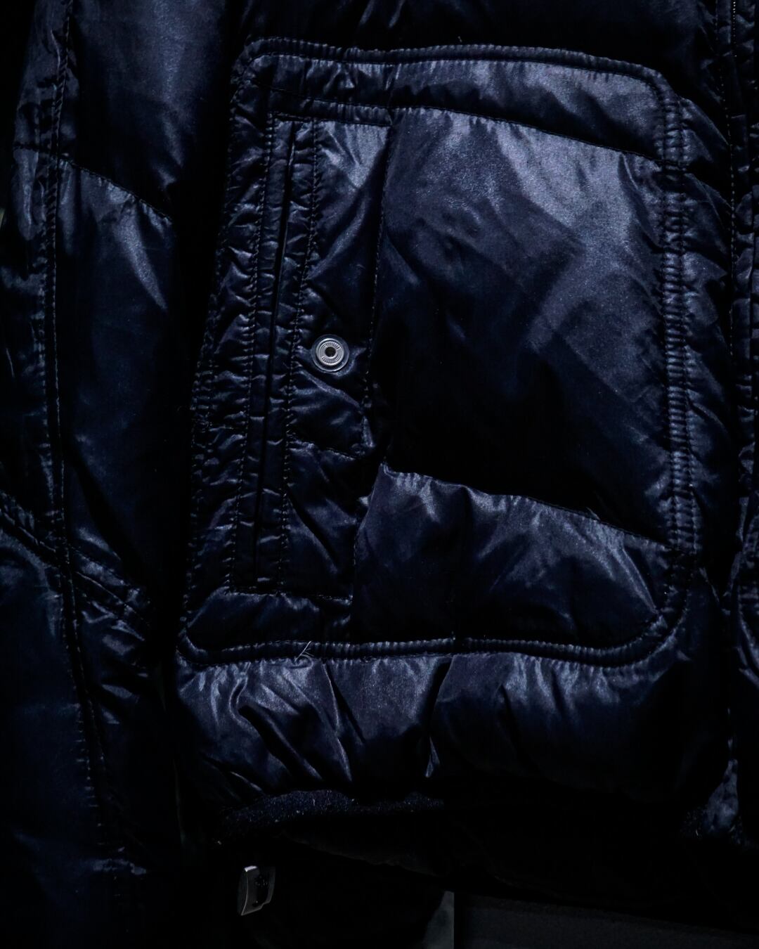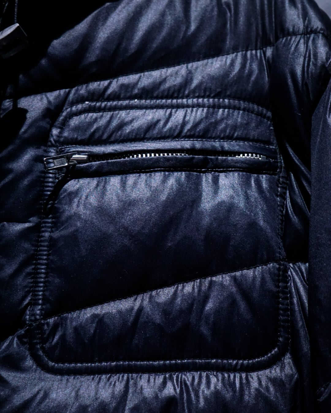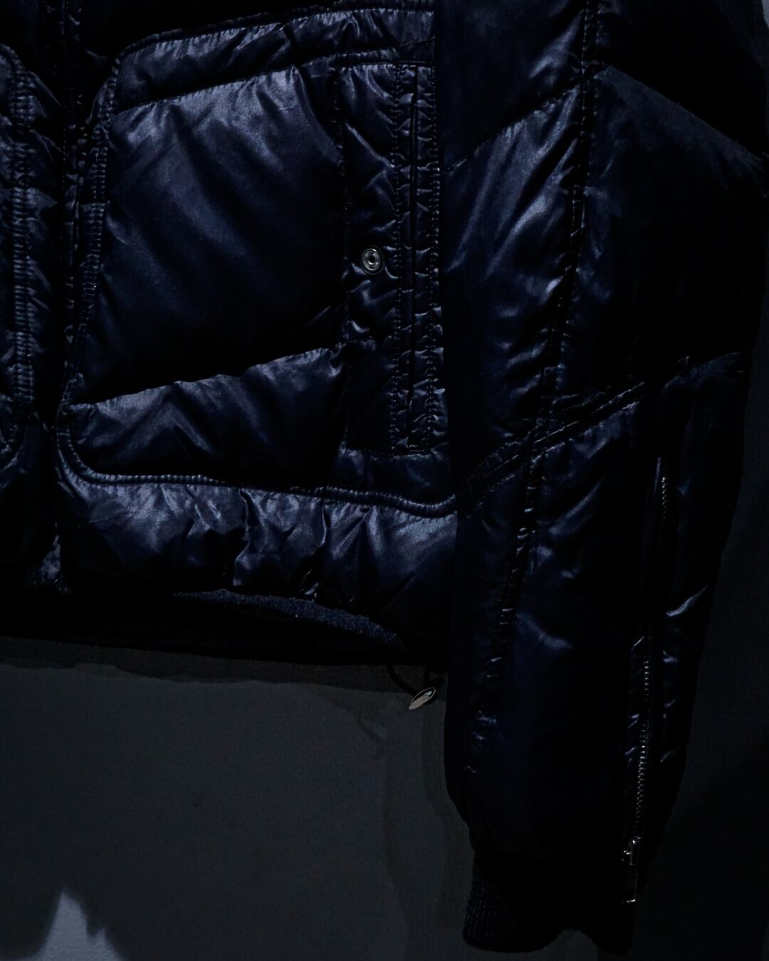 光沢を抑えたネイビートーンのナイロンシェルは、しっとりとした質感と奥行きのある表情が印象的。立体的に走るキルティングステッチがボリュームを美しく制御し、ダウン特有の膨らみを洗練されたなシルエットへと昇華しています。