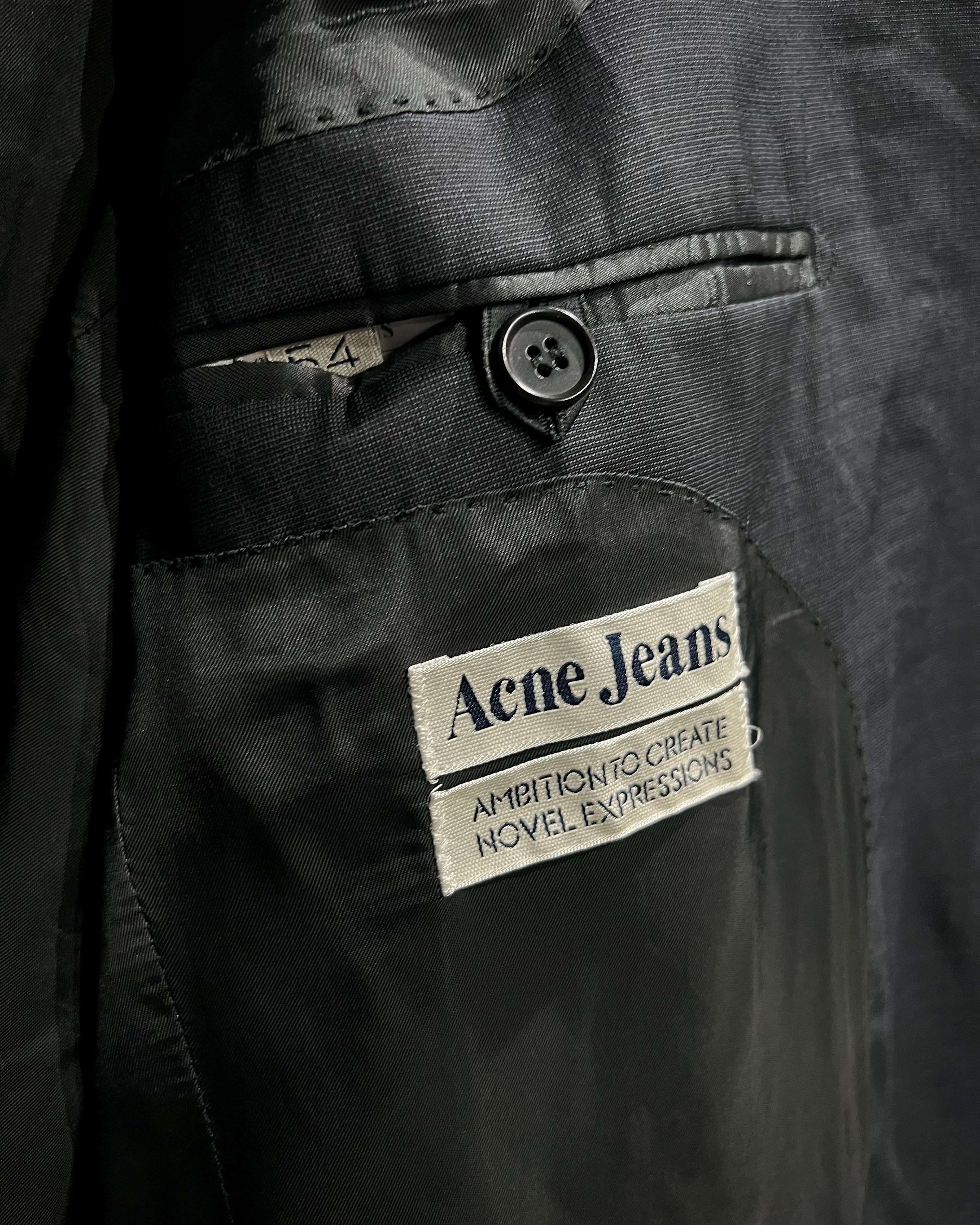 “Acne Jeans”らしいミニマルな空気感が色濃く反映されたテーラードジャケット。