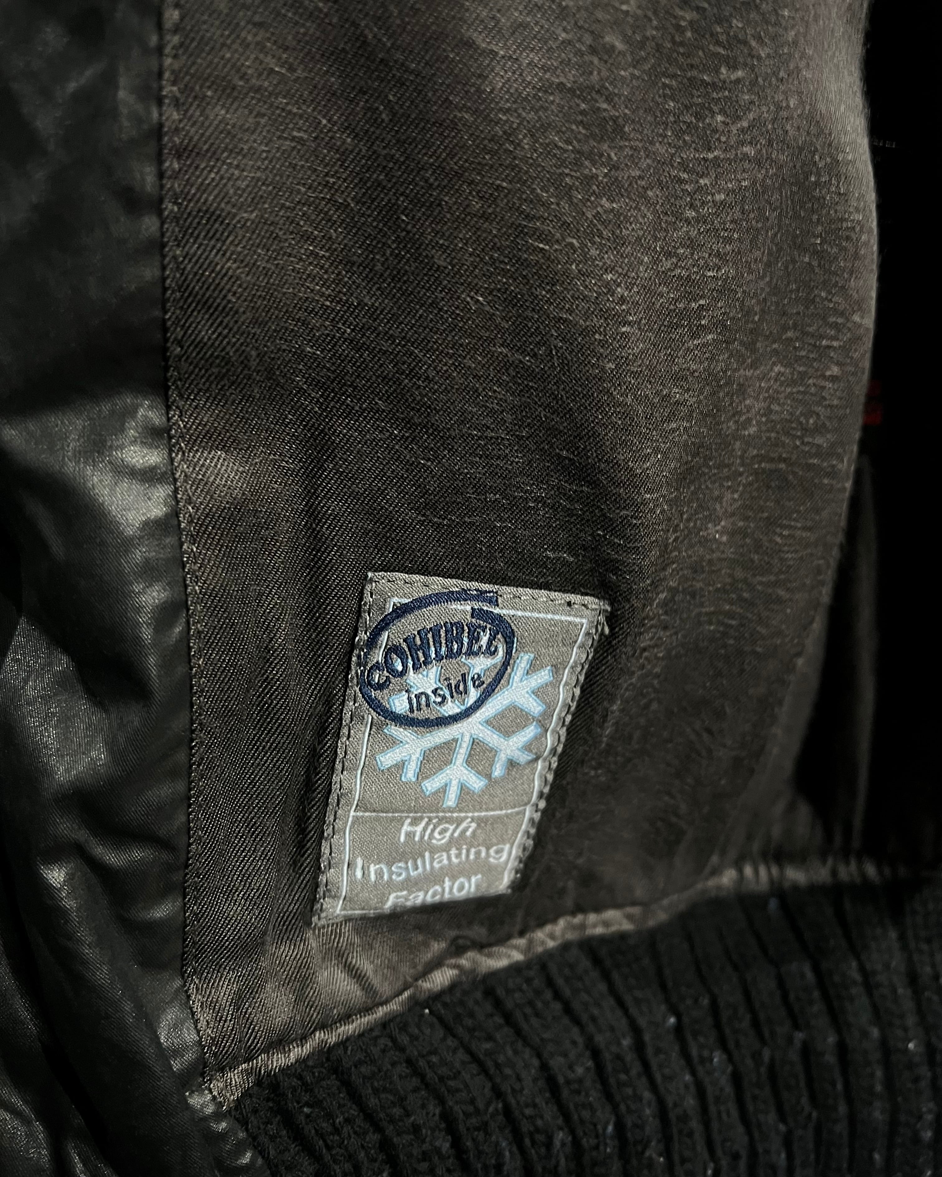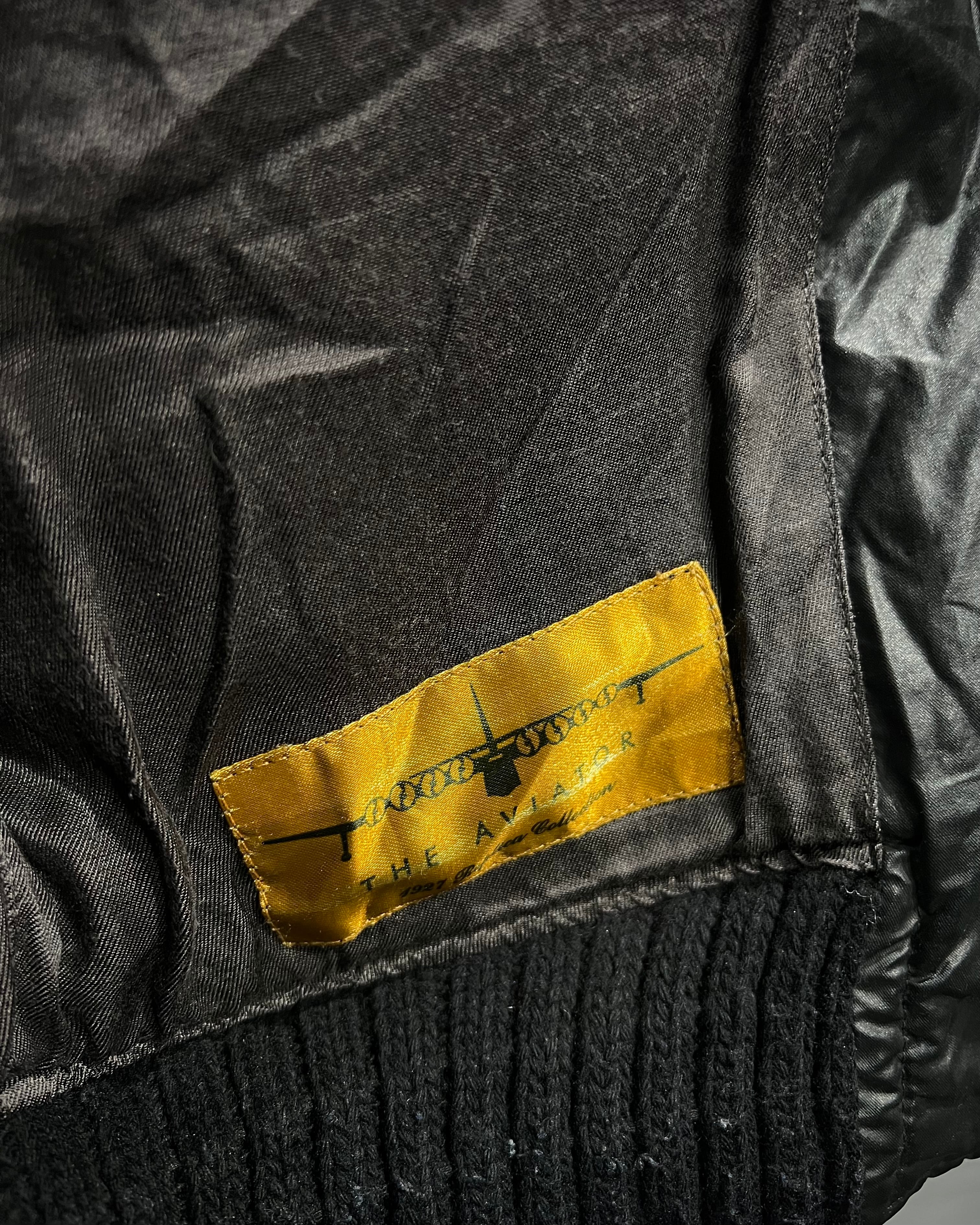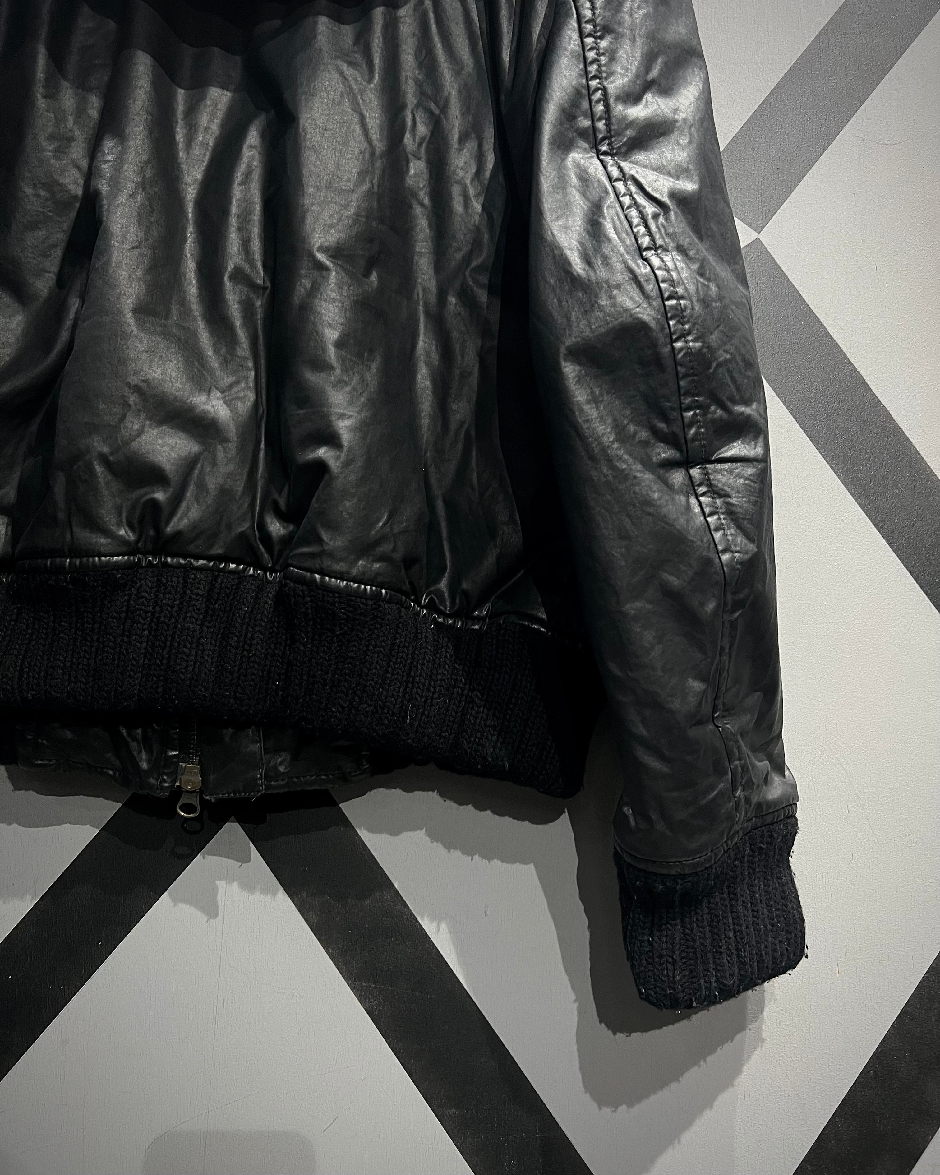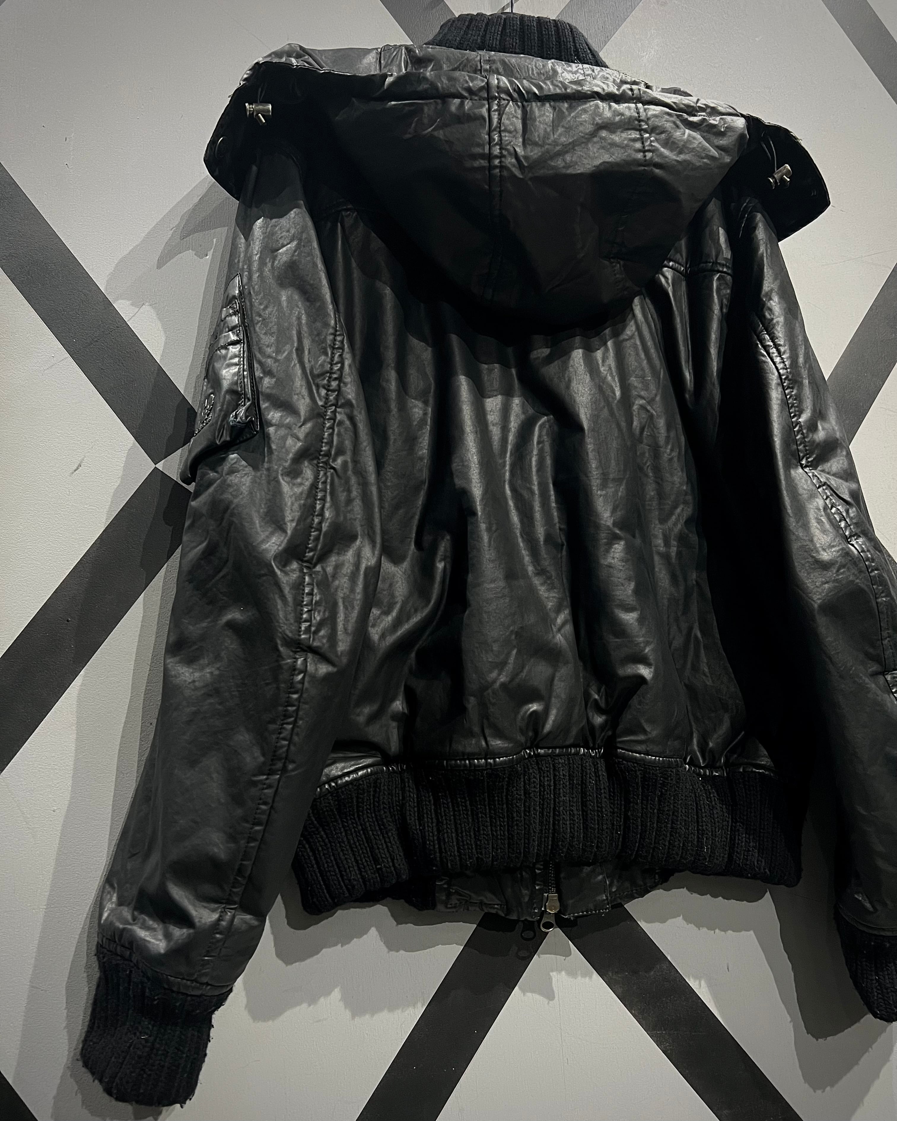 フライトジャケットをデザインソースに、重厚感のあるブラックボディで構成。独特の鈍い光沢を帯びた素材使いがソリッドで、ミリタリーを軸にしながらもモードな空気感を纏っています。