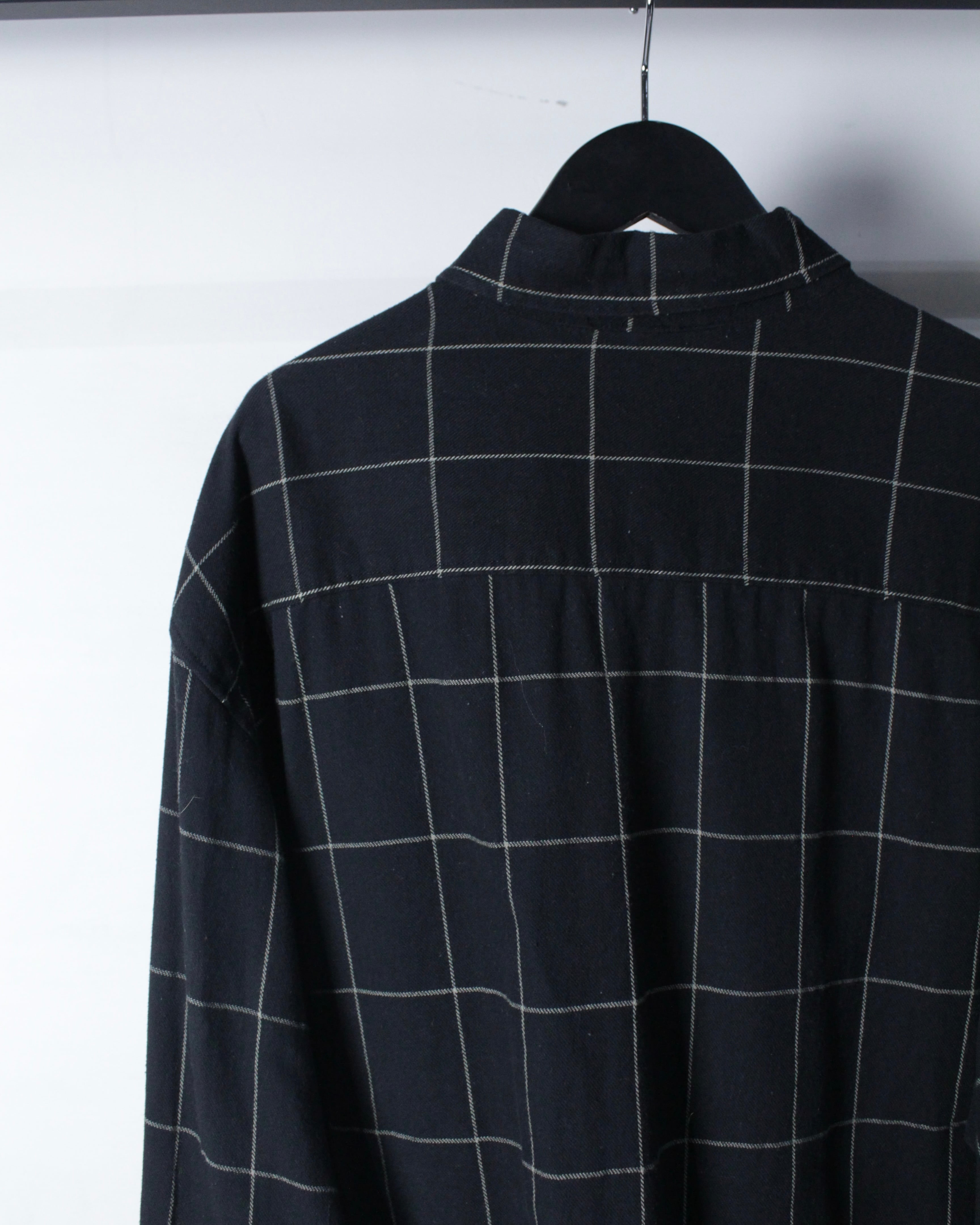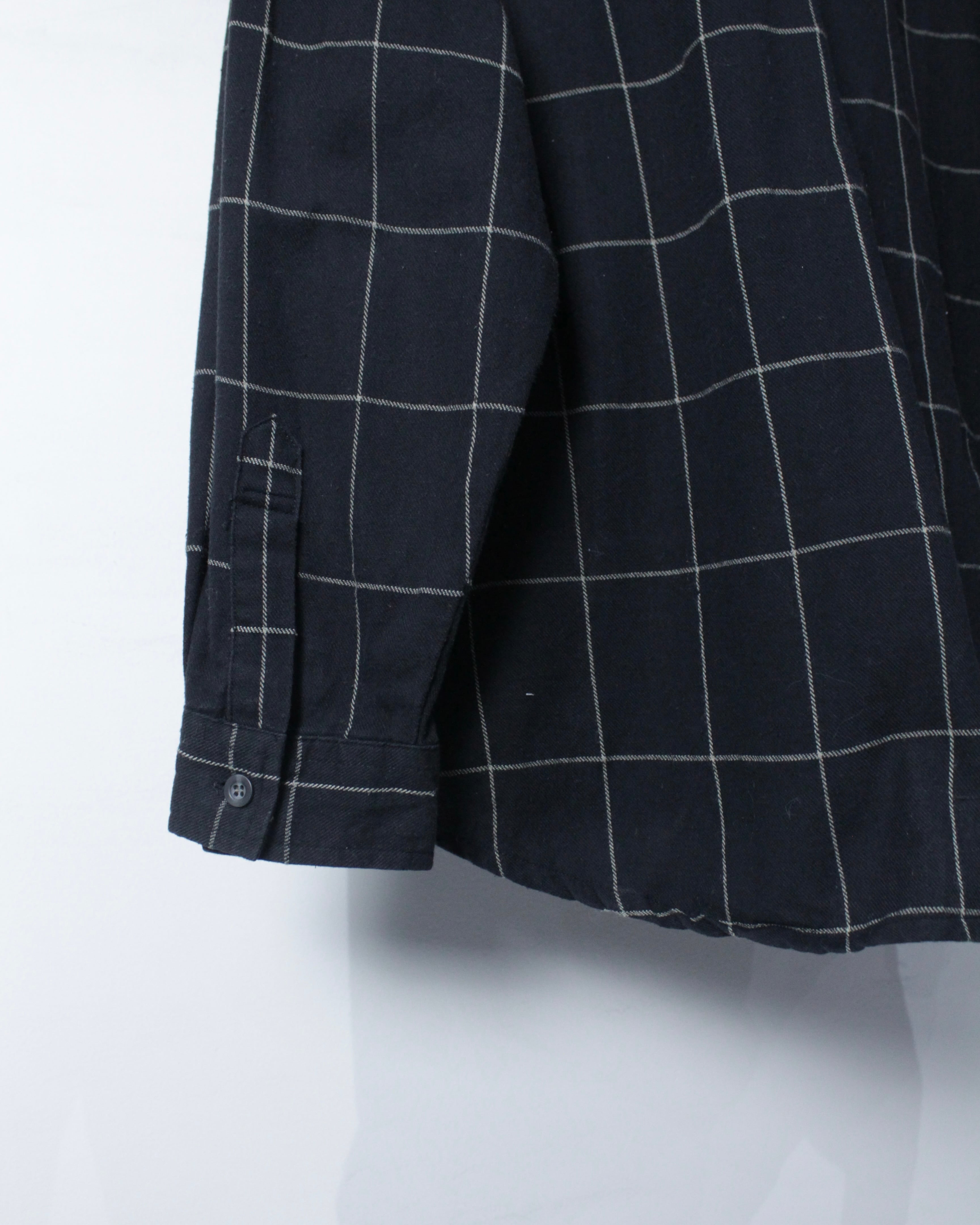 ボディには柔らかさのあるネル素材を採用し、起毛感を抑えた落ち着いた表情が特徴。ブラックベースにホワイトのウィンドウペンチェックを走らせることで、カジュアルでありながらもどこか都会的な印象に仕上がっています。