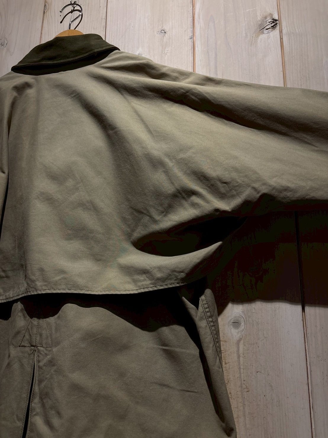 すっぽりと首を覆うスタンドカラーに、フロントには大ぶりなフラップポケット、背面にはスリットを配置し、機能性も申し分ありません。
