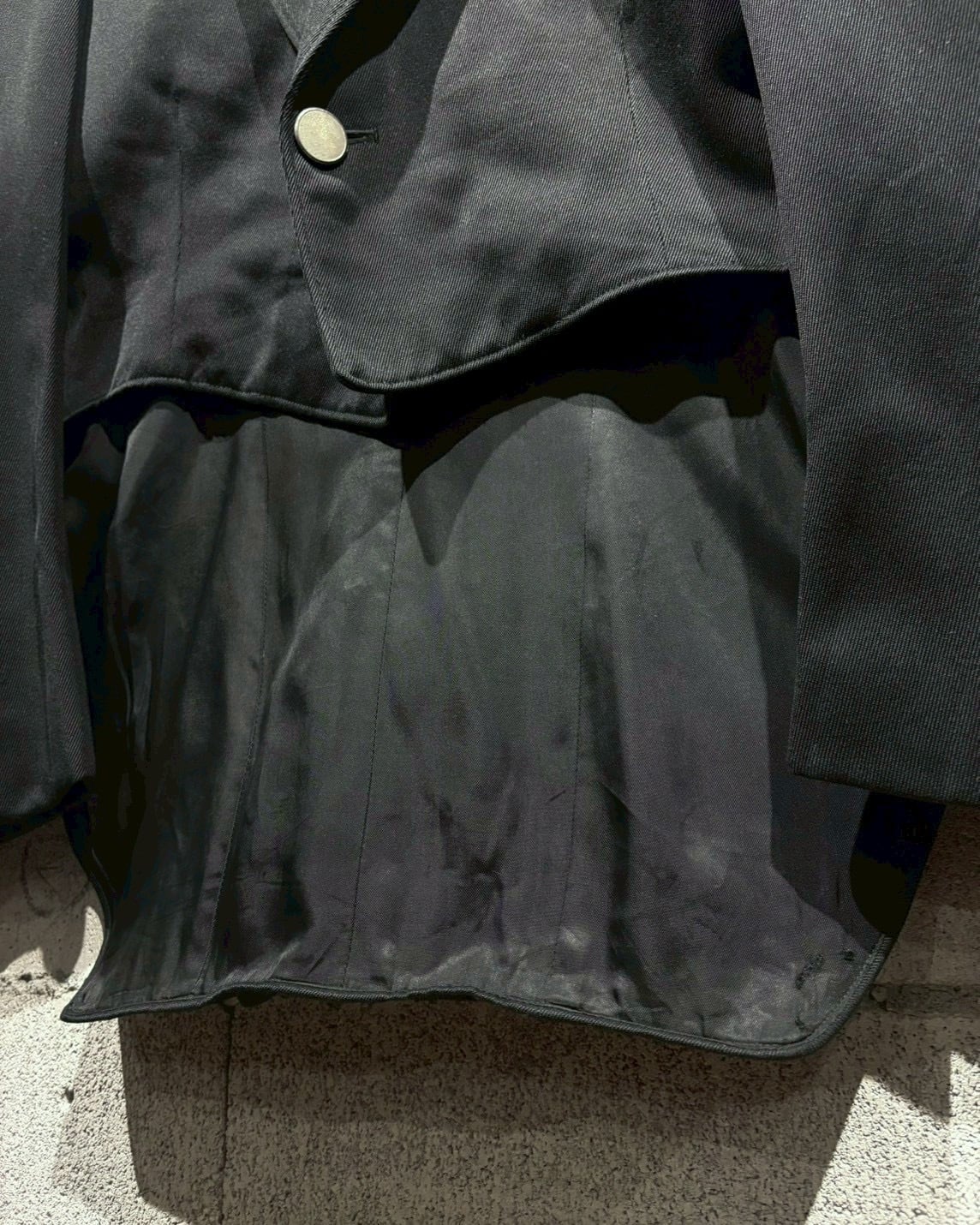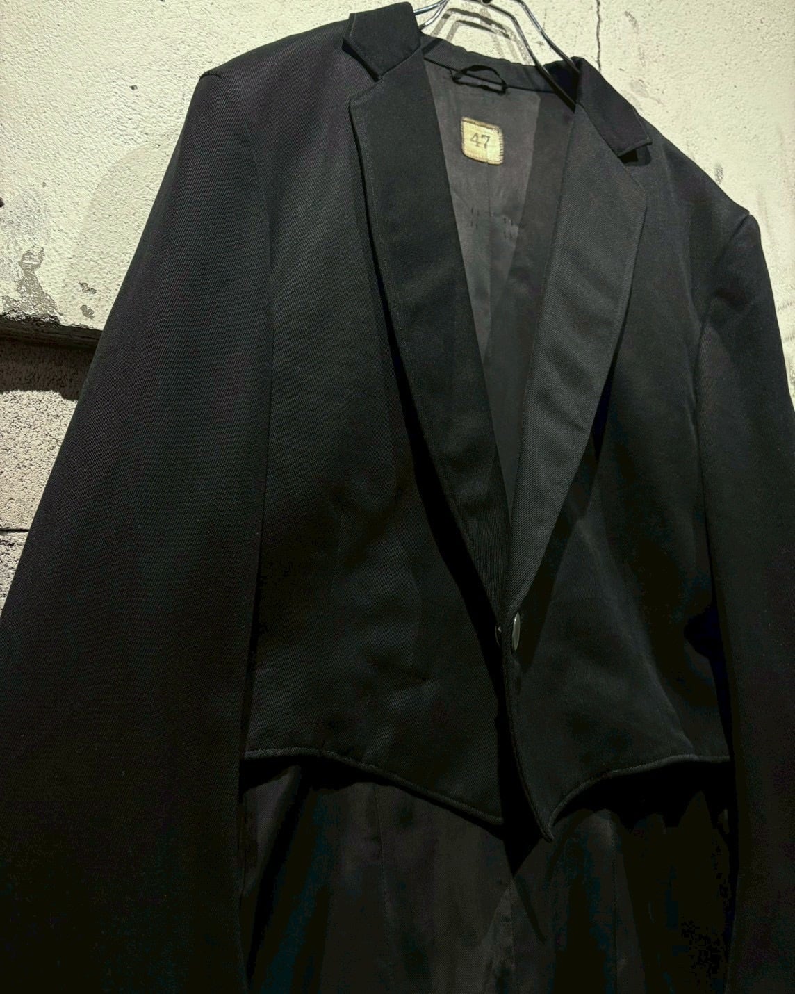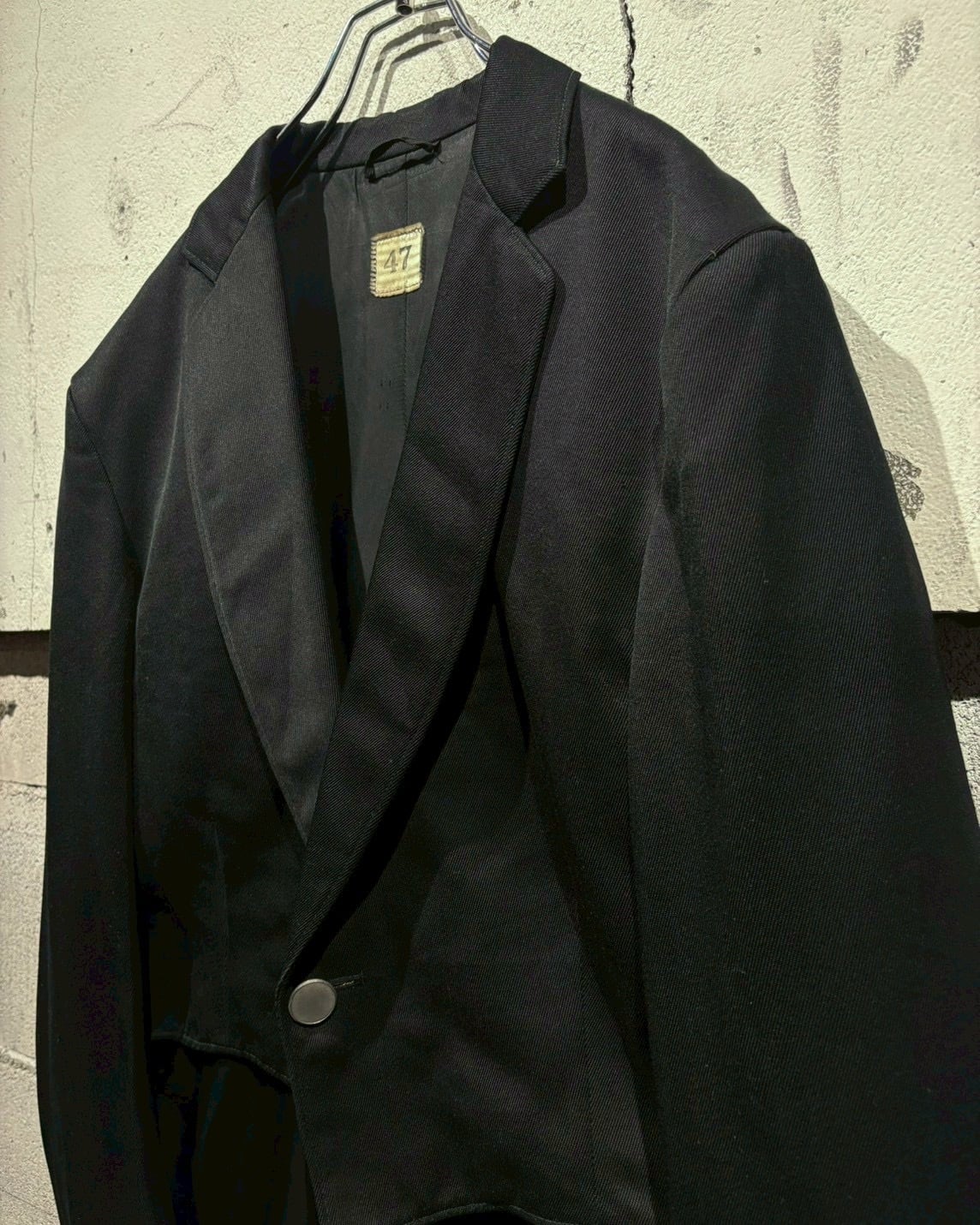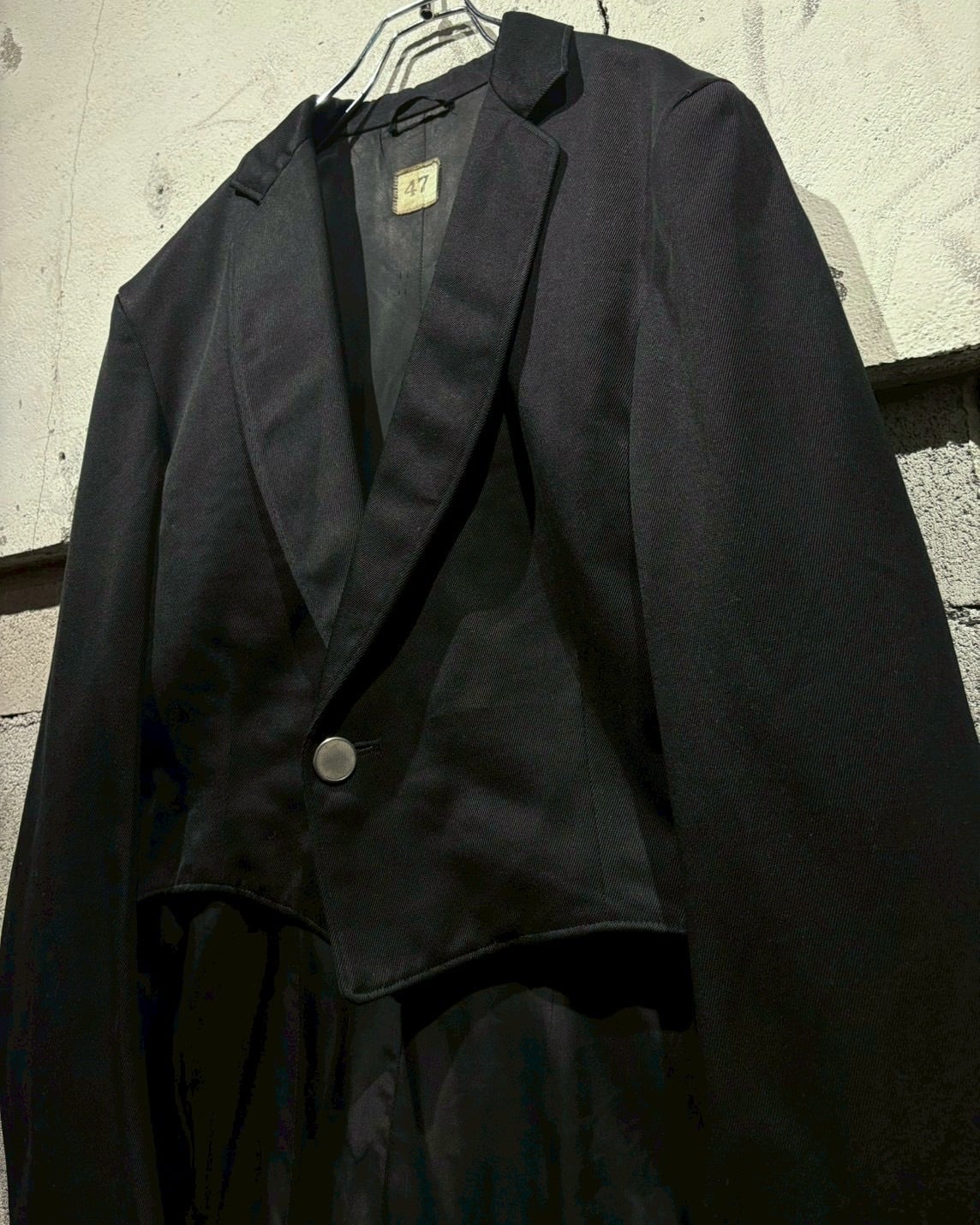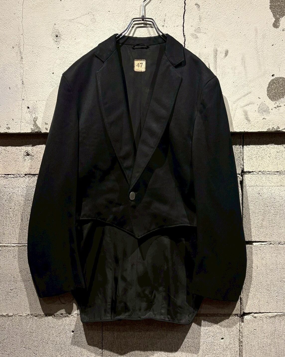 ガシッとハリのある素材を用いて、男性の夜間の礼服である燕尾服の“燕尾”部分のロングテールのディテールを載せた40's〜50'sヴィンテージのジャケット。