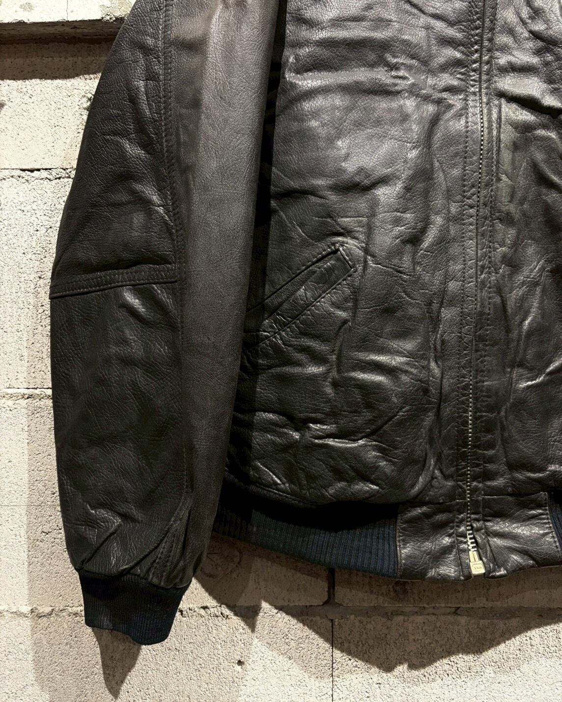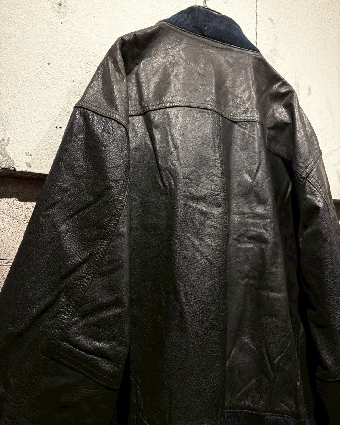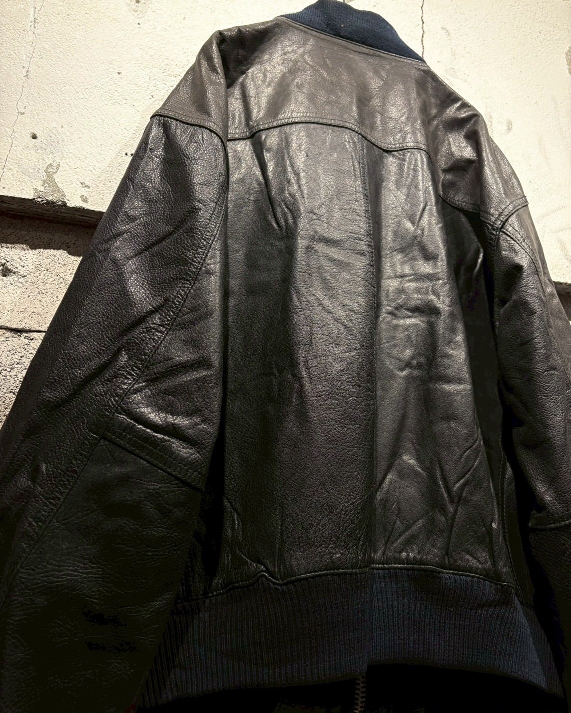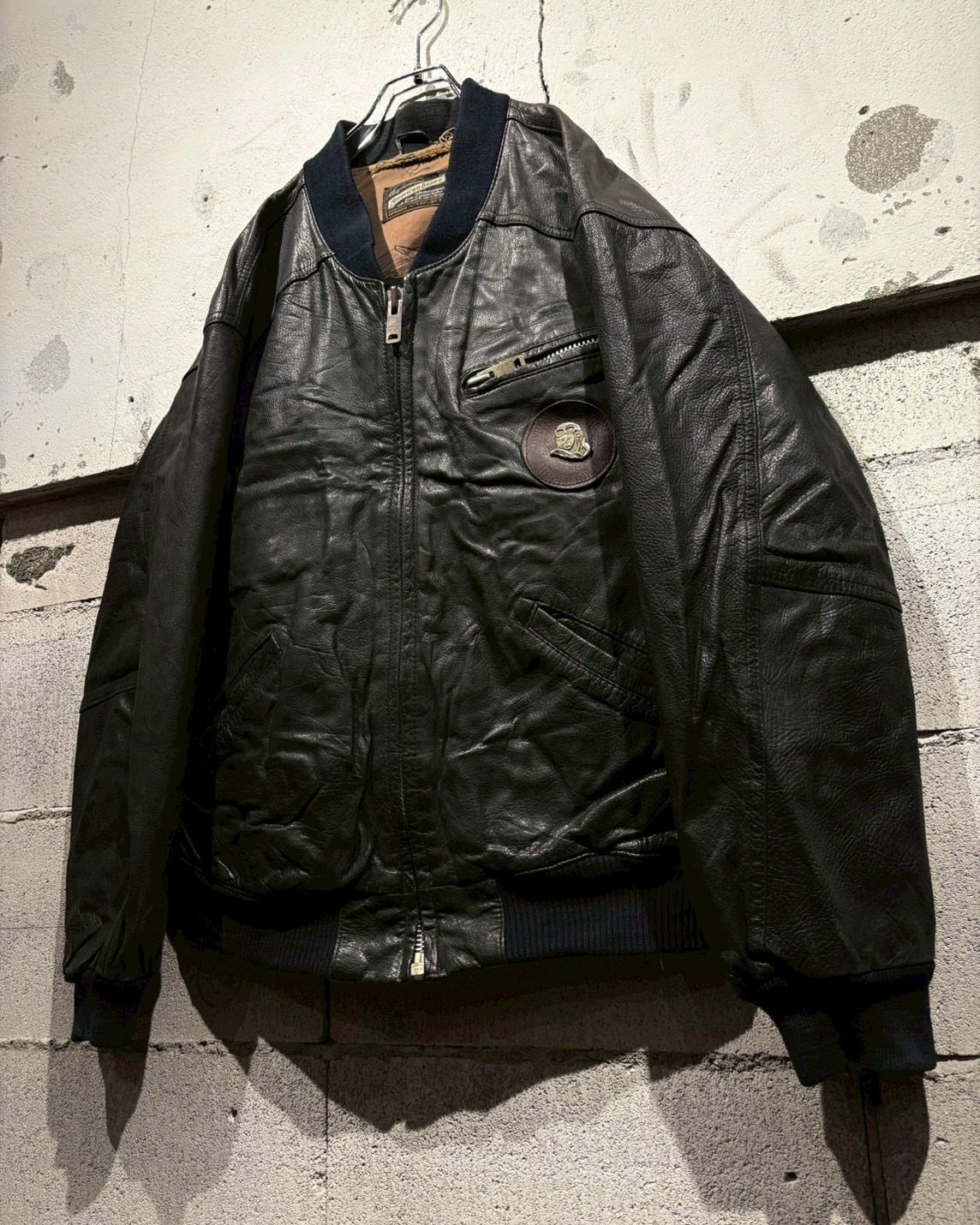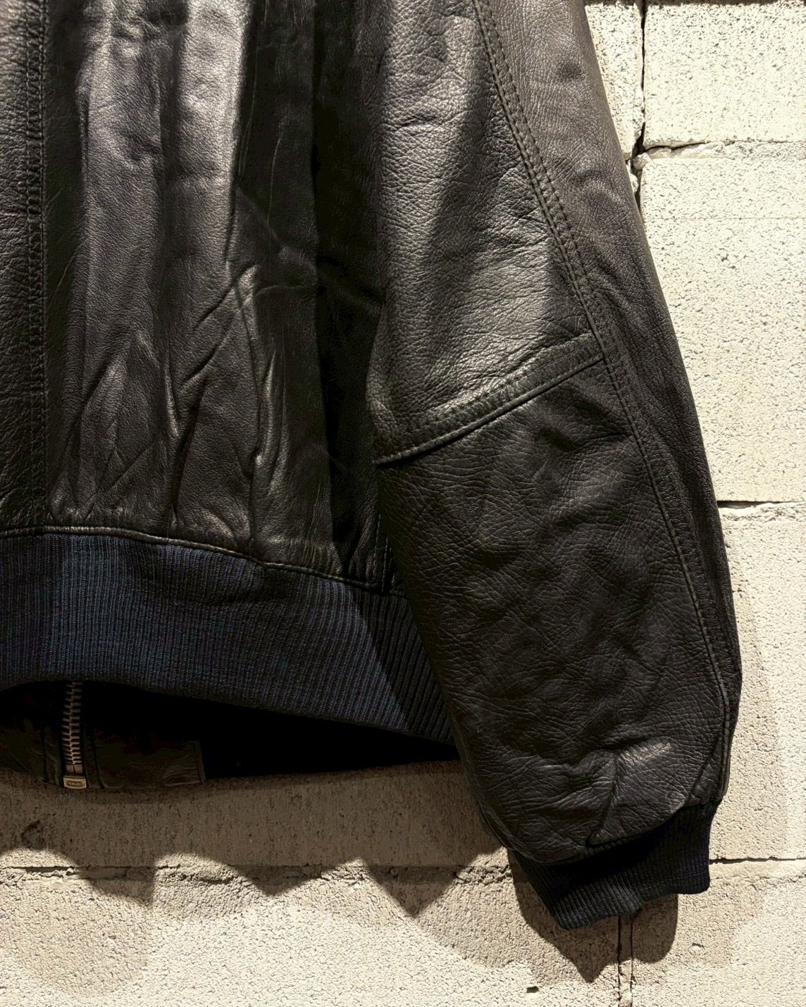 重厚感のあるレザーボディを採用した、無骨さ溢れるボンバージャケット。