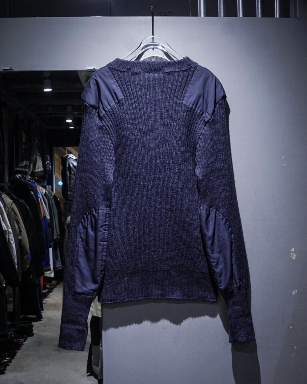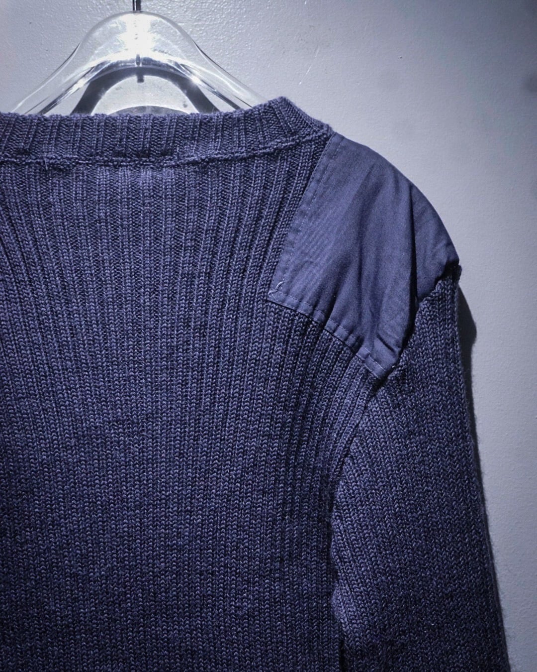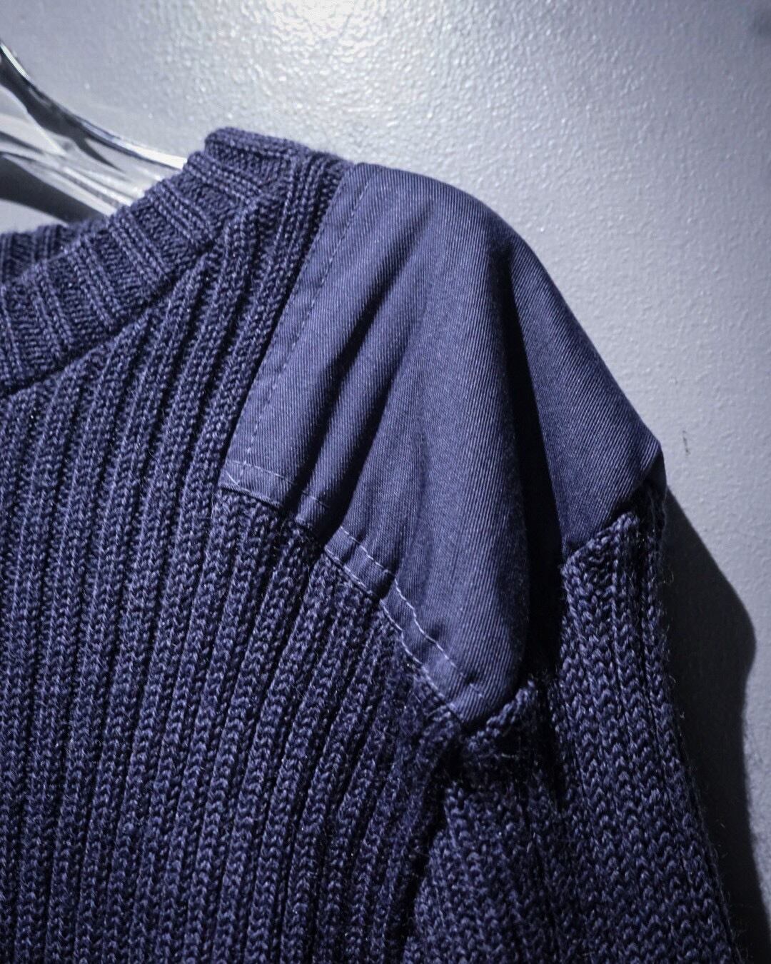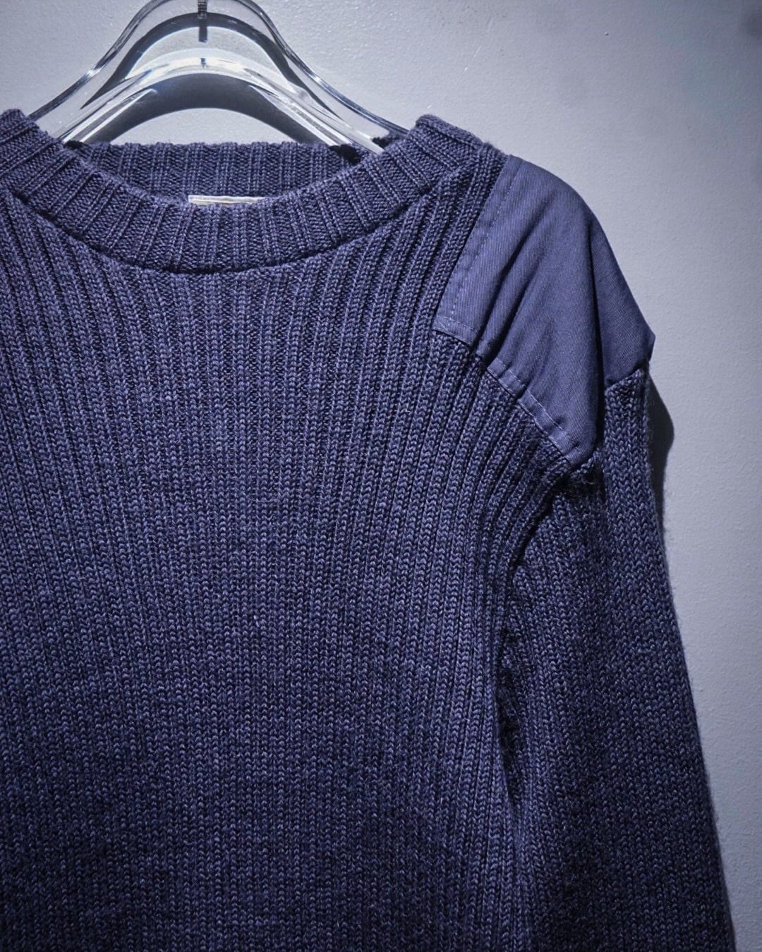 柔らかなニットボディに、肩とエルボー部分にコットンを切り替えた1着。摩耗しやすい箇所を補強するという本来の機能美に加え、ワークウェアを彷彿とさせる表情をプラス。単調になりがちなニットに立体感とキャラクターを与えています。