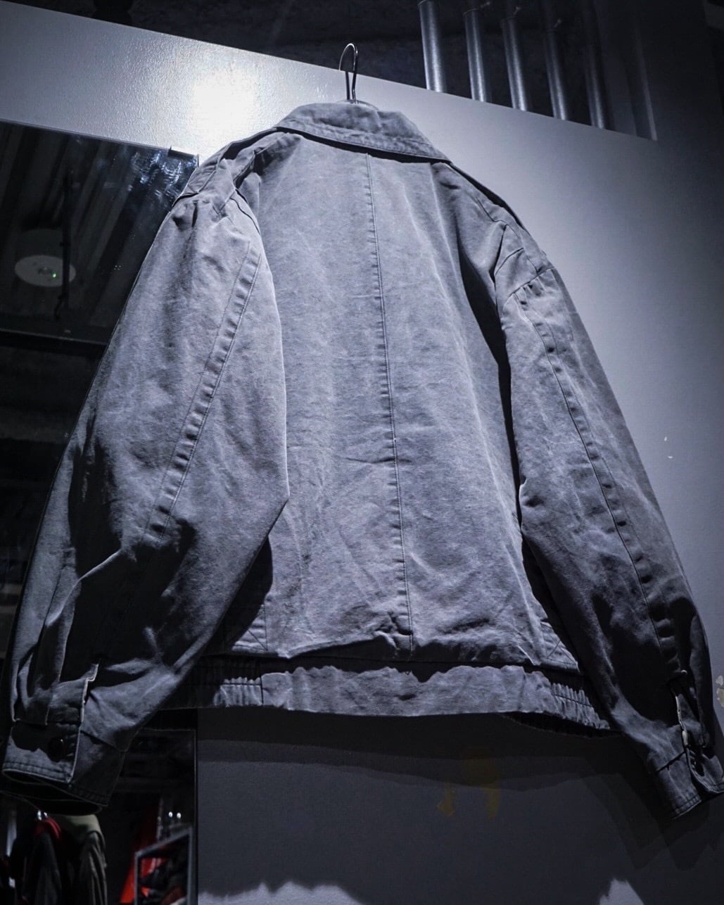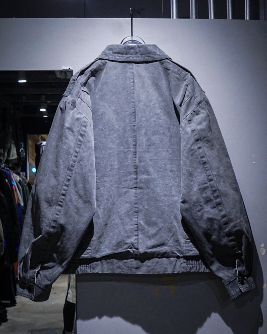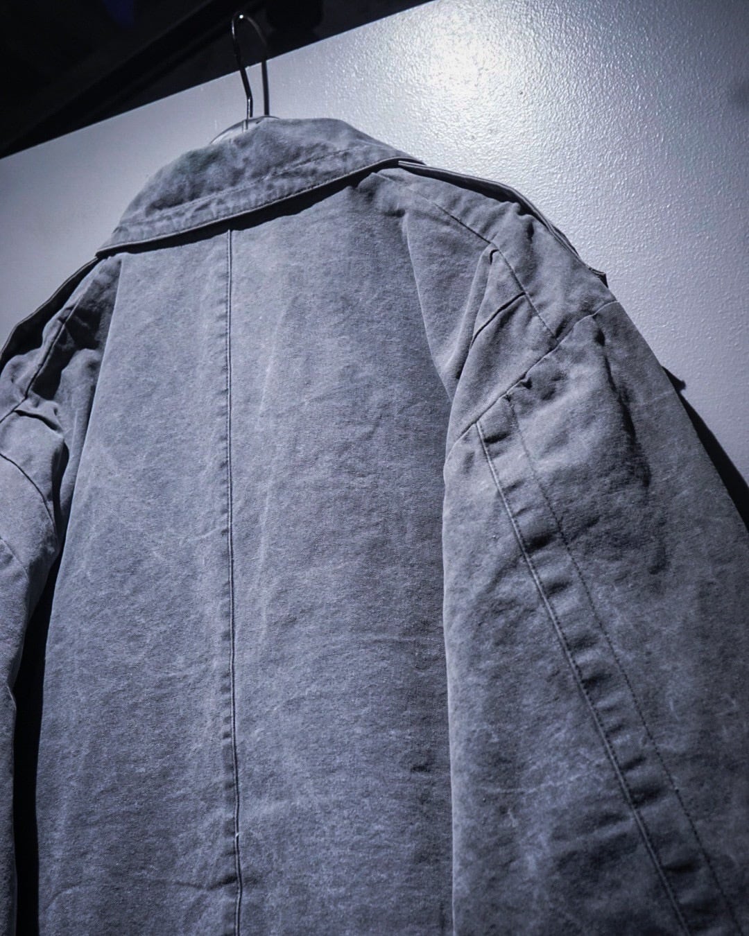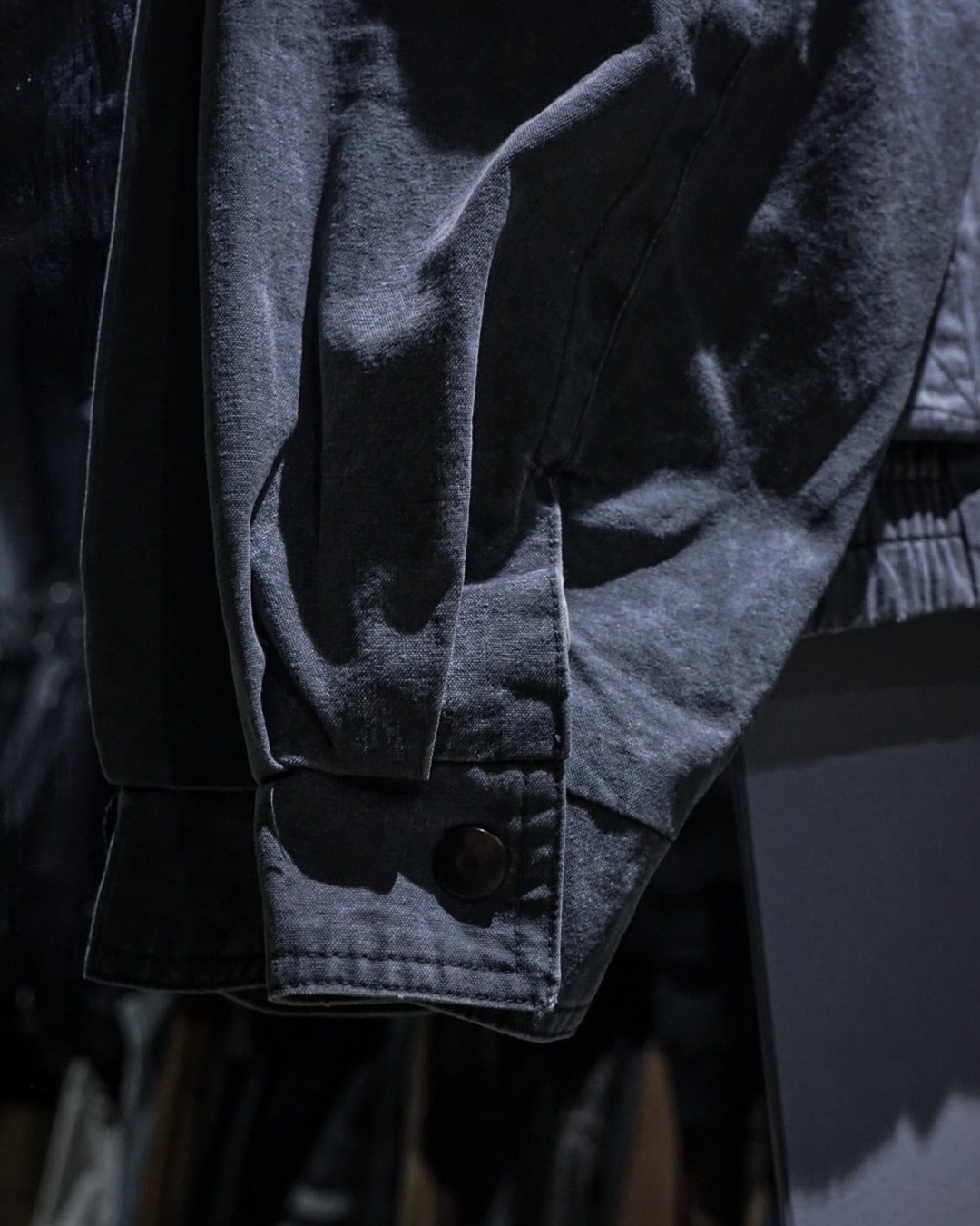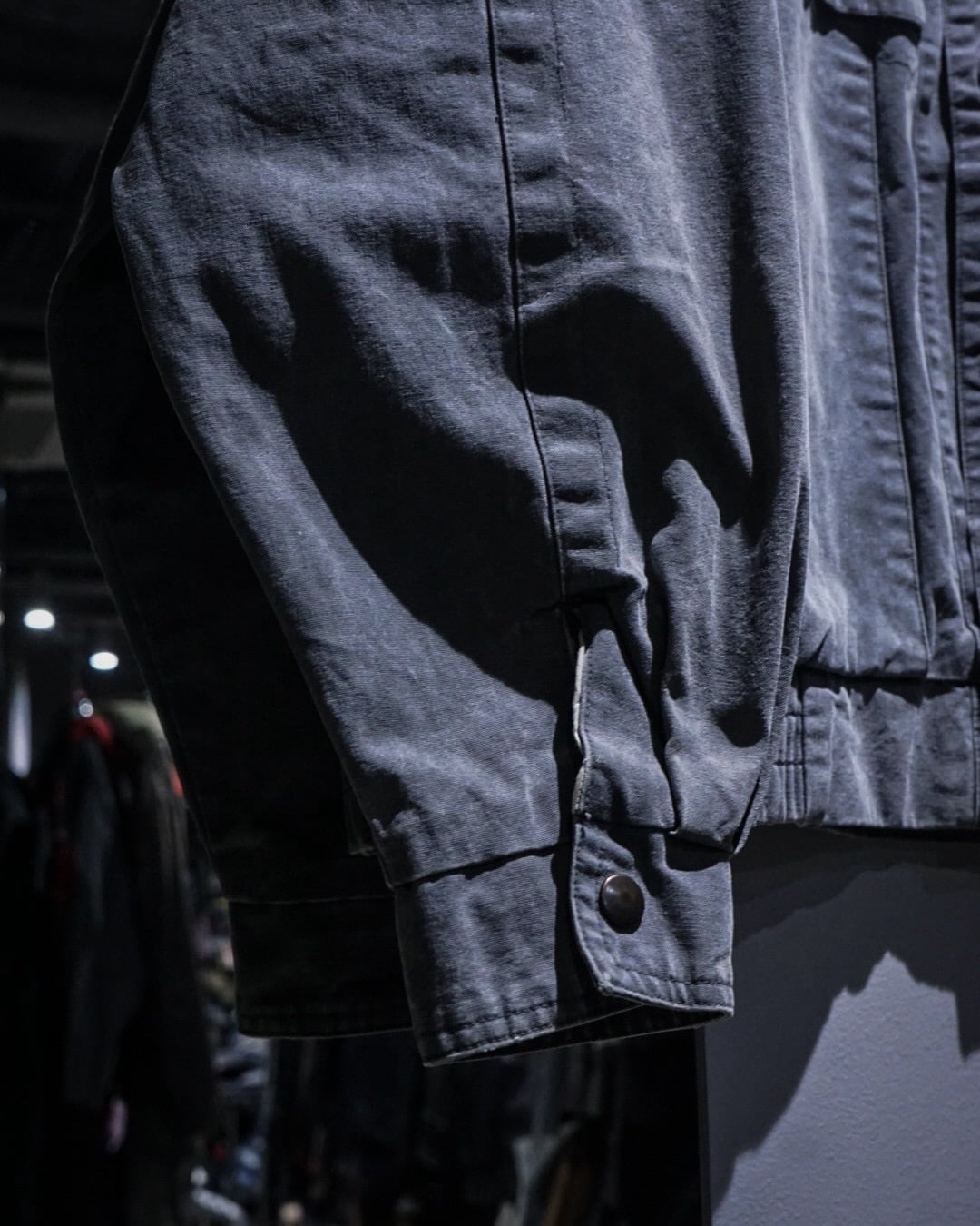 ボディにはコットン素材を使用し、着込まれたことで生まれたフェード感が全面に広がる1着。グレーがかった独特の色ムラやアタリが、均一ではない奥行きのある表情を作り出し、ヴィンテージならではの空気感をしっかりと纏っています。
