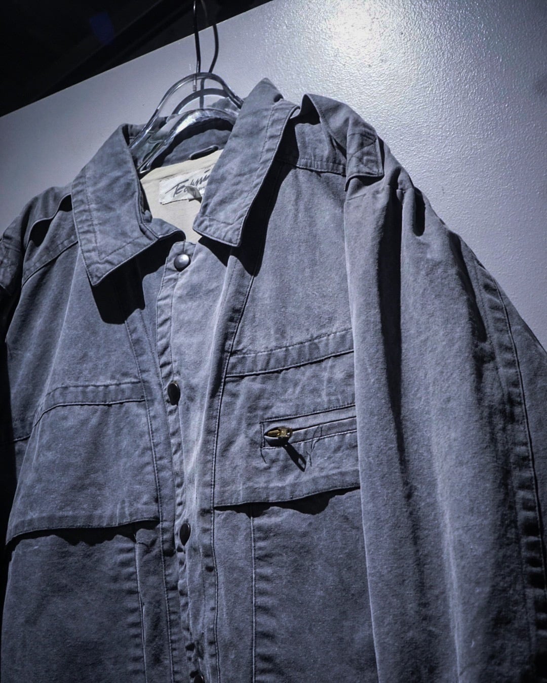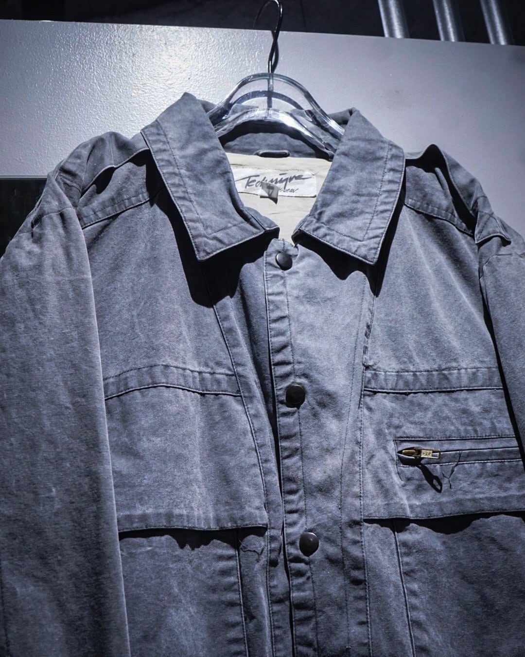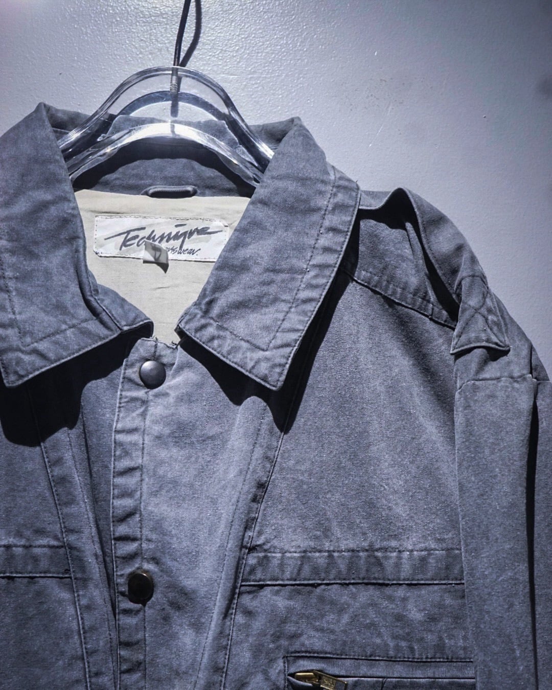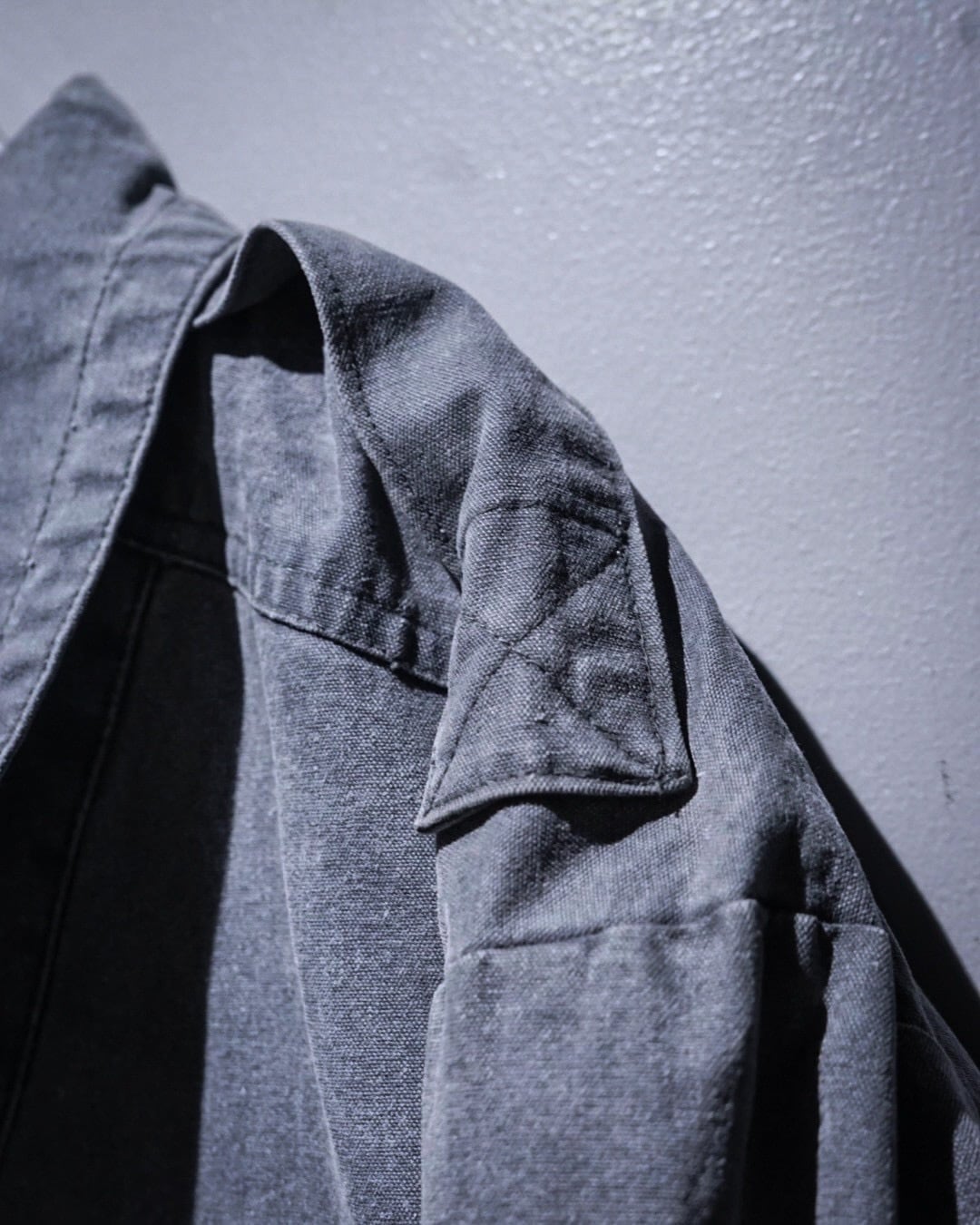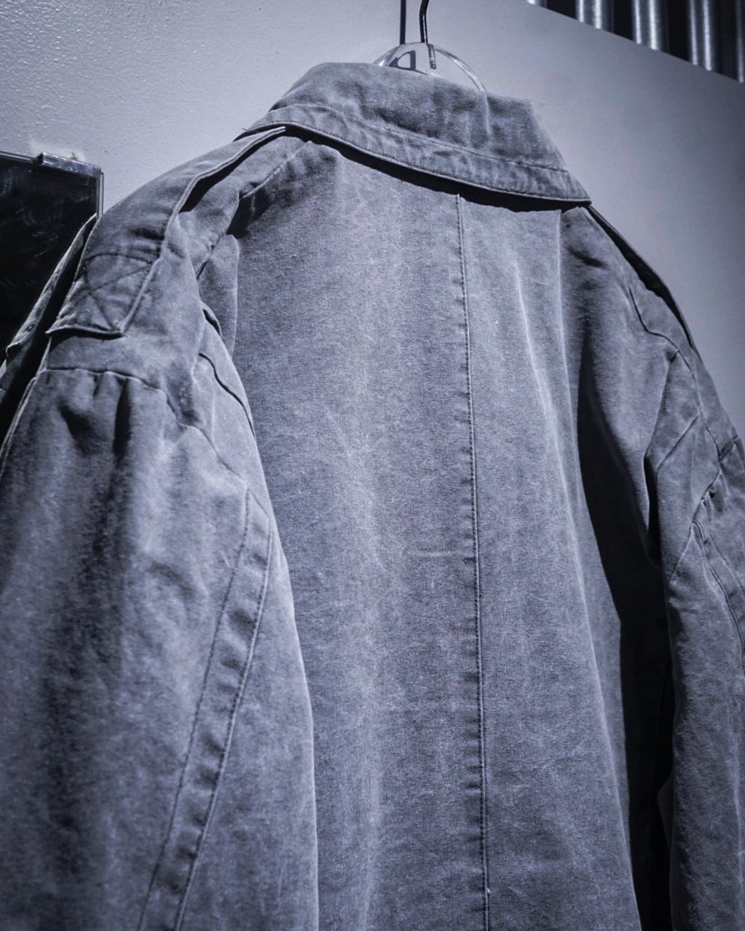 ボディにはコットン素材を使用し、着込まれたことで生まれたフェード感が全面に広がる1着。グレーがかった独特の色ムラやアタリが、均一ではない奥行きのある表情を作り出し、ヴィンテージならではの空気感をしっかりと纏っています。
