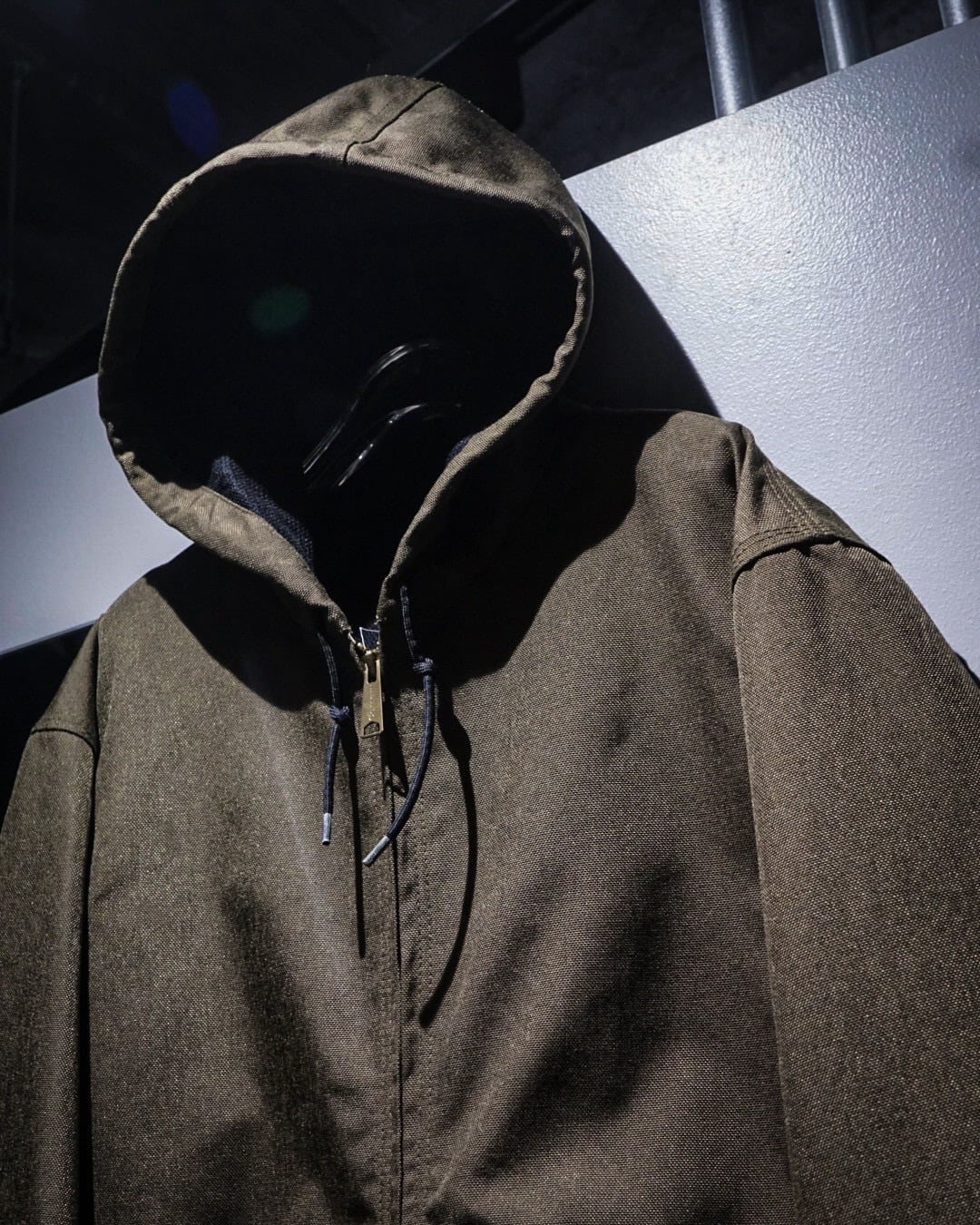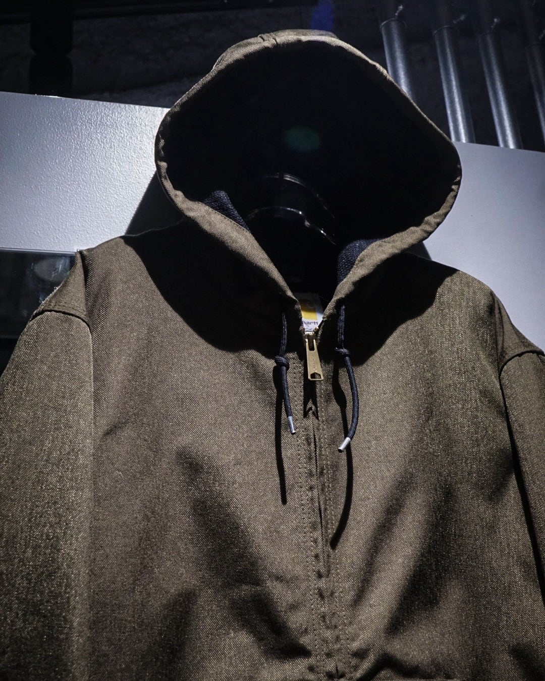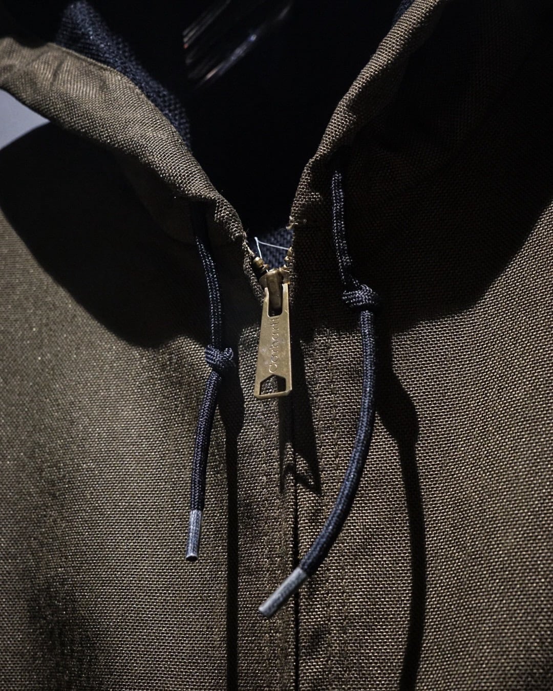 フーディー仕様のネック周りや、フロントジップ+カンガルーポケットといったディテールはCarharttの定番意匠を踏襲。