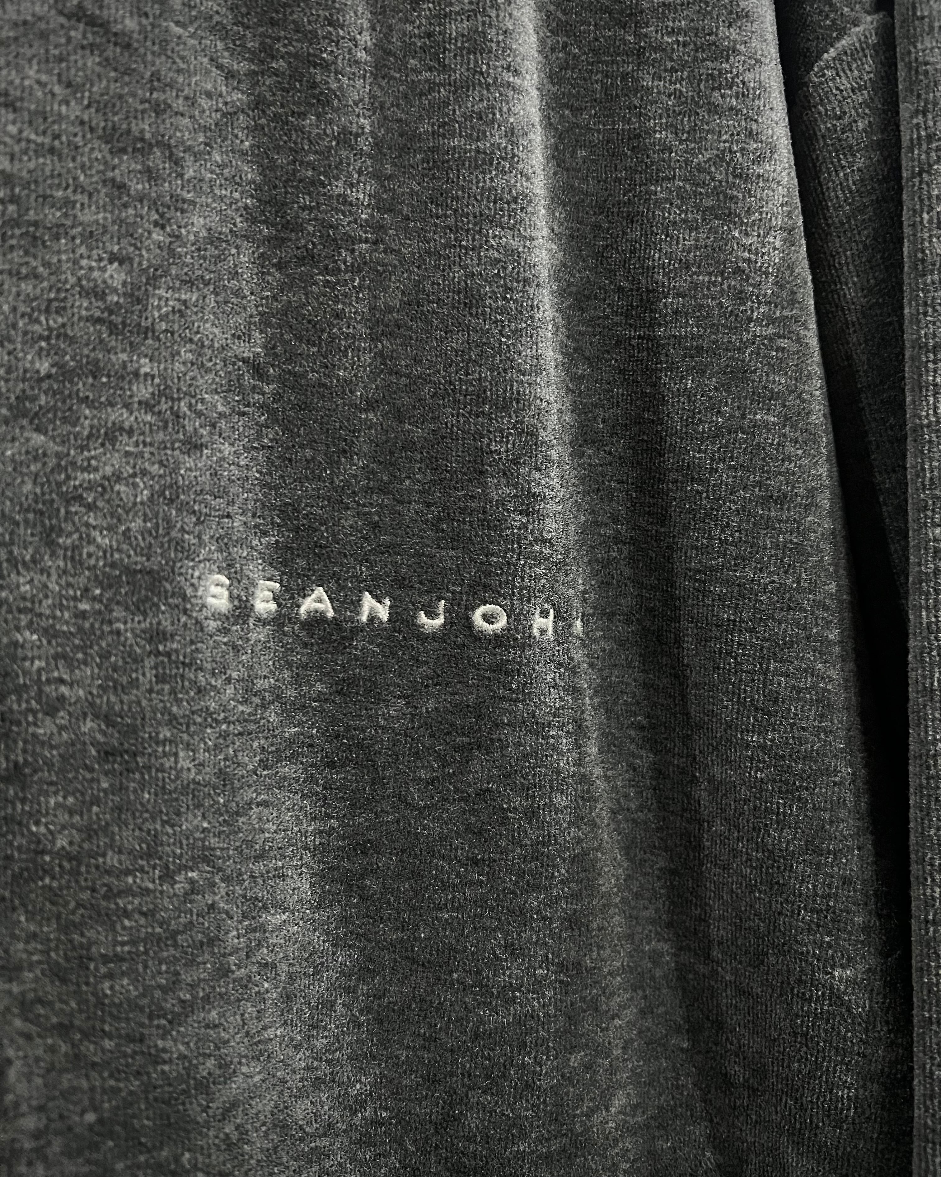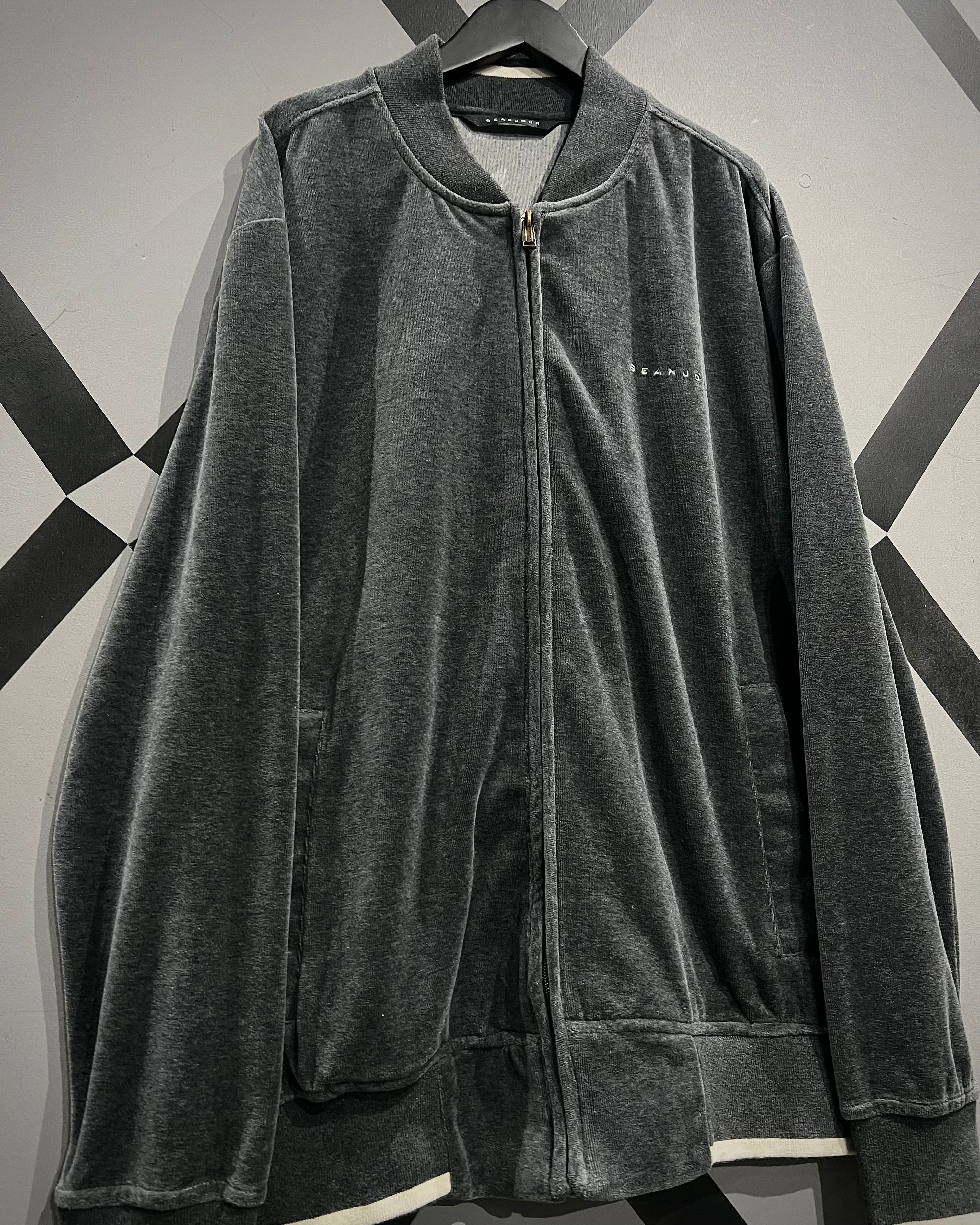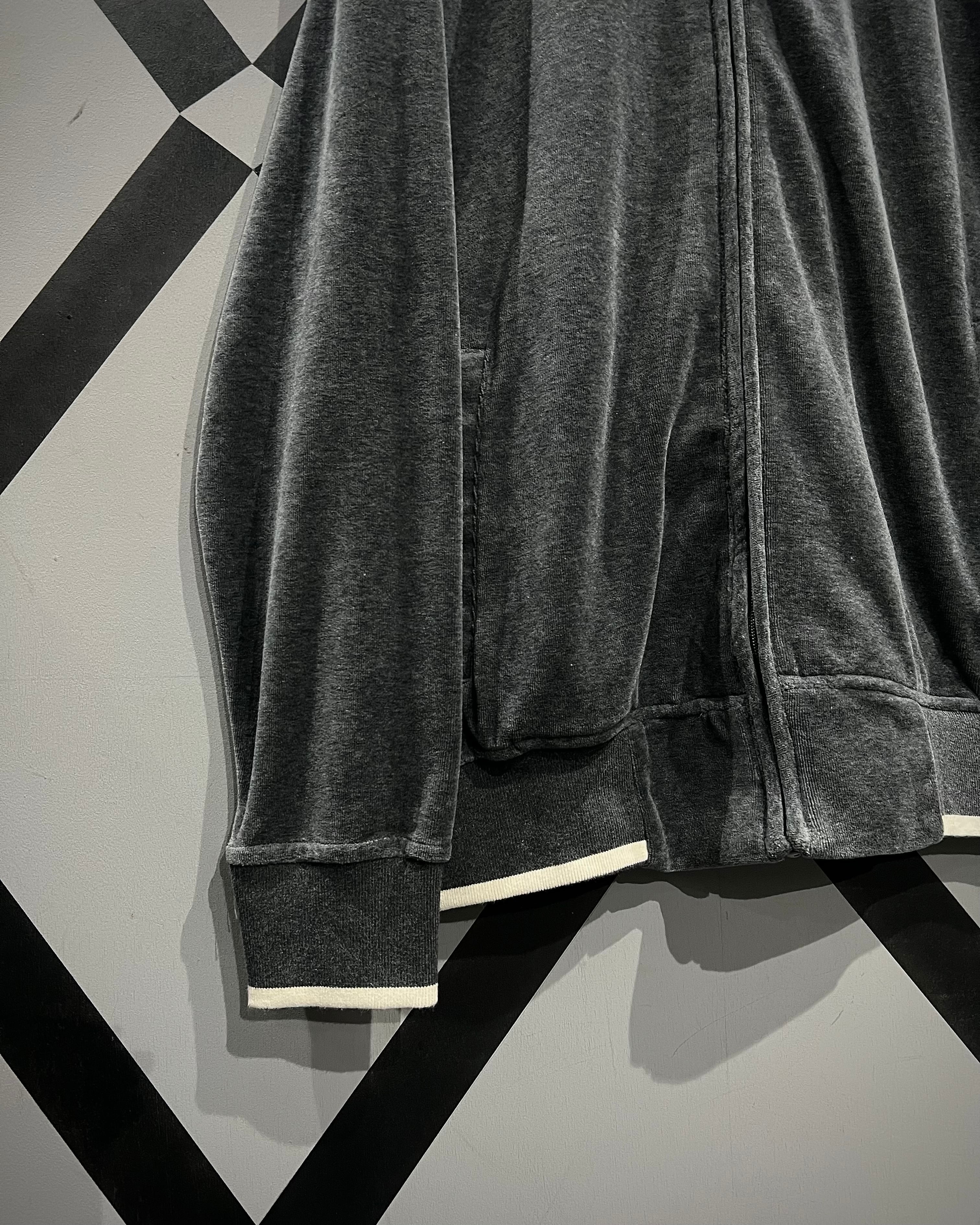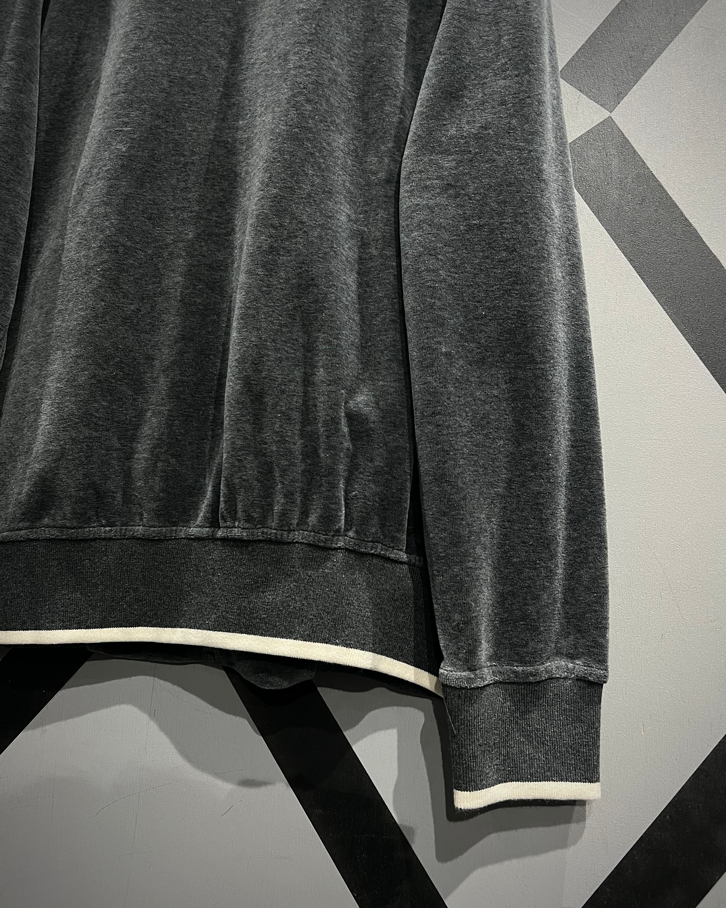 しっとりとした起毛感と奥行きのあるグレーベースのベロア素材を使用し、光の当たり方で表情を変える上品な艶が魅力。ストリートでありながら、どこかラグジュアリーな空気を纏ったバランス感が非常に洒落てます。