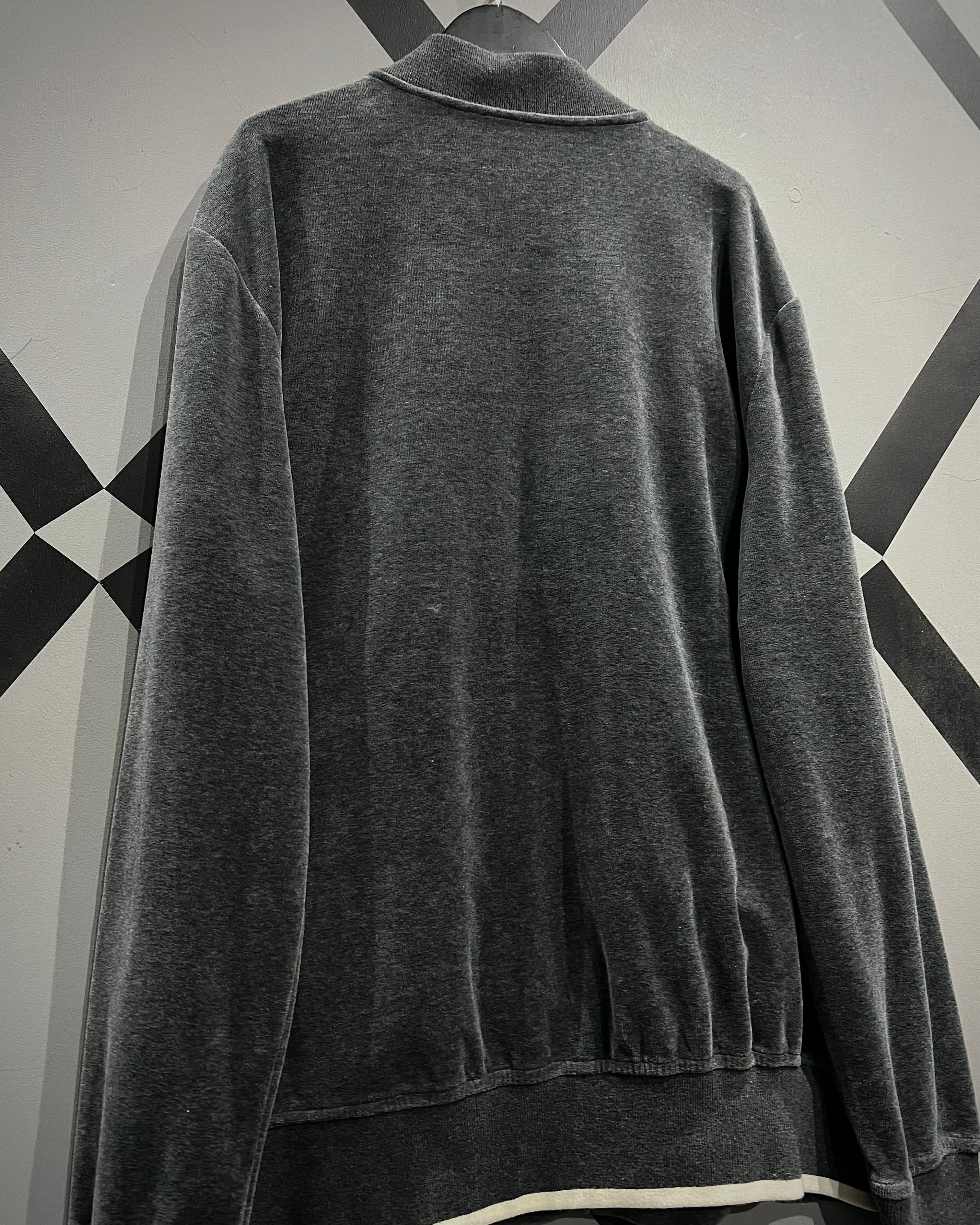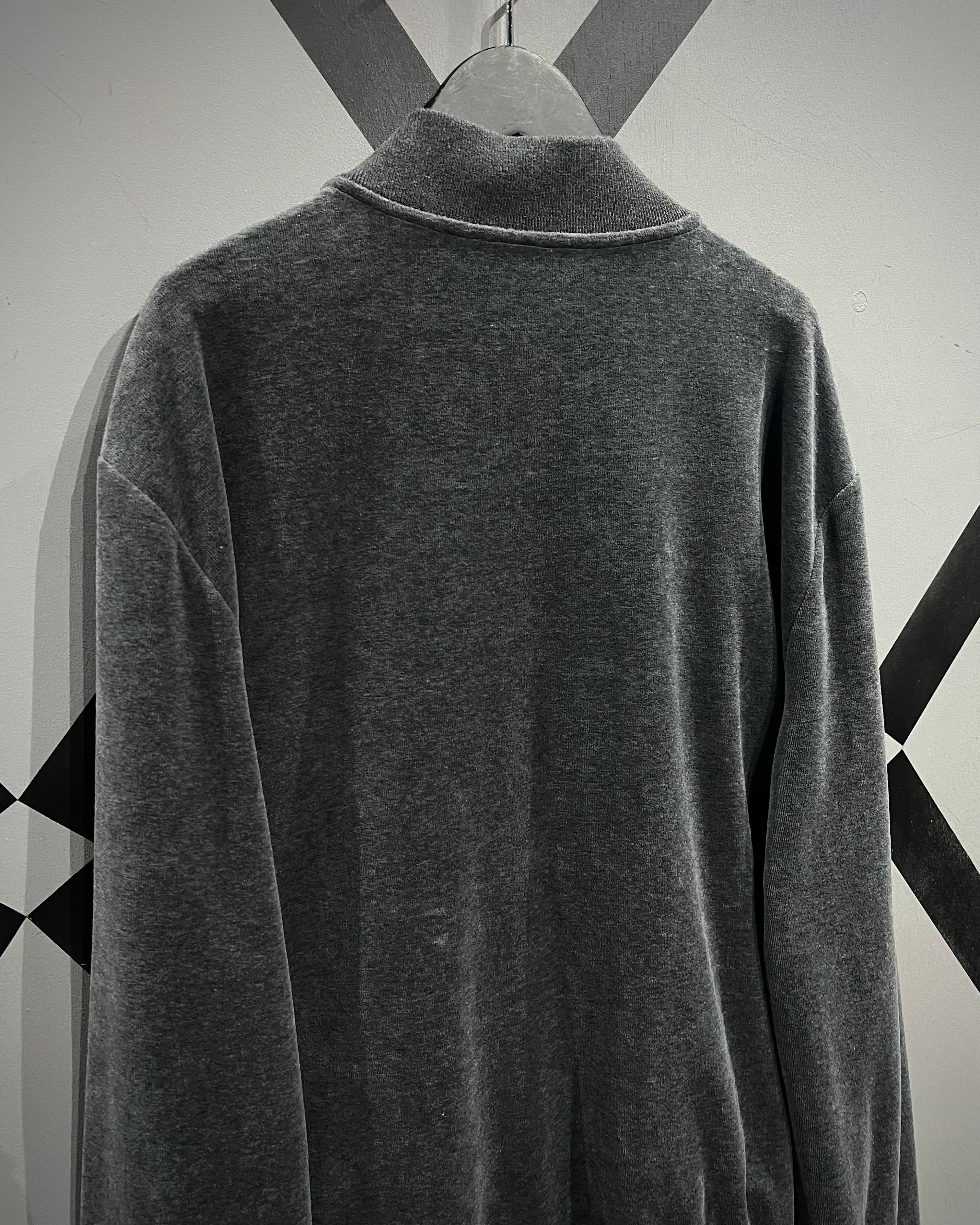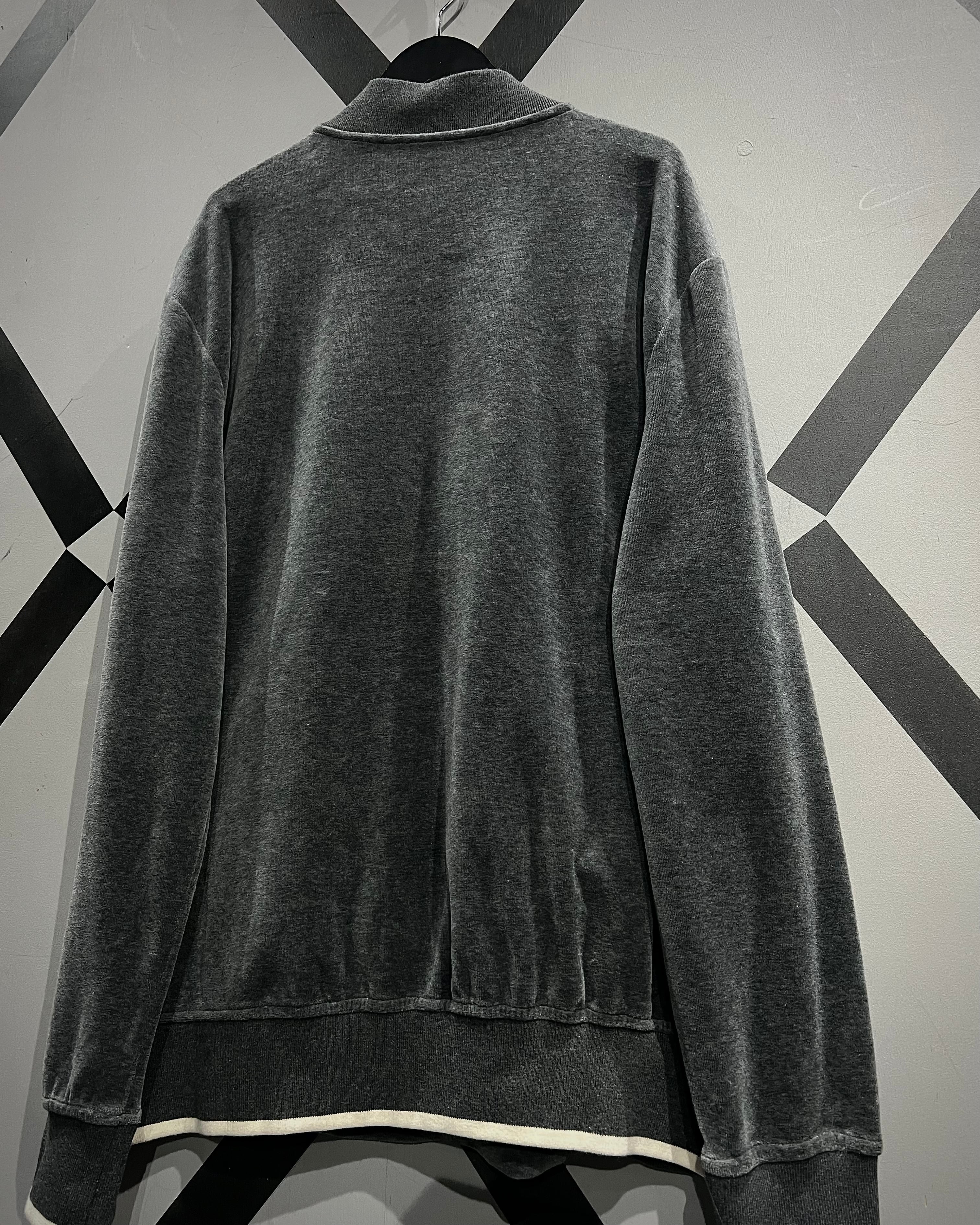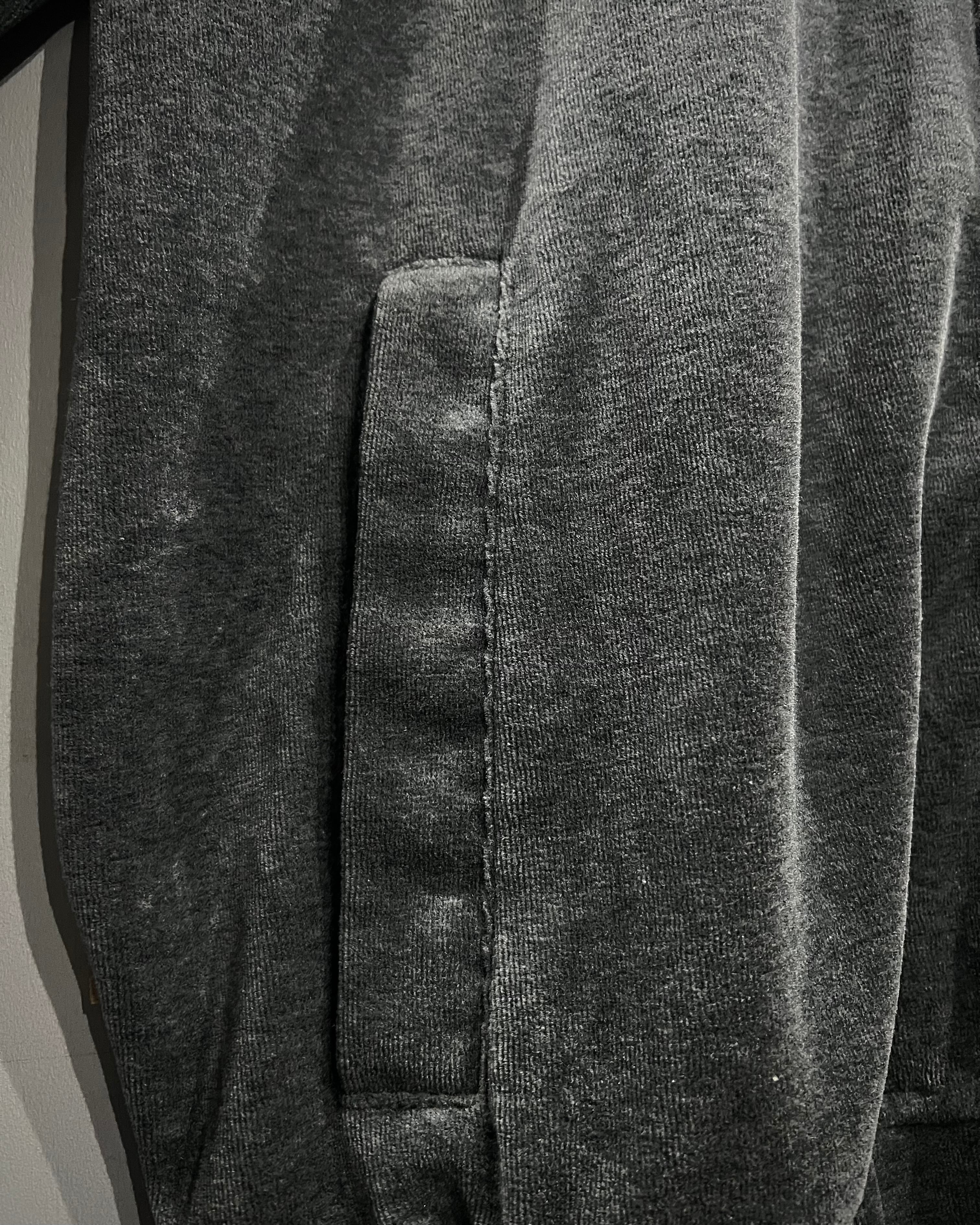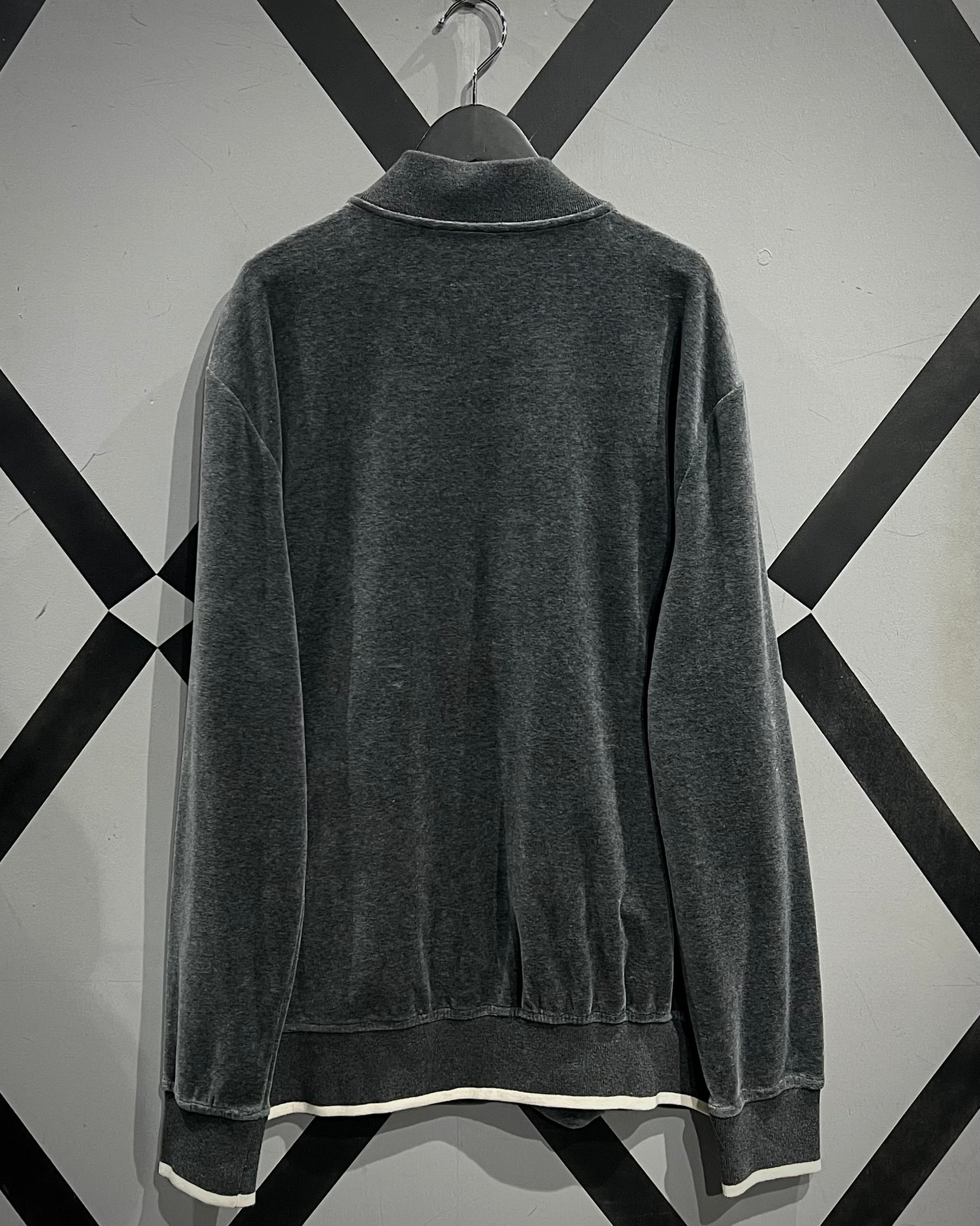 しっとりとした起毛感と奥行きのあるグレーベースのベロア素材を使用し、光の当たり方で表情を変える上品な艶が魅力。ストリートでありながら、どこかラグジュアリーな空気を纏ったバランス感が非常に洒落てます。
