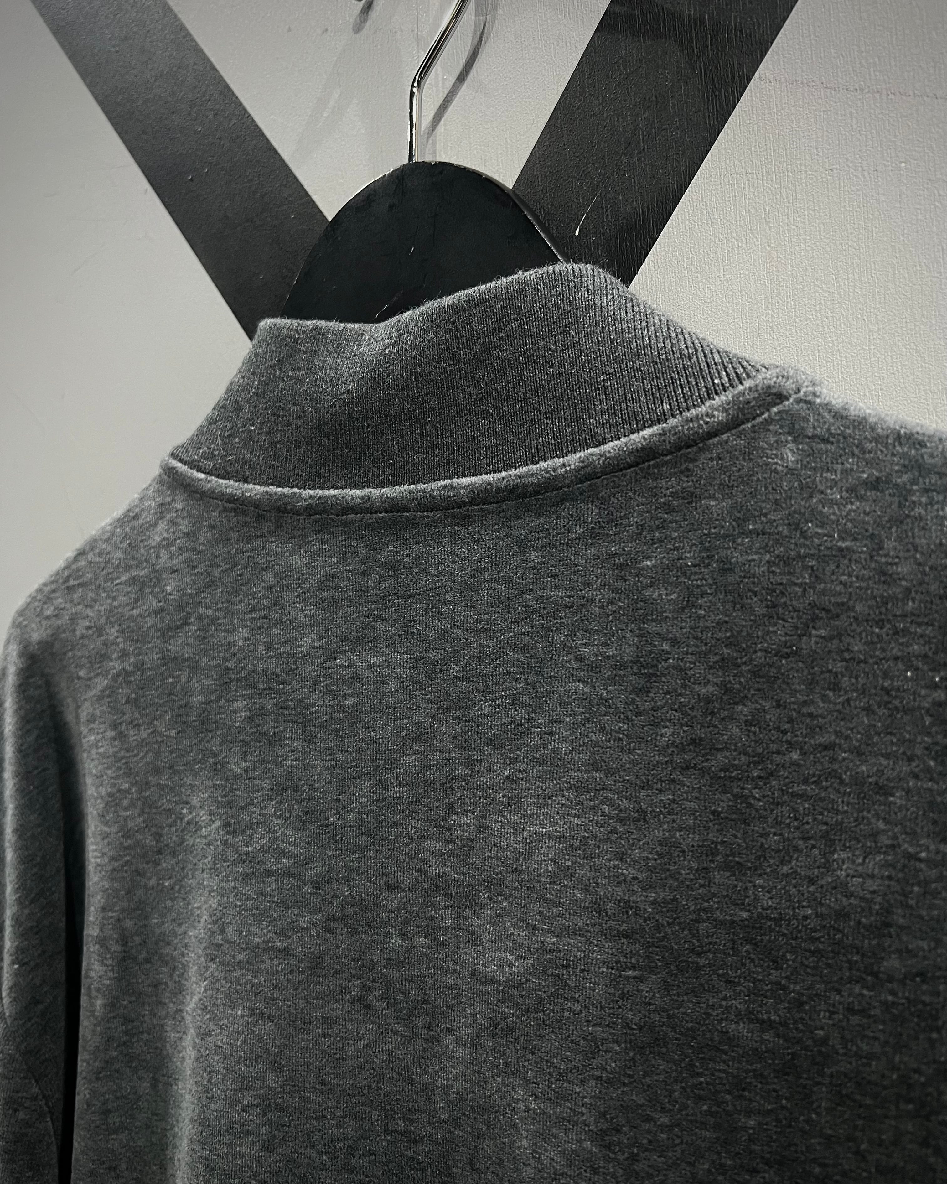 胸元にはさりげなくブランドロゴ刺繍を配置。フロントジップ仕様に、ネック、袖、裾はリブでまとめ、無駄を削ぎ落としたミニマルなデザインが素材感をより際立たせる仕上がり。