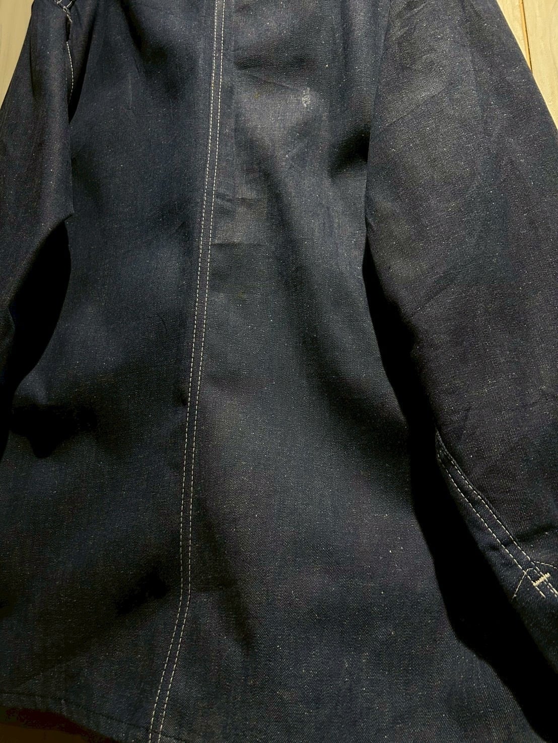 デッドストックコンディションのため、生地はまだハリをしっかりと保ち、インディゴの色味も深く濃い表情。60年代特有の粗野さと、当時の織りの良さが残るデニムで、着込むことで徐々に自分だけのエイジングを楽しめるポテンシャルを秘めています。