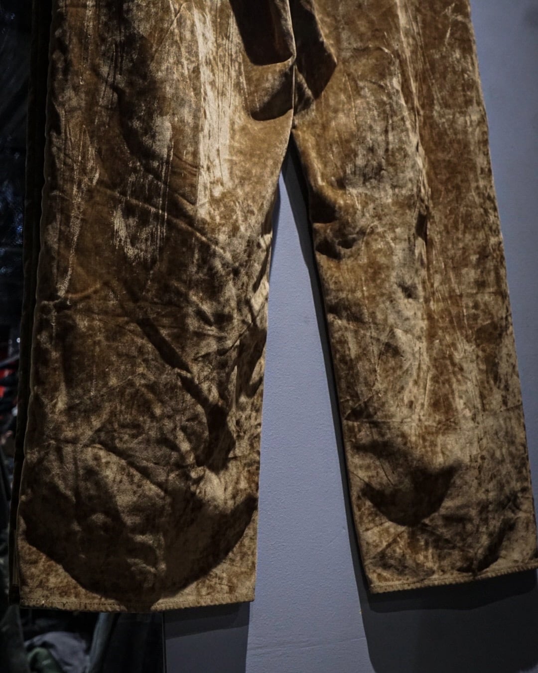 光を受けた際に浮かび上がるムラ感や陰影が、通常のデニムとは一線を画す表情を演出。着用を重ねることでコーティングが剥がれ、退廃的な表情を楽しめるのも◎