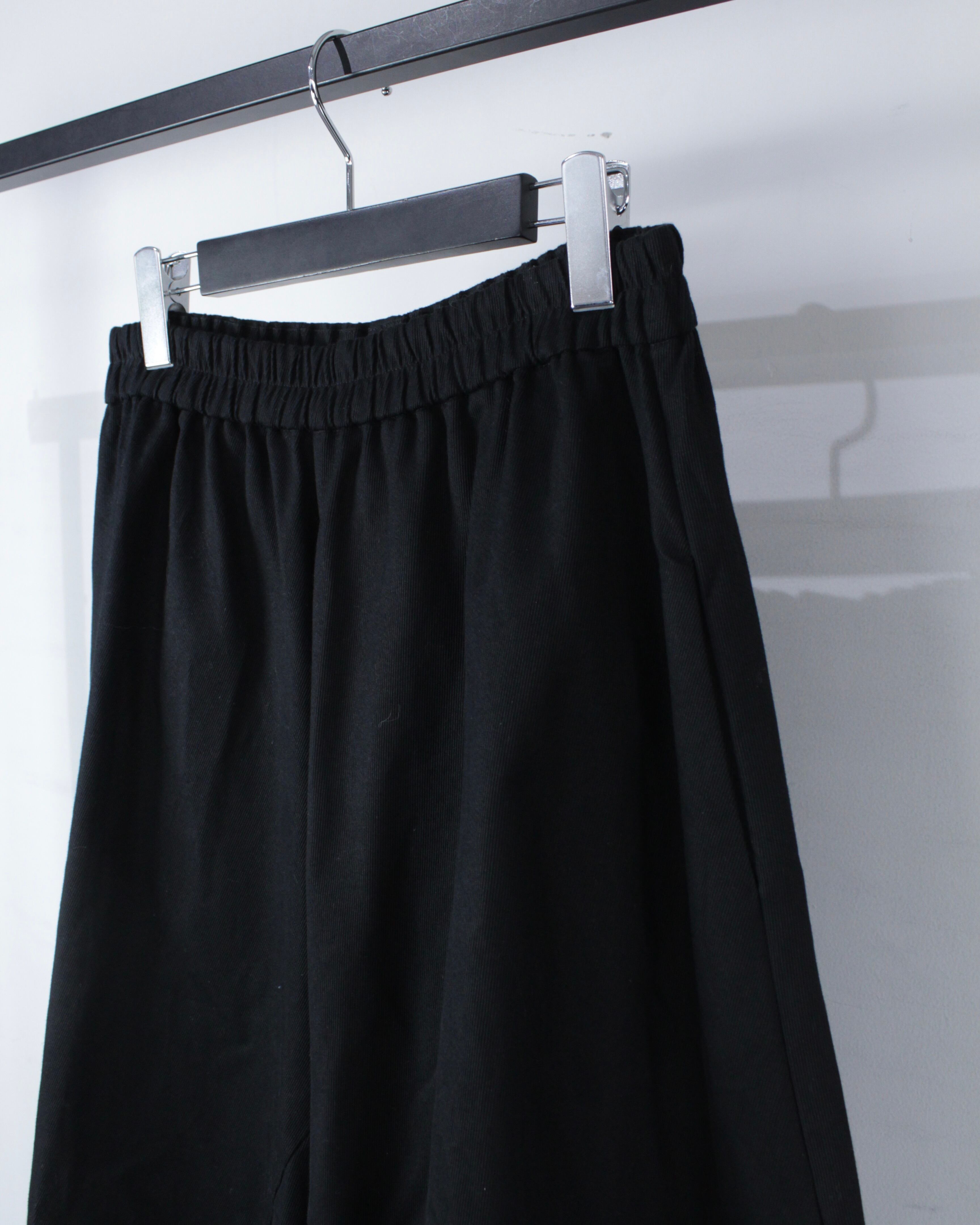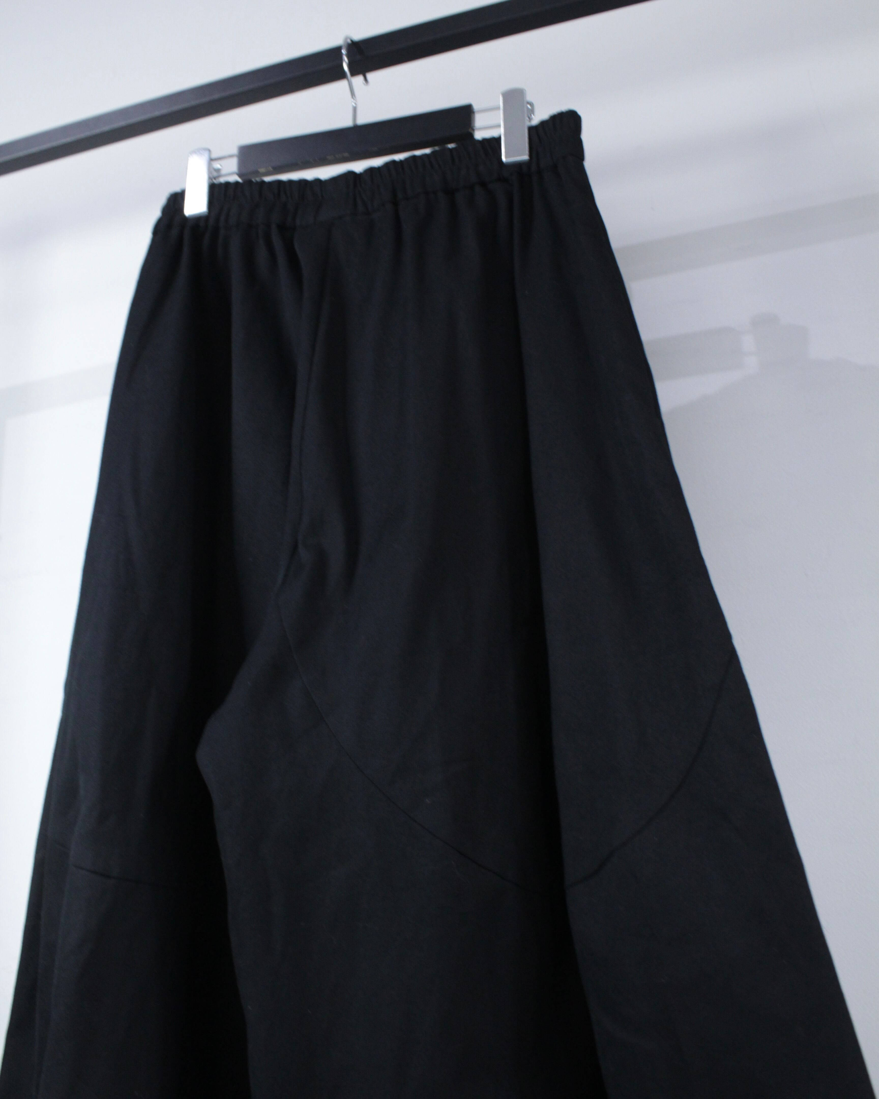 落ち感のあるブラックファブリックを贅沢に使用し、分量感たっぷりに設計された超ワイドシルエット。歩くたびに生まれるドレープが美しい、、、