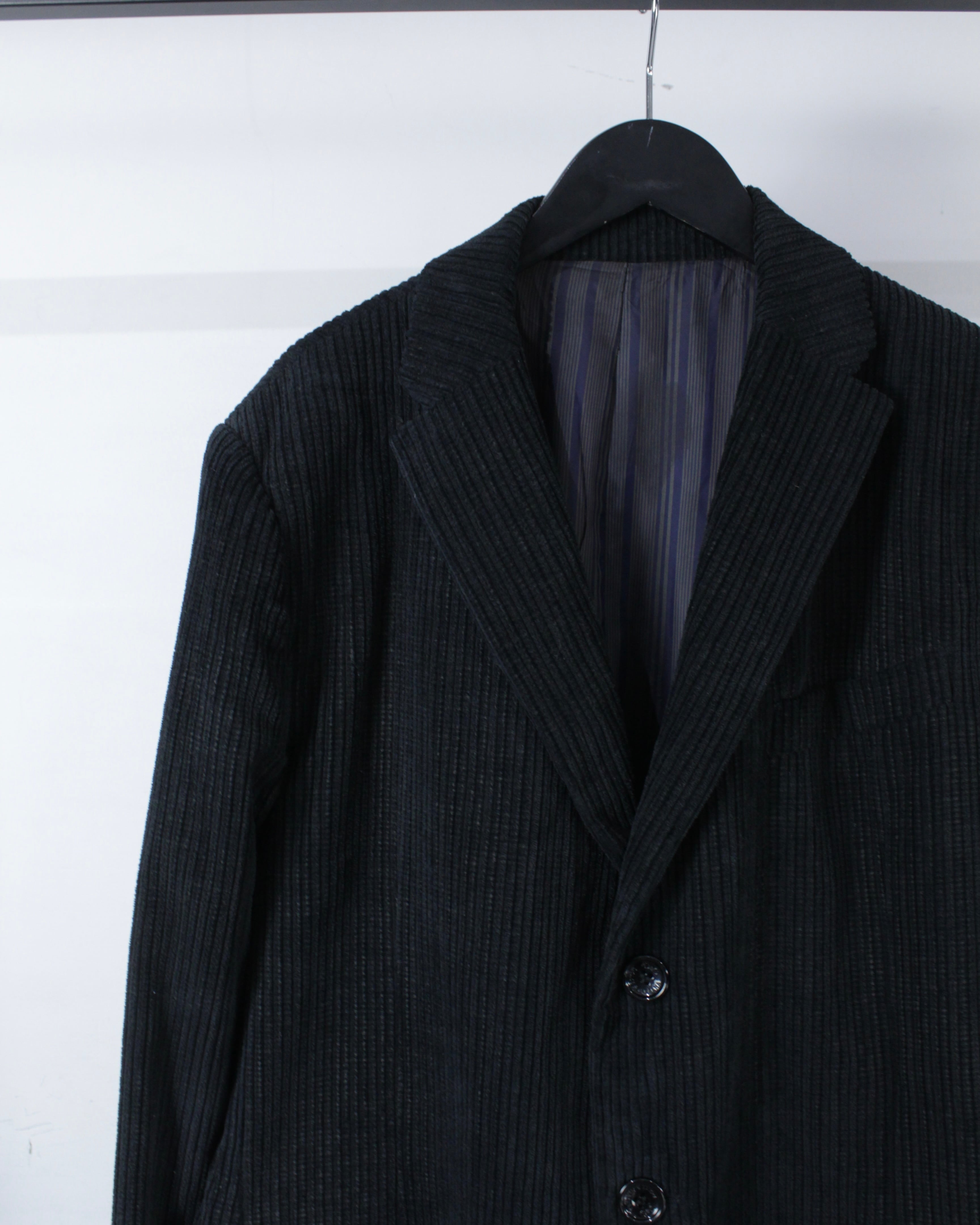 素材には畝の立ったコーデュロイを採用。ブラックカラーの中に、光を受けて浮かび上がる縦畝の陰影があり、マットでありながら奥行きのある表情を見せてくれます。