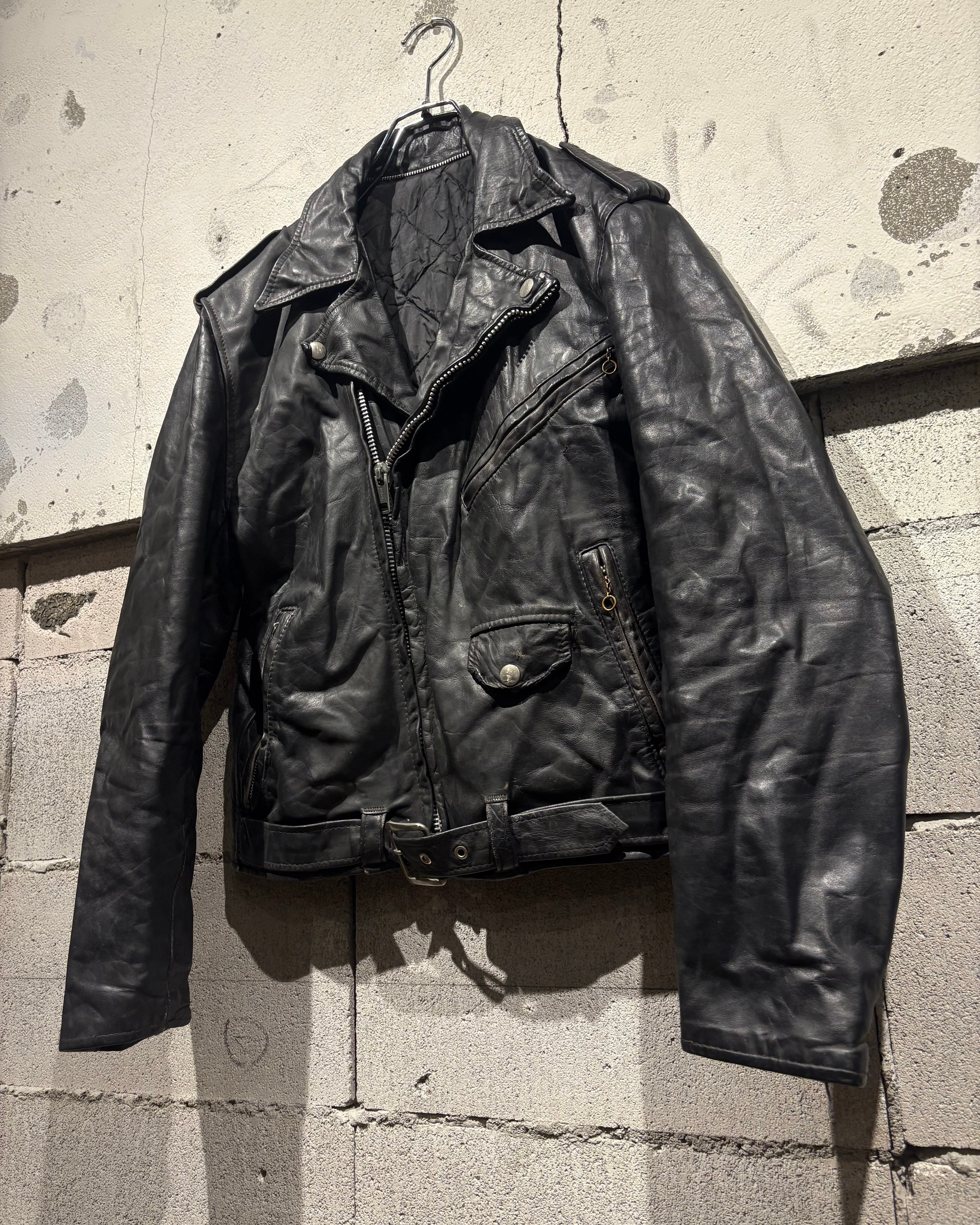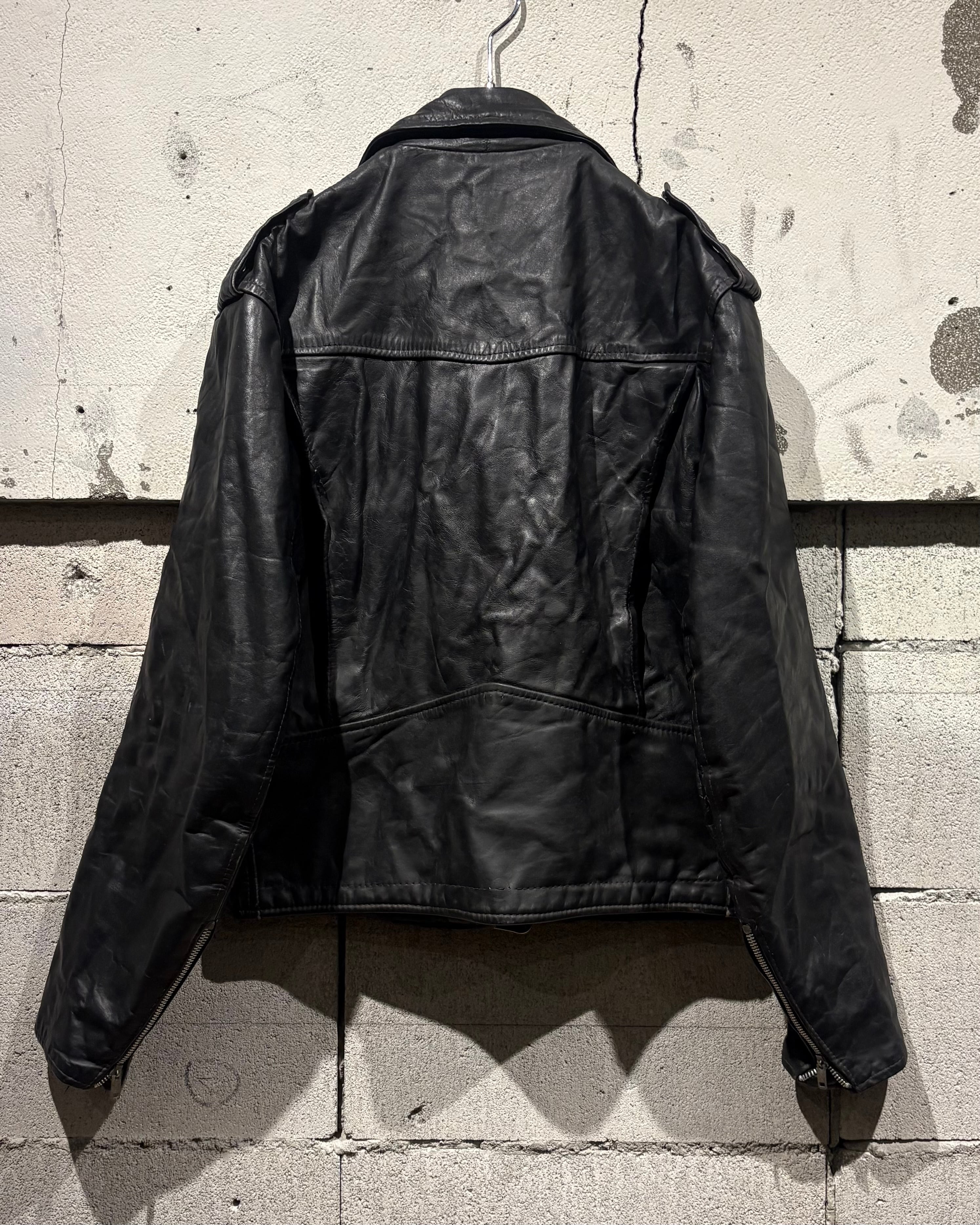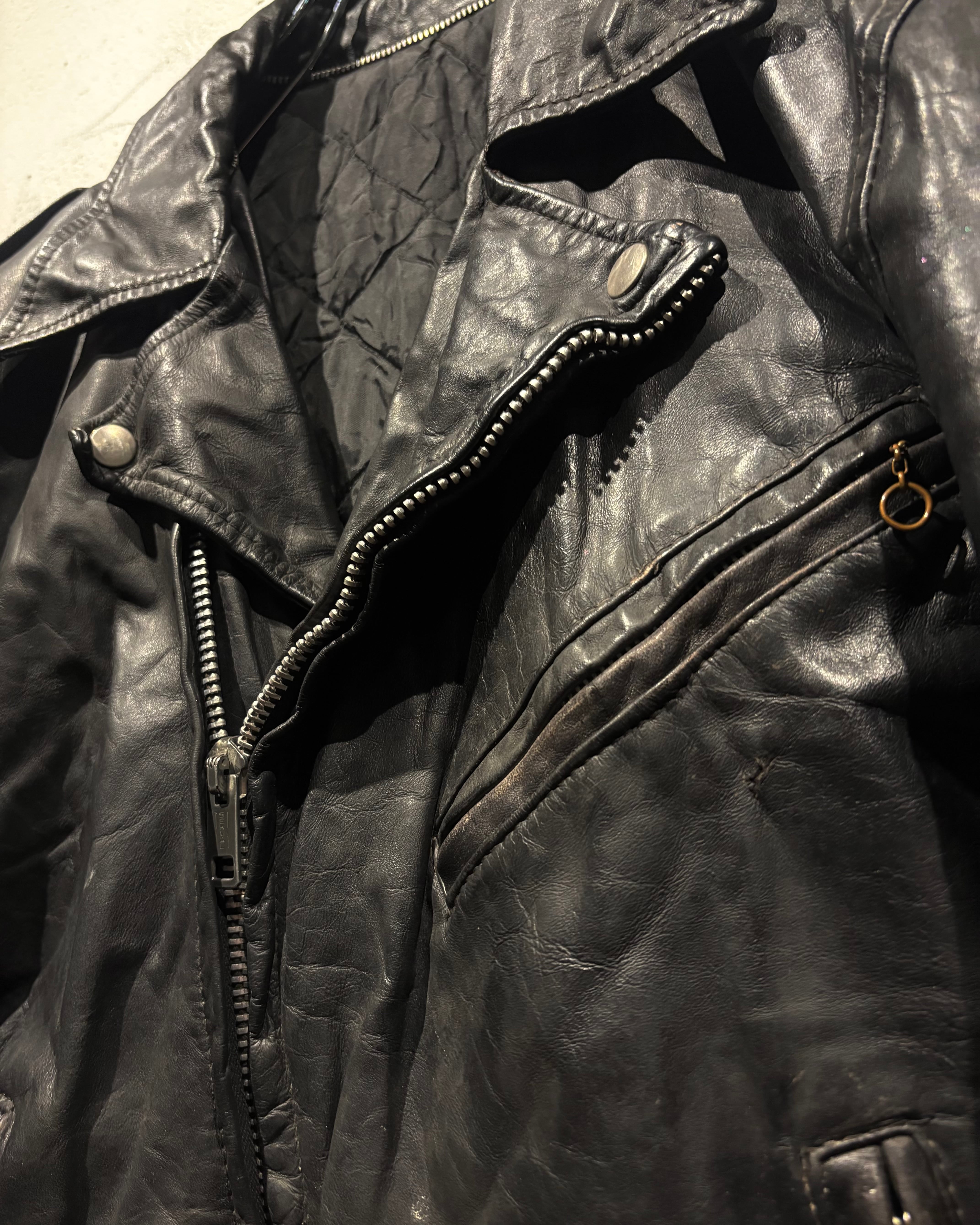 しなやかで奥行きのあるブラックレザーを用いた、王道ながらも存在感際立つ70'sヴィンテージのダブルライダースジャケット。
