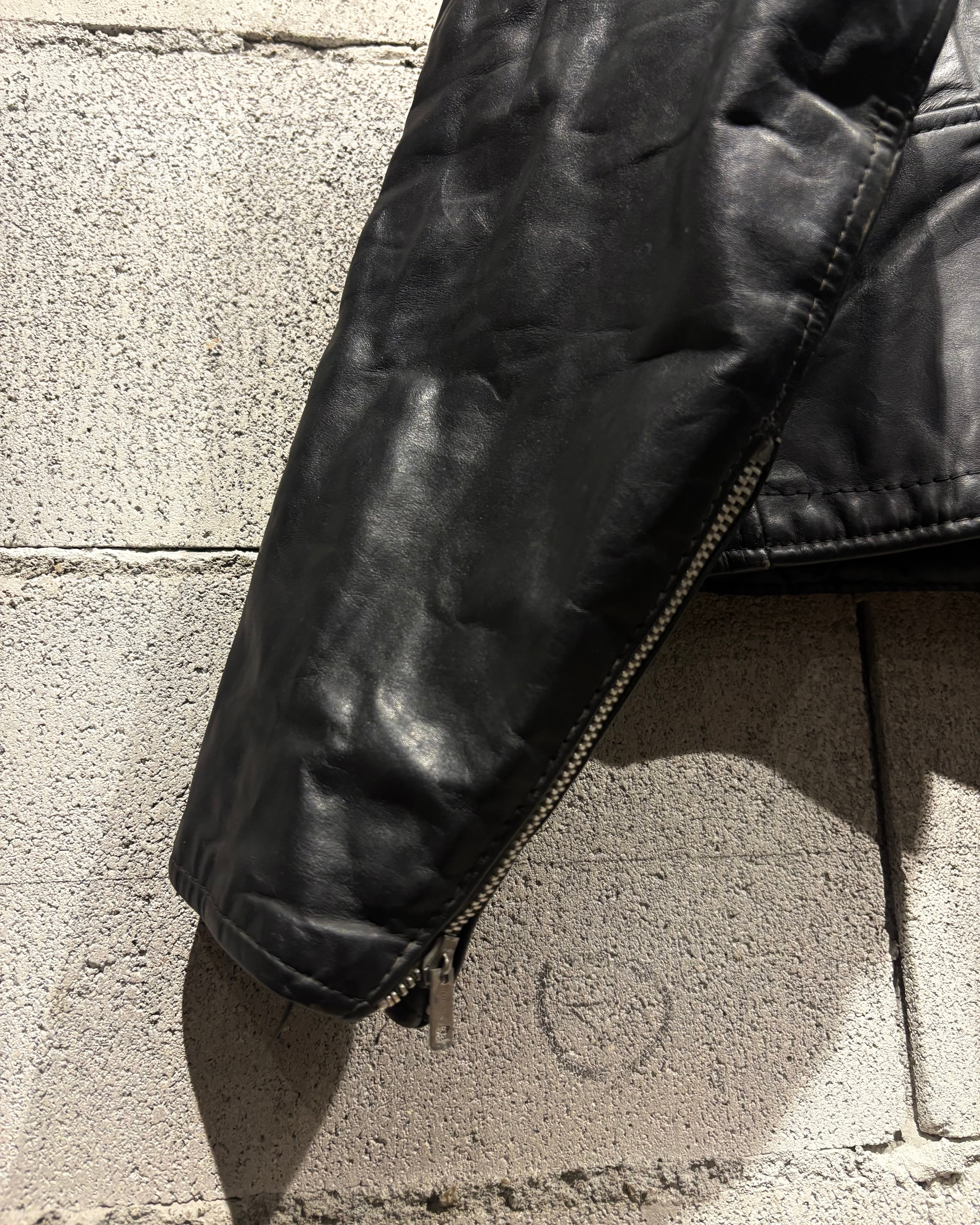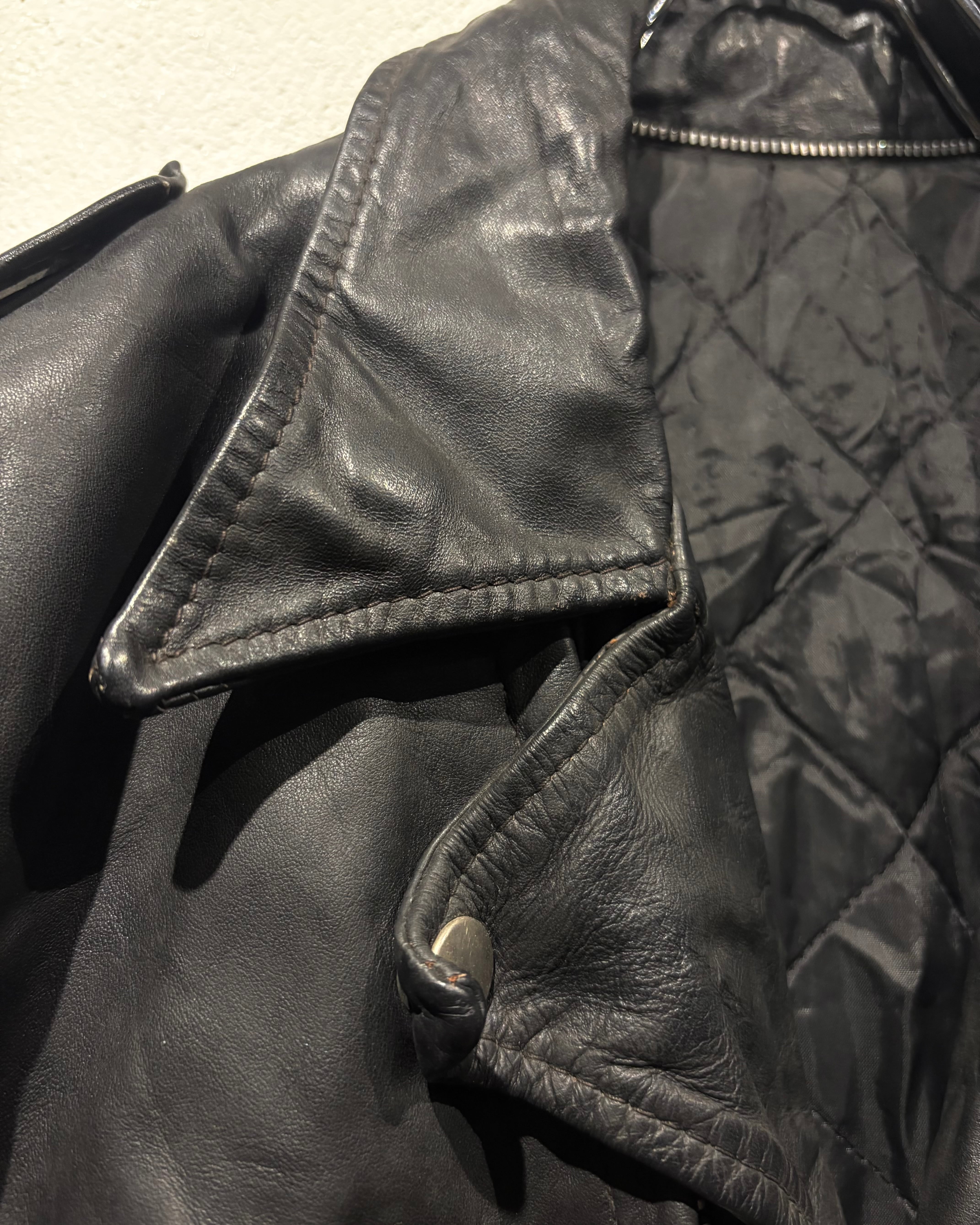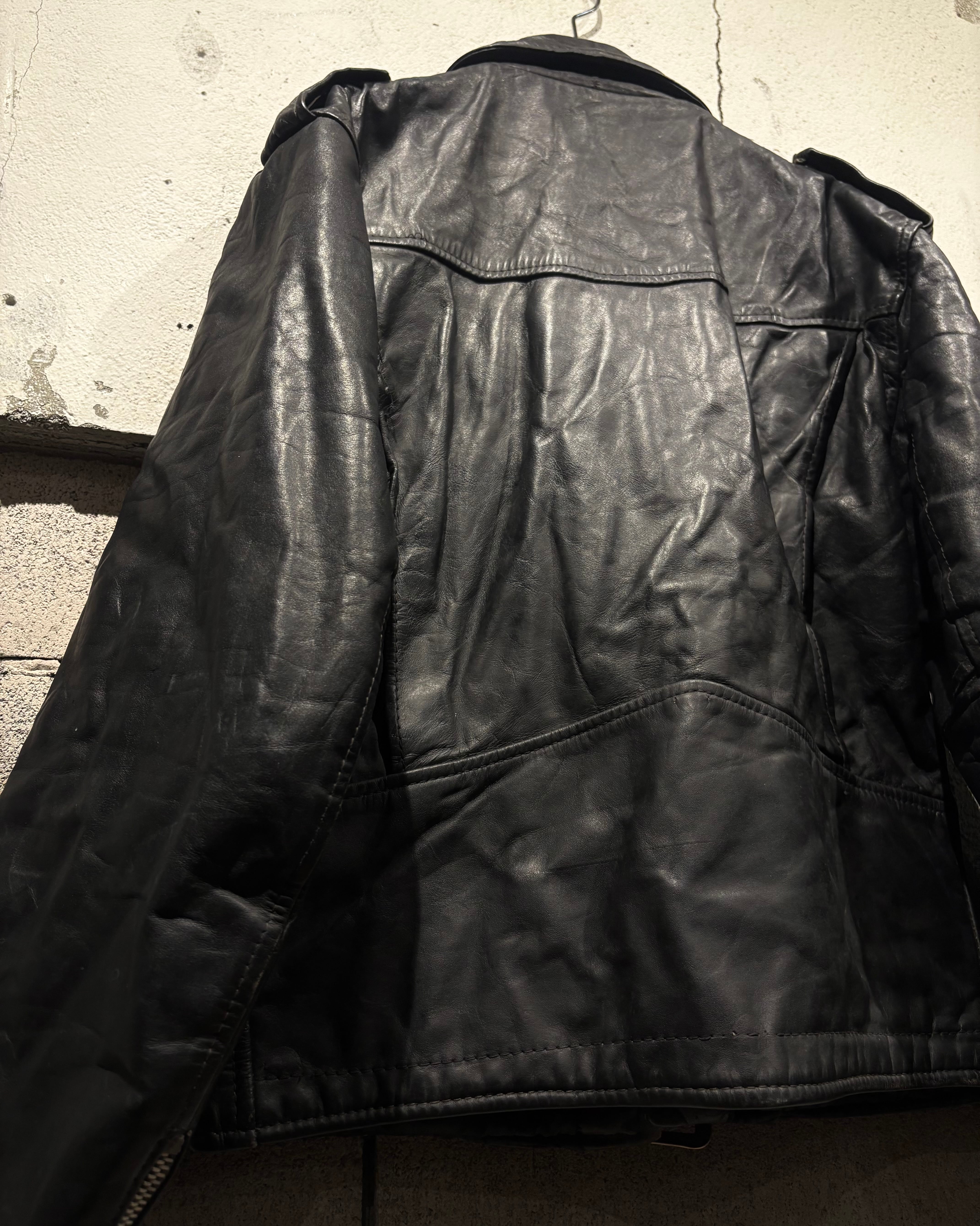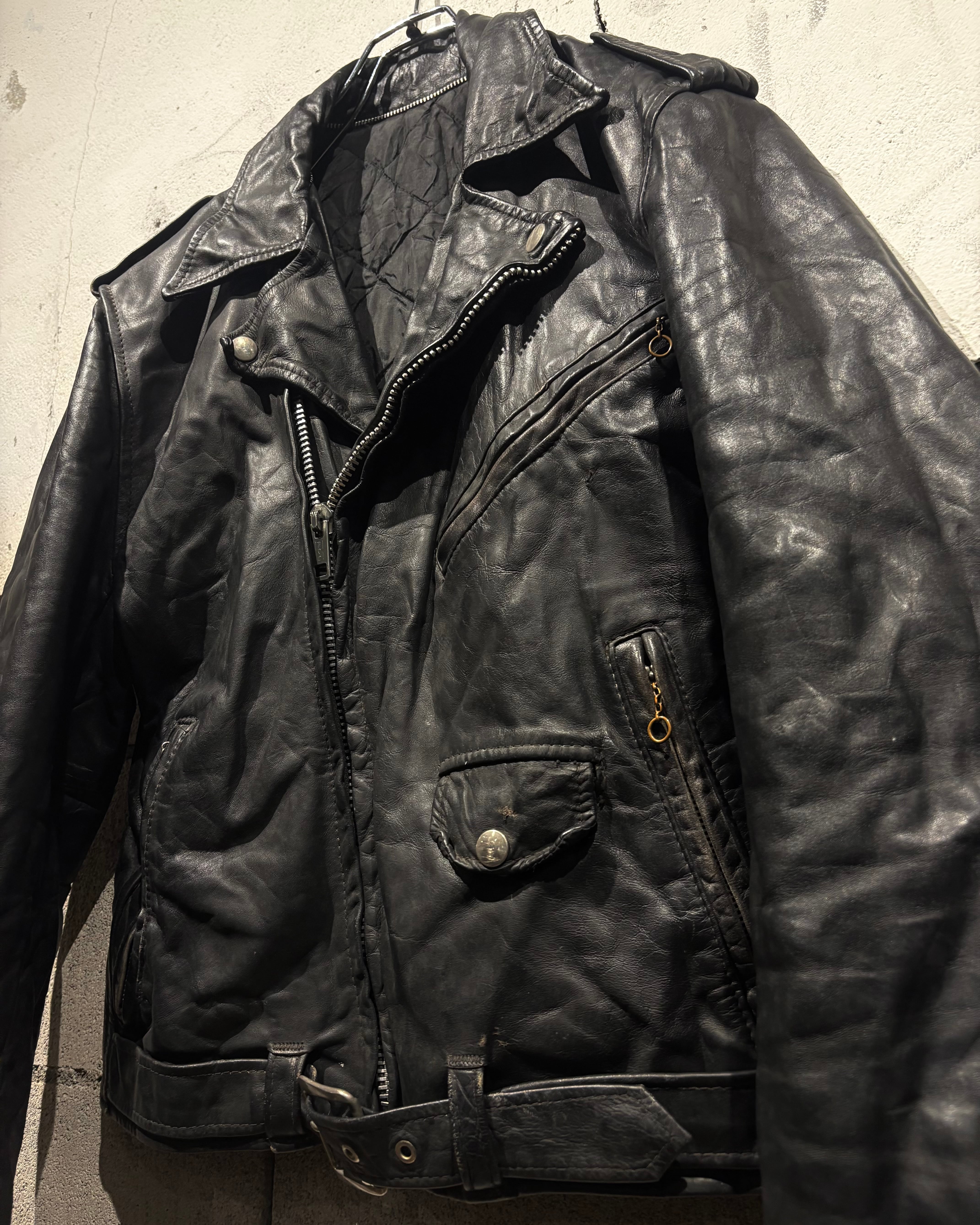 しなやかで奥行きのあるブラックレザーを用いた、王道ながらも存在感際立つ70'sヴィンテージのダブルライダースジャケット。