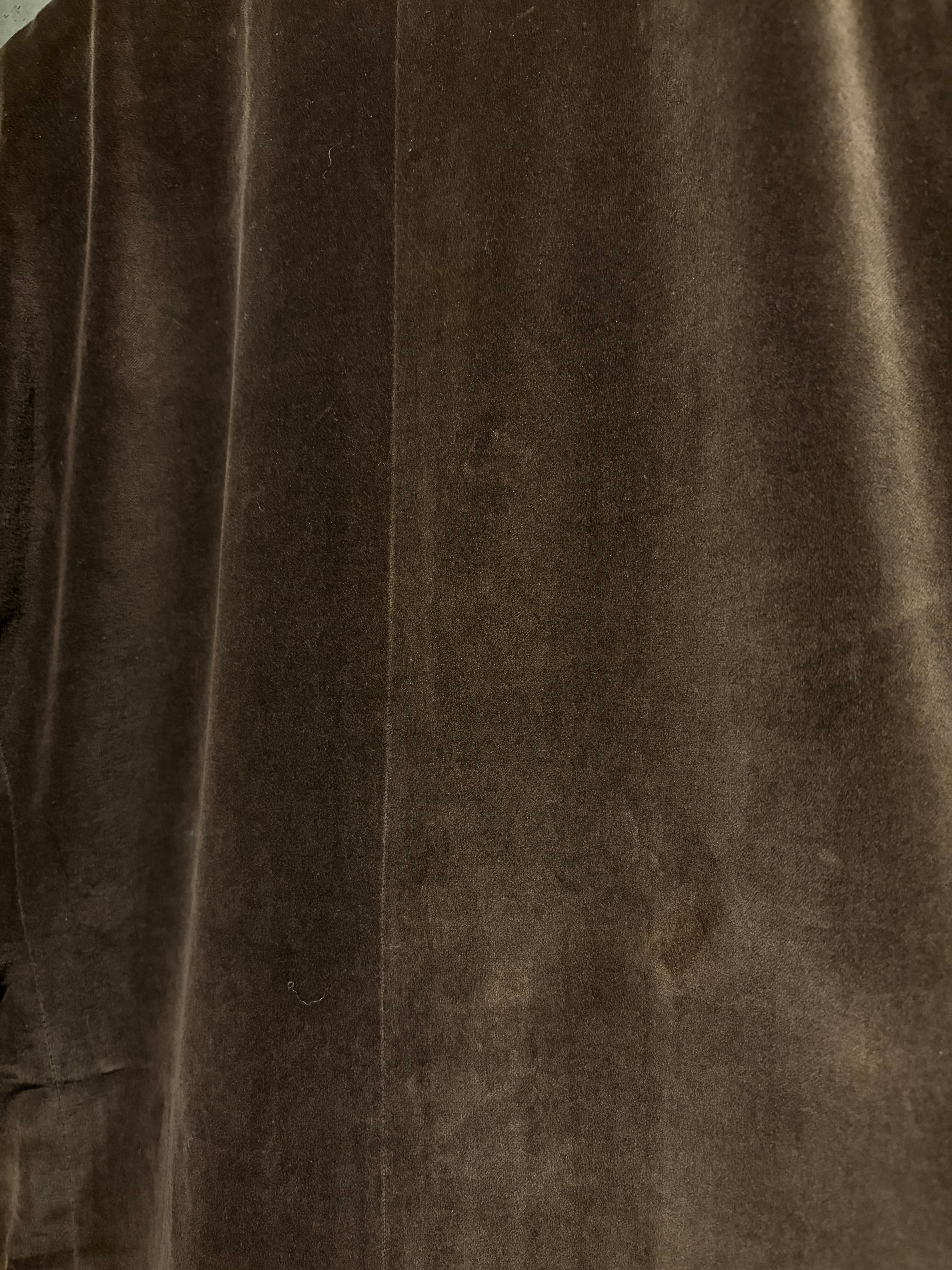 ボディには、深みのあるブラウンのベルベット生地を採用。起毛感のある表情が光の当たり方によって陰影を生み、落ち着きの中に艶やかな存在感を漂わせます。