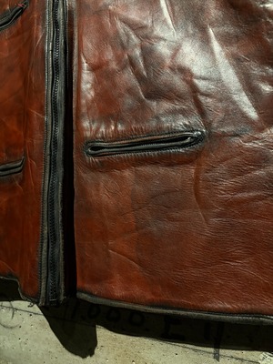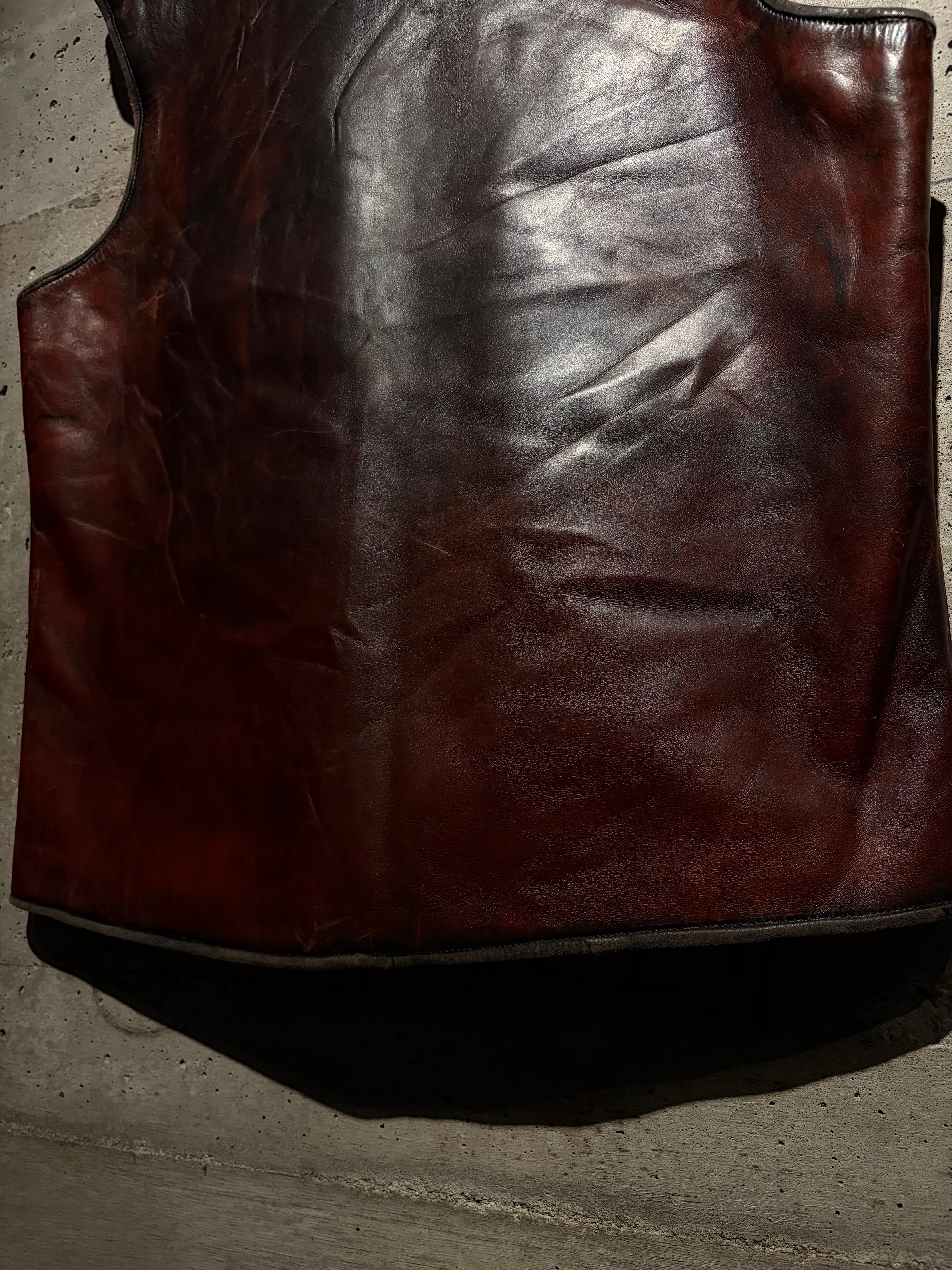 素材、色気、経年変化、すべてが掛け合わさり、一点物としての存在感を見せるレザーベスト。レザー好きにはぜひ手に取ってほしい、存在感のあるスペシャルな一着です。