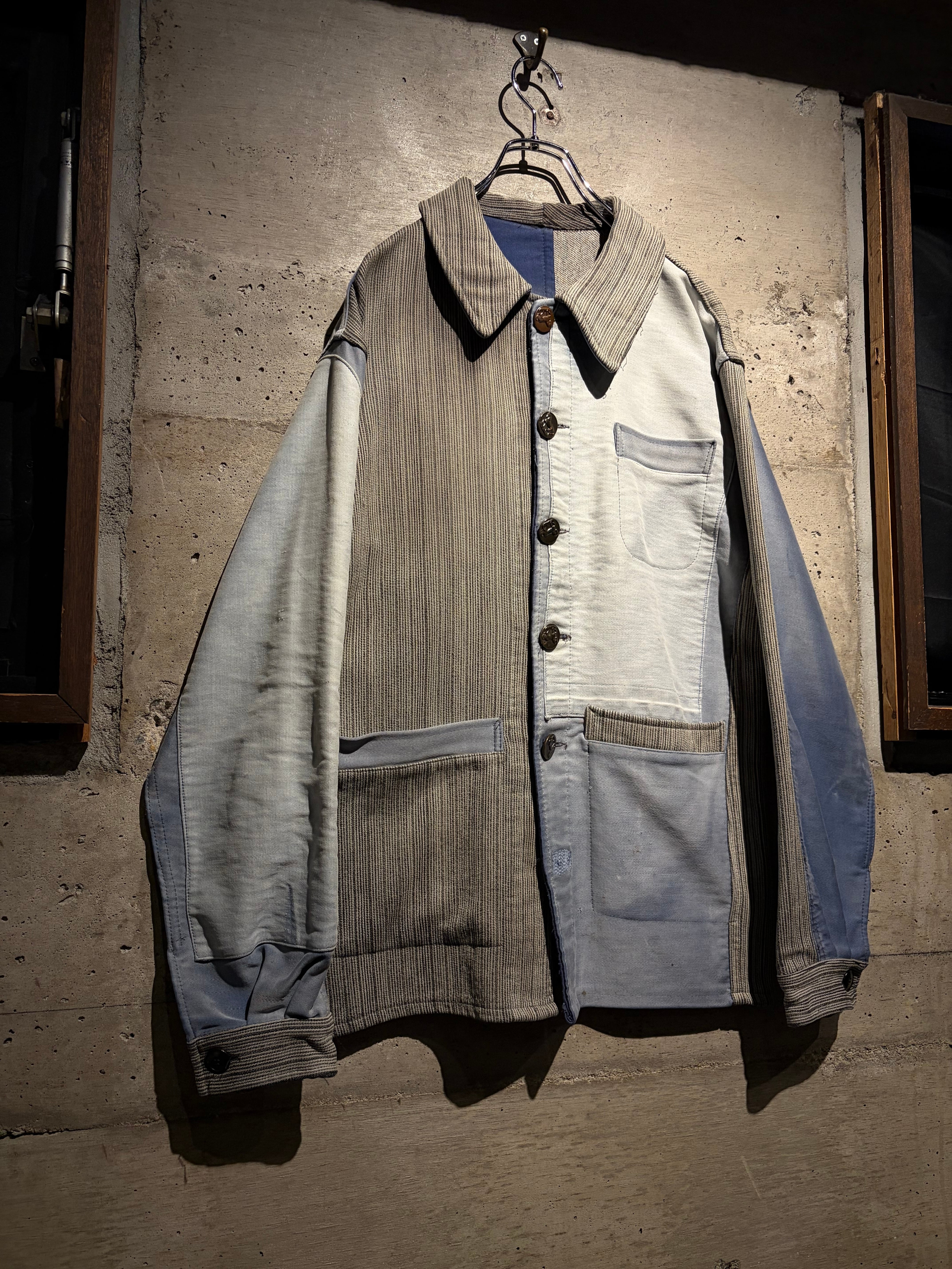 モールスキン×ピケによるパッチワークによって仕上げられた、40’s〜50’sのフレンチヴィンテージらしい空気感を色濃く残すスペシャルなワークジャケット。