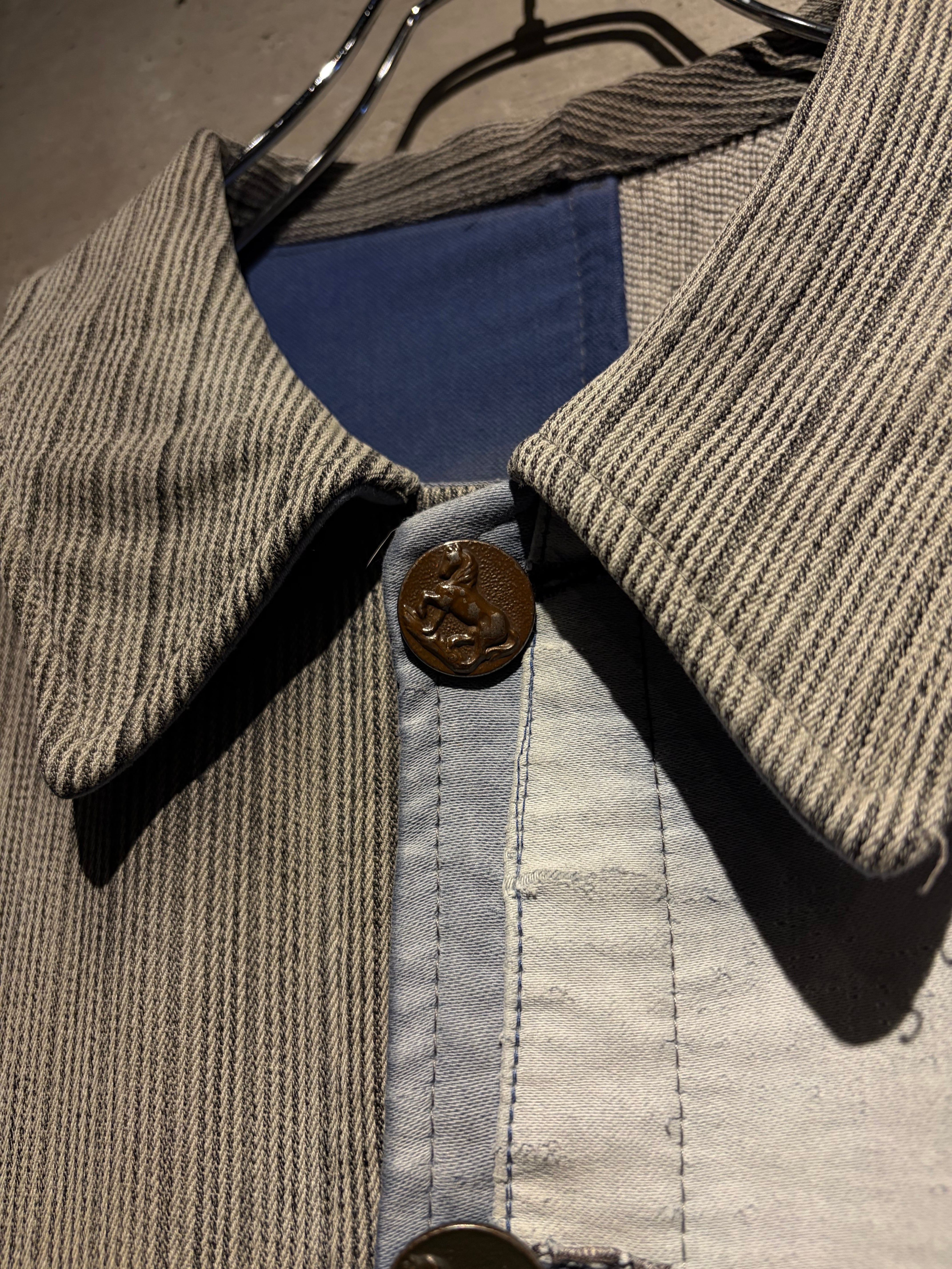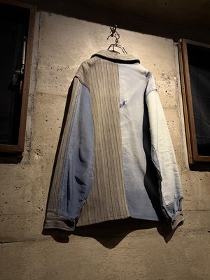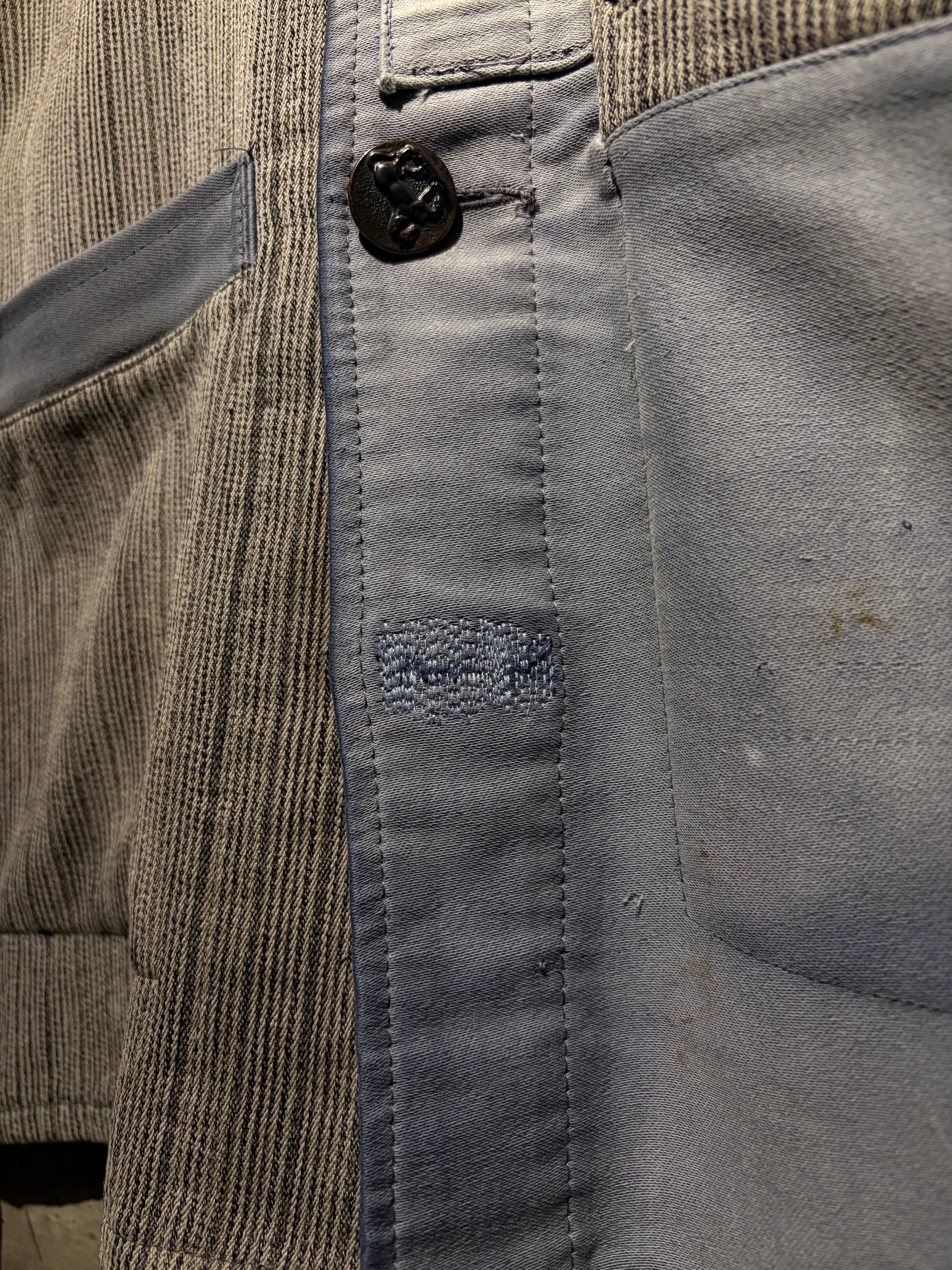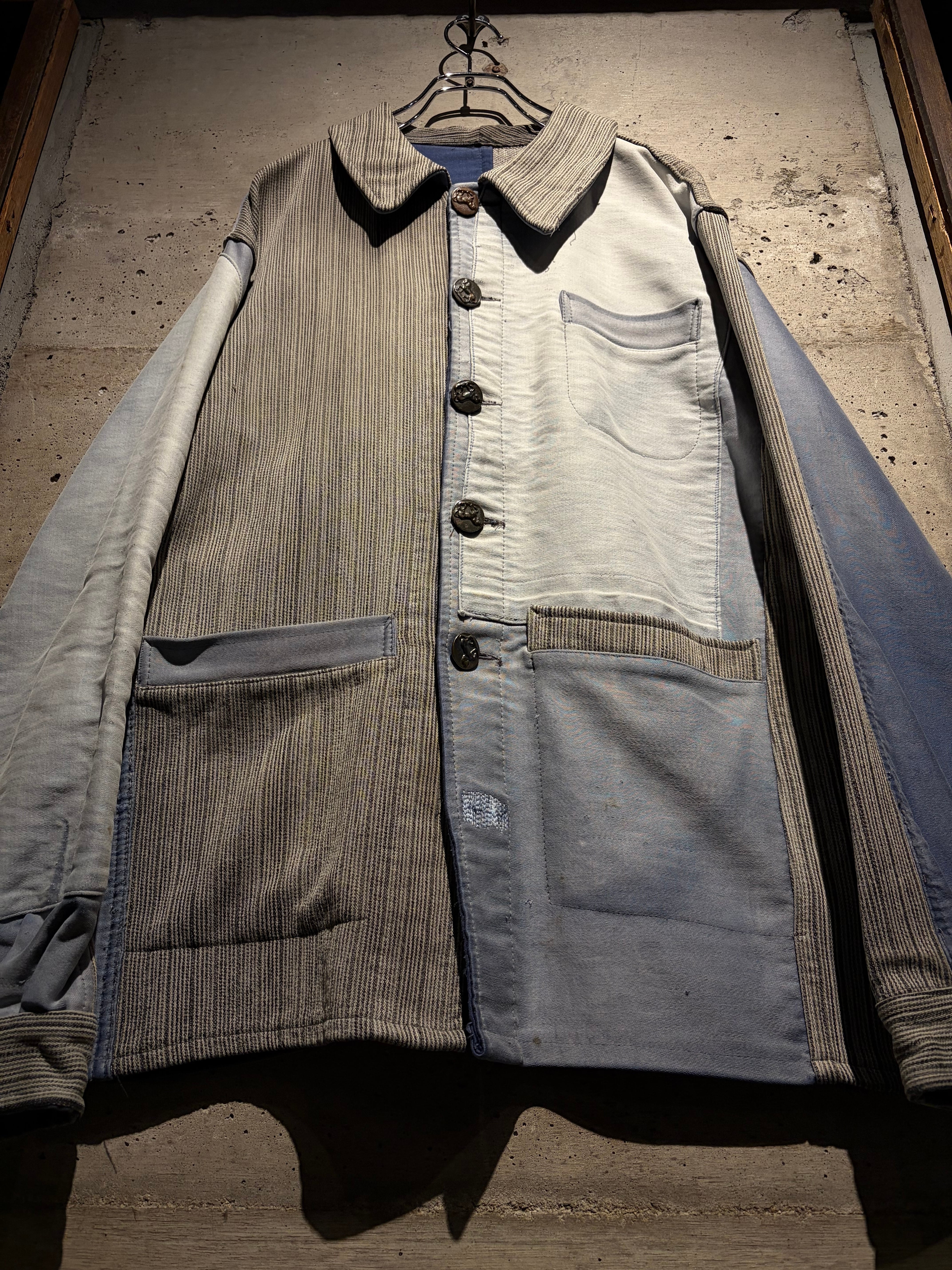 素材、フェード、パッチワーク、リペアまで含めて完成された佇まいを見せる、40’s〜50’sフレンチワークの魅力を凝縮したフレンチワークジャケット。今後同じものに出会うことは無いであろう、超スペシャルな一点モノです。