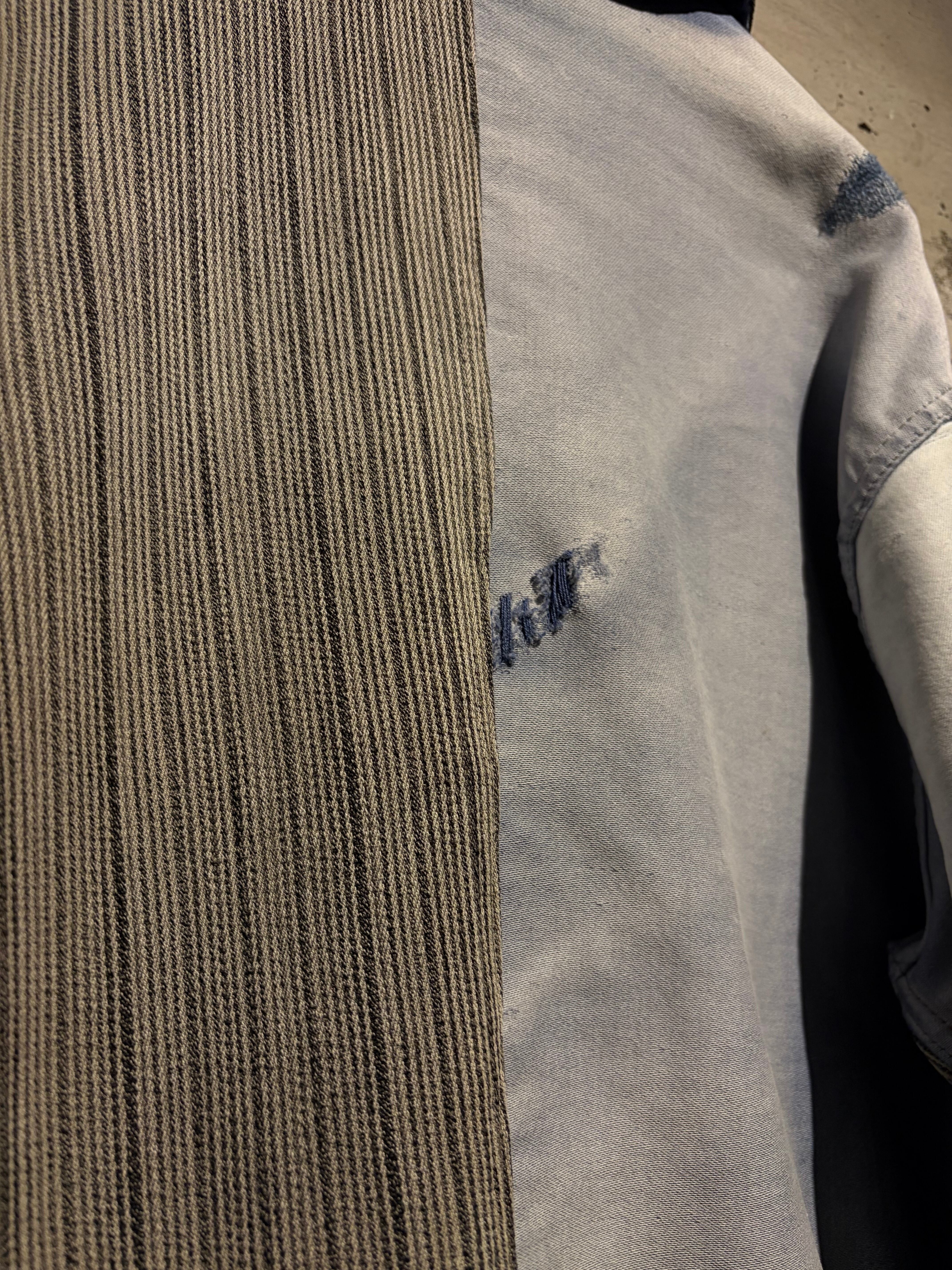 フェードしたモールスキンとピケの使い込まれたことで生まれた色ムラやトーンの揺らぎが、奥行きのある表情を形成。随所に施されたリペアもデザインとしてしっかりと成立し、ヴィンテージならでは、そして一点物としての抜群の存在感を放ちます。