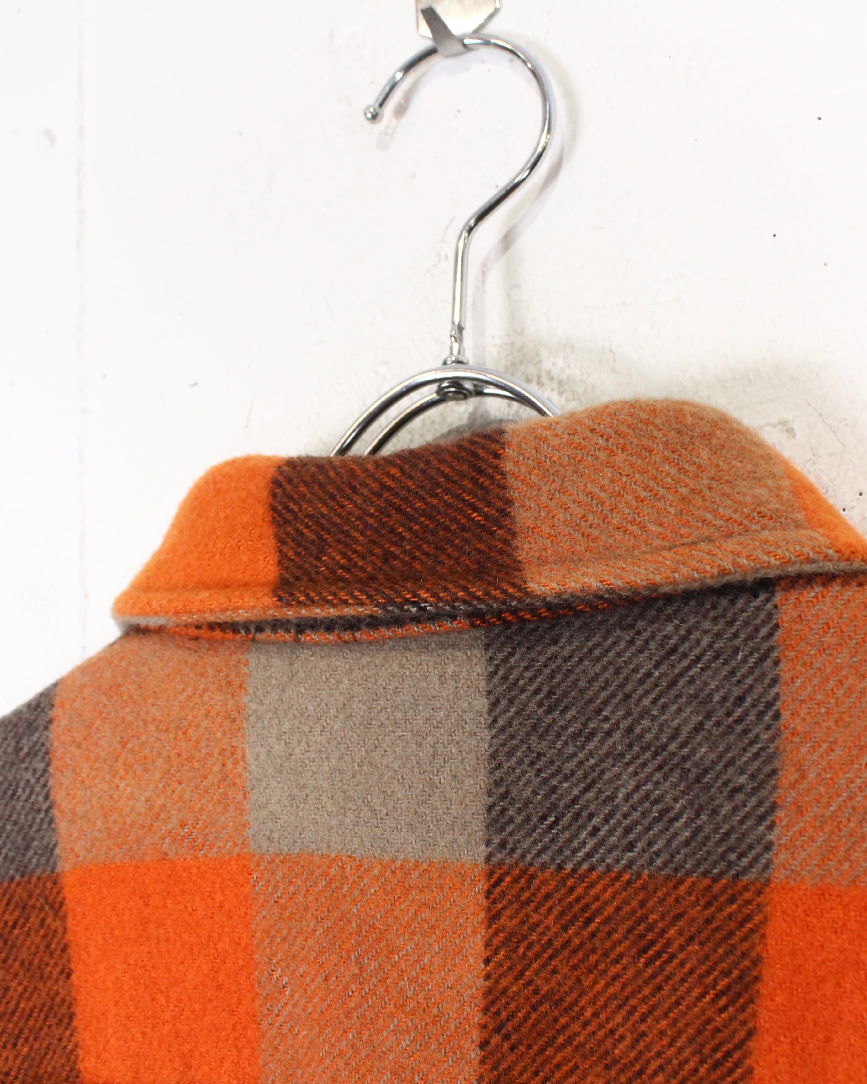 オレンジを基調に、ブラウンやベージュ、黒を重ねたチェックパターン。コントラストの効いた配色ながら、どこか落ち着きも感じさせる秀逸なバランス感に仕上げられています。