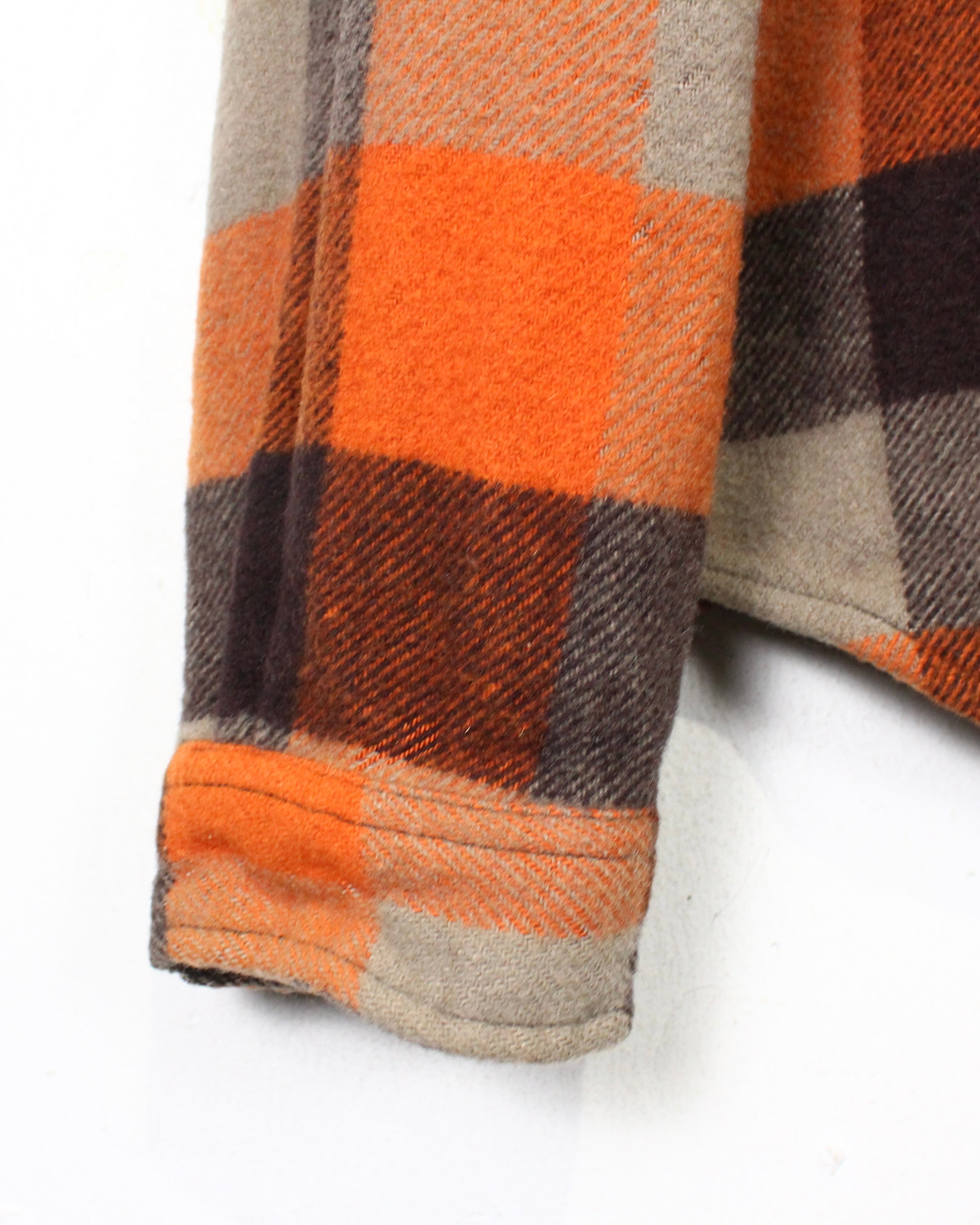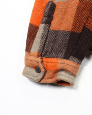 フロントはボタン仕様、胸元にはフラップ付きポケットを配置したオーセンティックなデザインの中に、ウエスタンヨークの切り替えがアクセントに。起毛感のあるヘビーネルならではの表情とチェックの立体感が合わさり、存在感も抜群。
