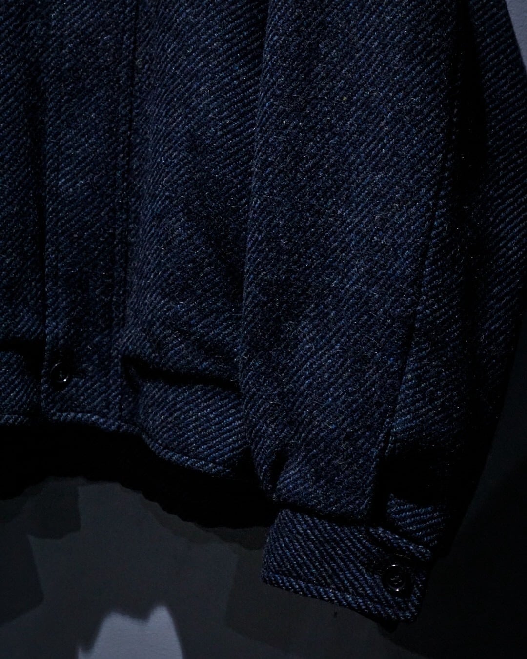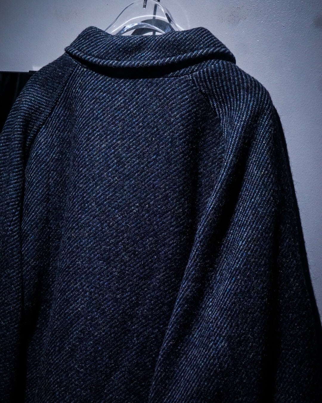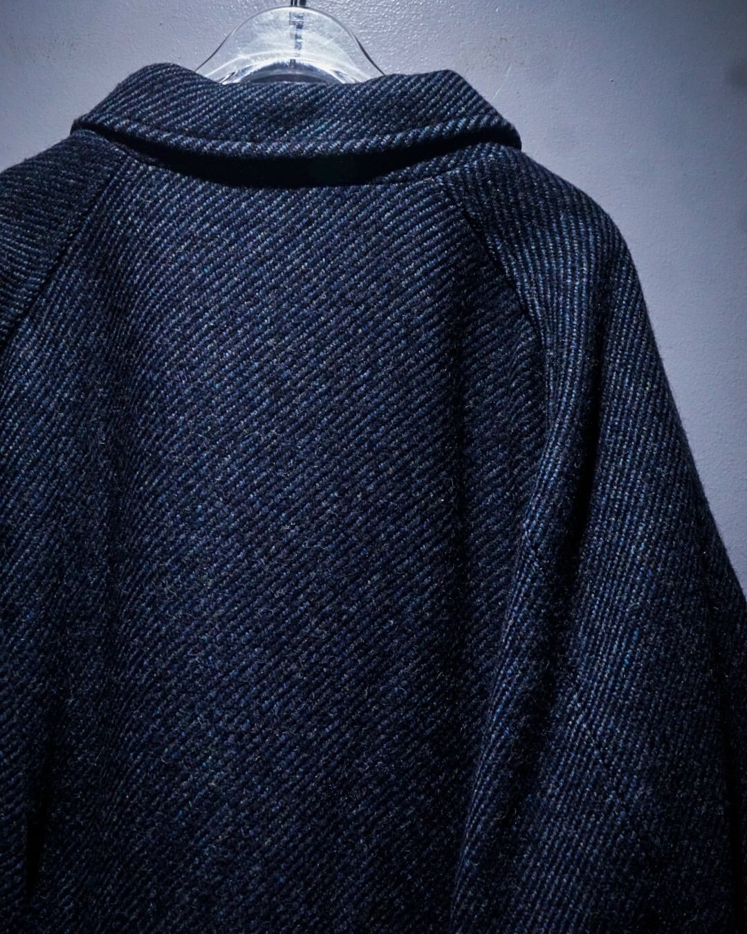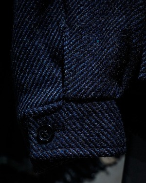 程よく厚みのあるウールは、ざらりとしたネップ感の中にも柔らかさがあり、見た目以上に軽快な着心地。裏地付きで滑りも良く、春秋冬のアウターとして活躍してくれるかと。