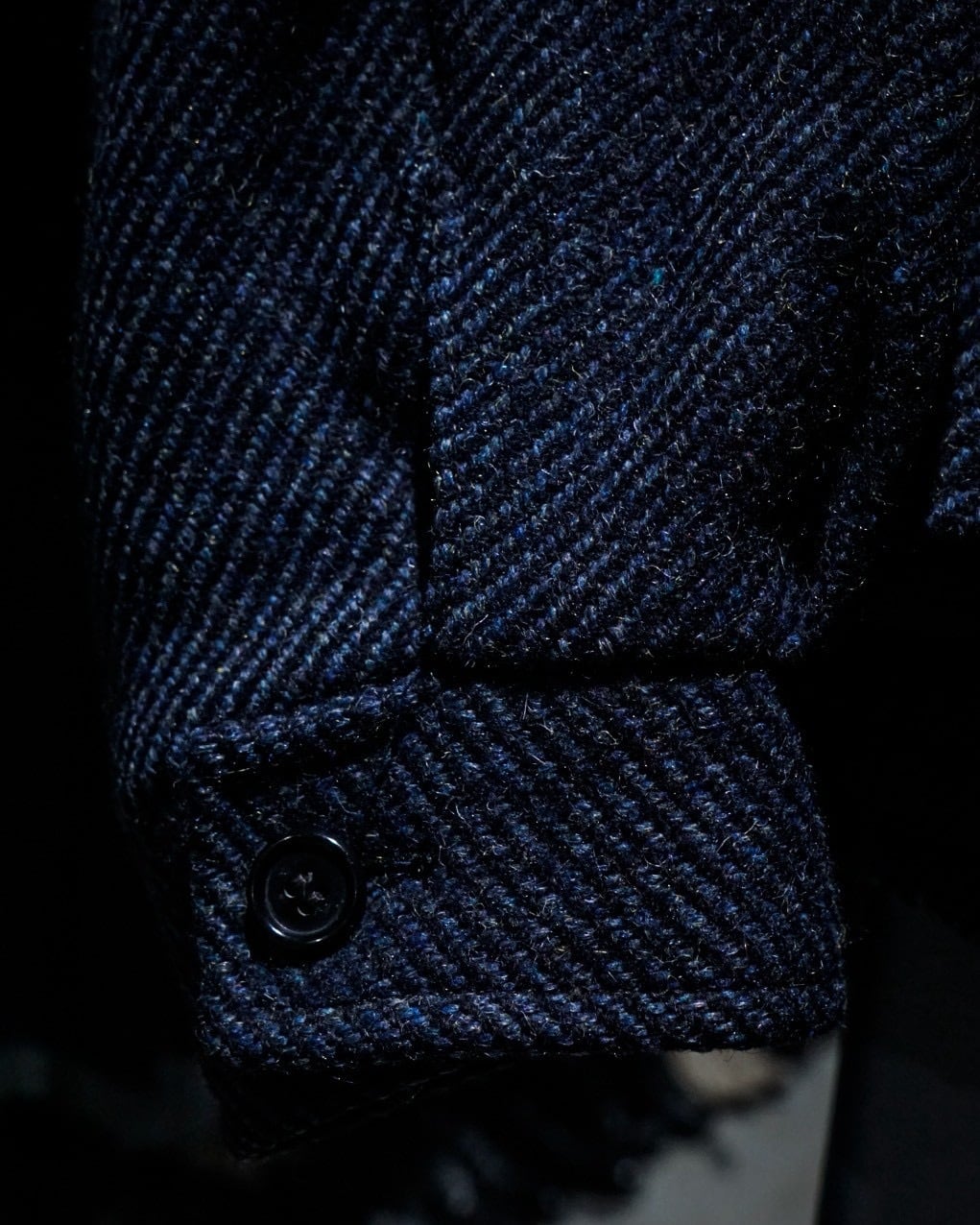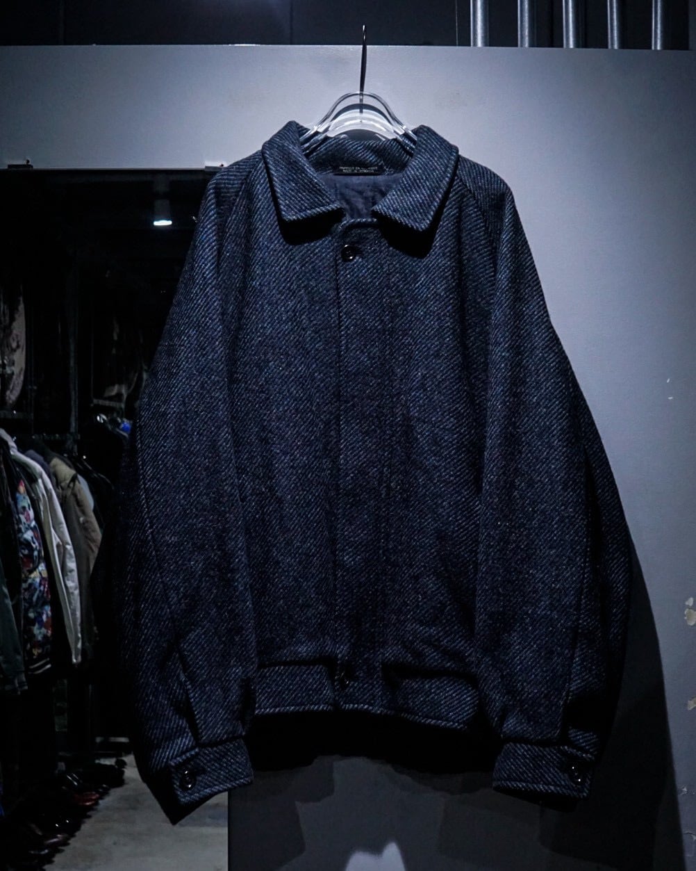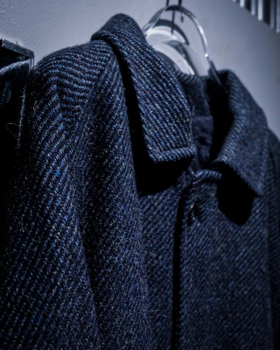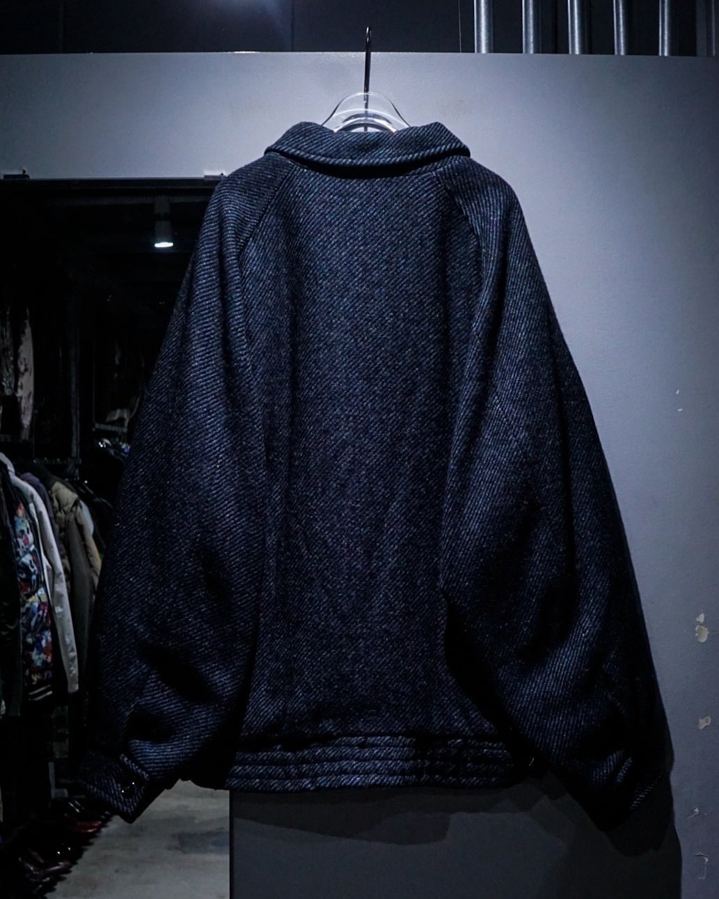 程よく厚みのあるウールは、ざらりとしたネップ感の中にも柔らかさがあり、見た目以上に軽快な着心地。裏地付きで滑りも良く、春秋冬のアウターとして活躍してくれるかと。