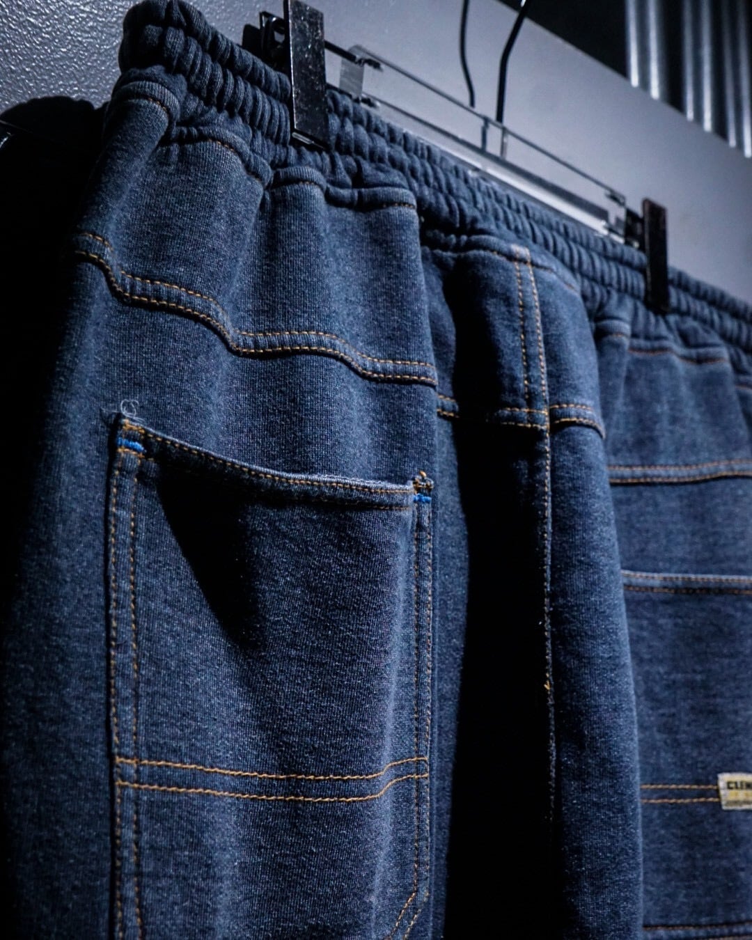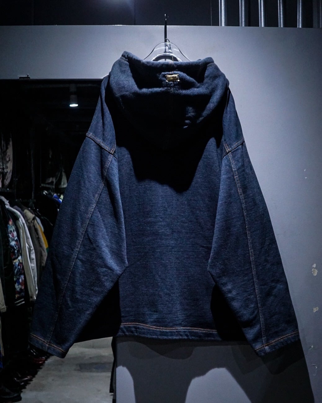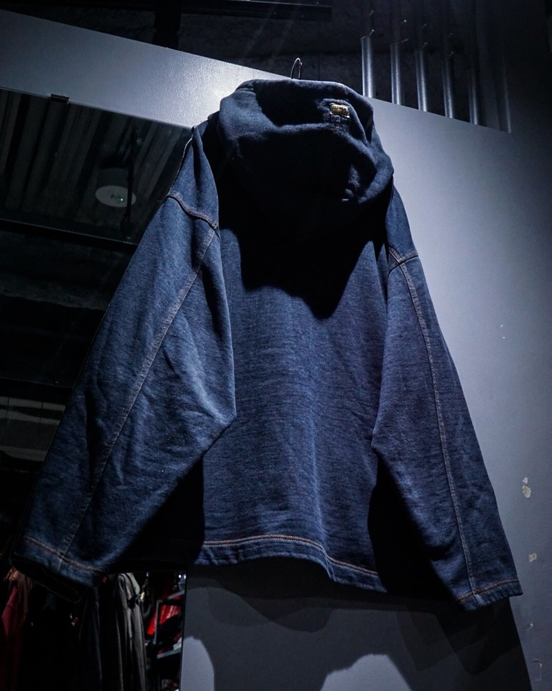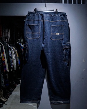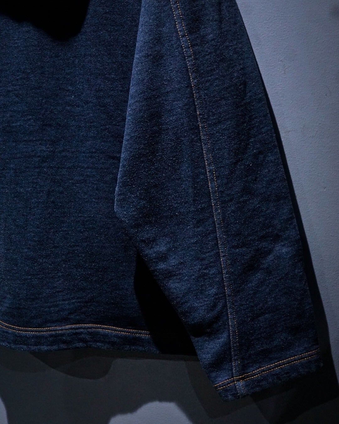 ボディにはスウェット素材を採用。インディゴ調の深みある色味と、ステッチワークによる立体的な切り替えが相まって、ラフさの中にしっかりとした存在感を感じさせる仕上がりです。