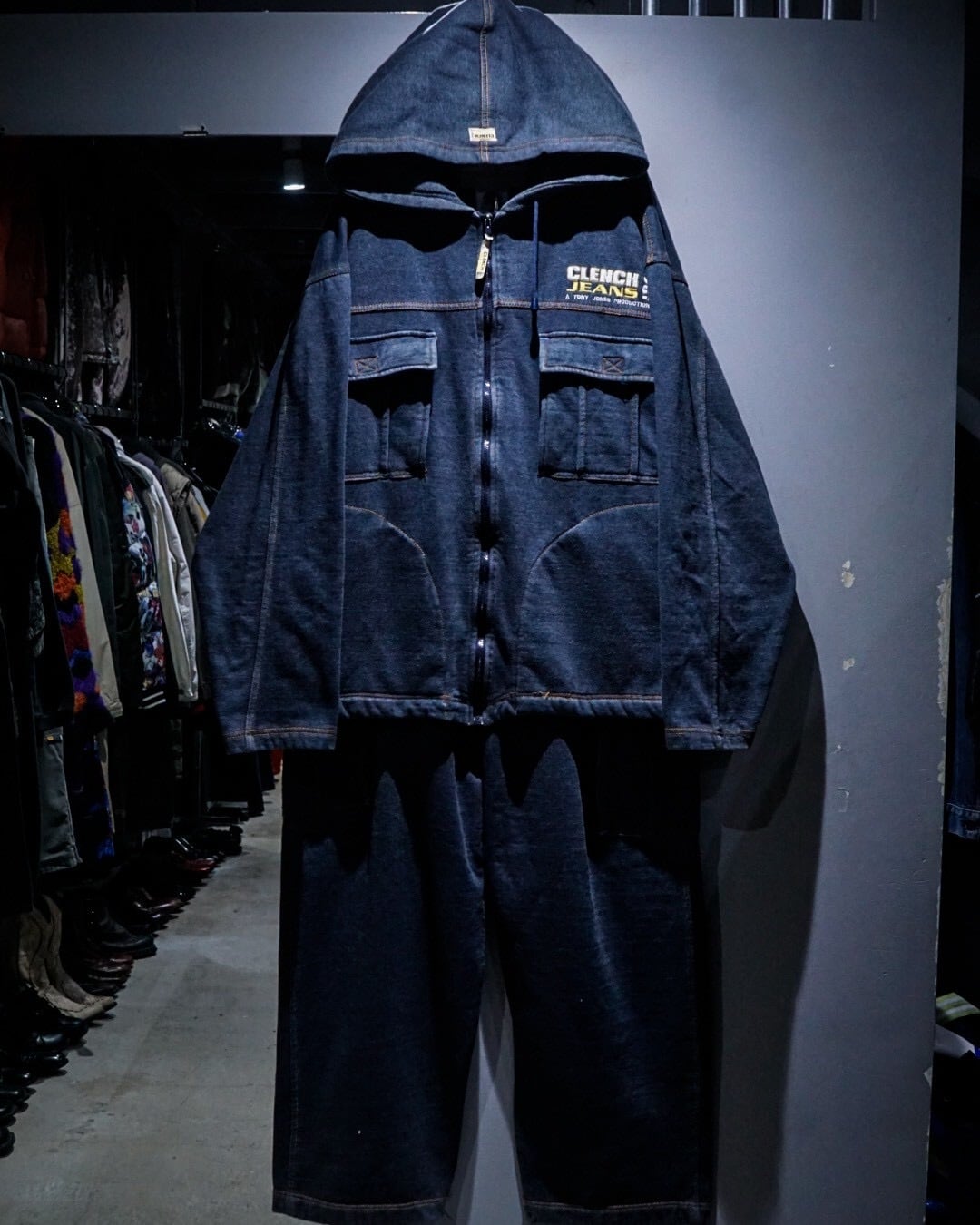 90's〜00'sのストリートシーンで人気を誇る“CLENCH JEANS”より、ブランドの個性が色濃く表れたセットアップ。