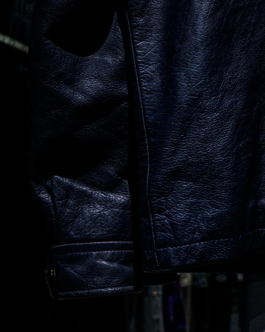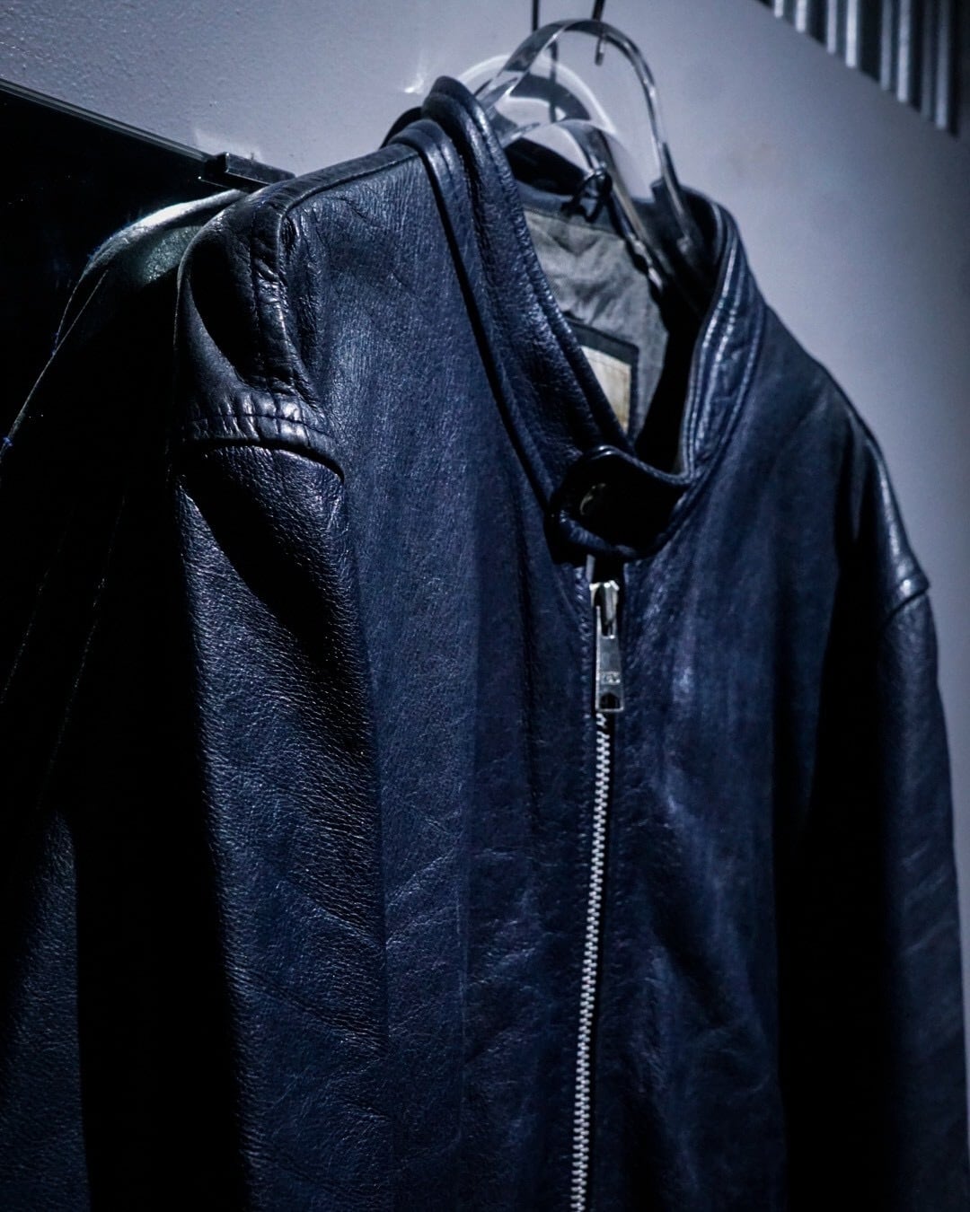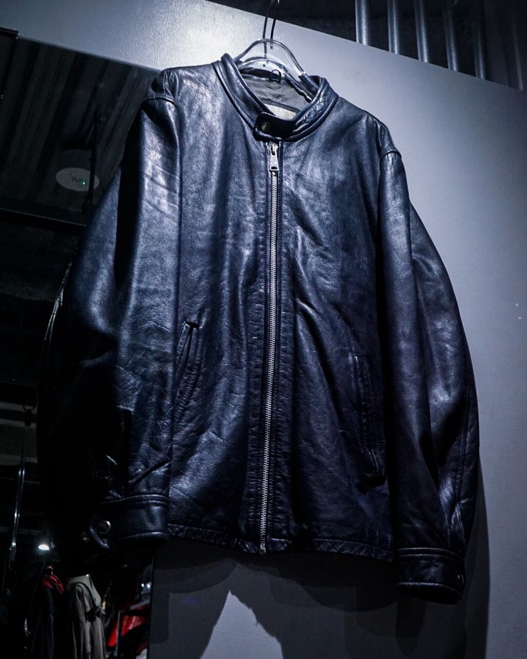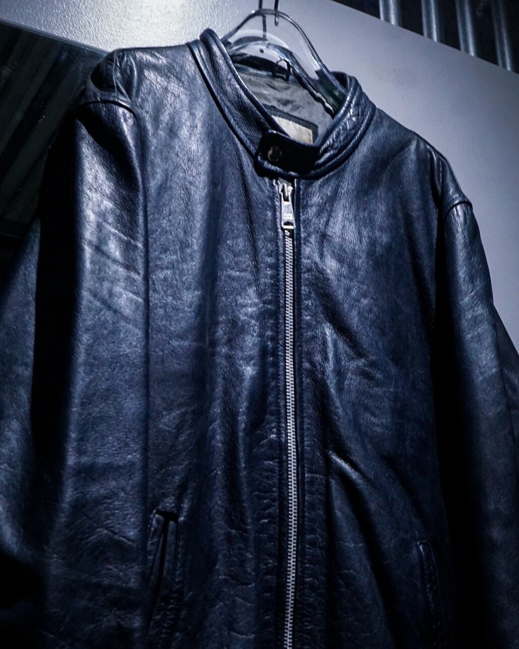 上質なレザー素材と稀有なネイビーカラーが合わさった、洗練された空気感を纏うスペシャルなシングルライダースジャケットです。