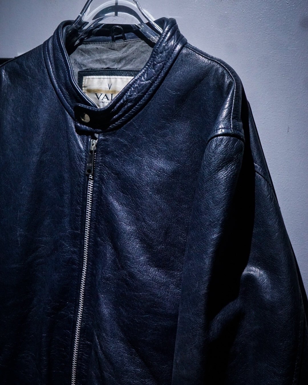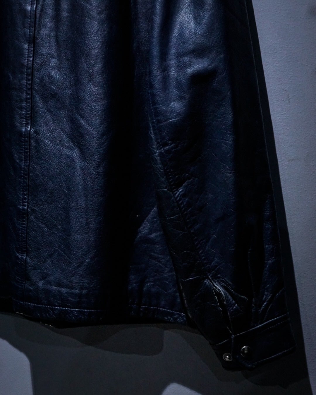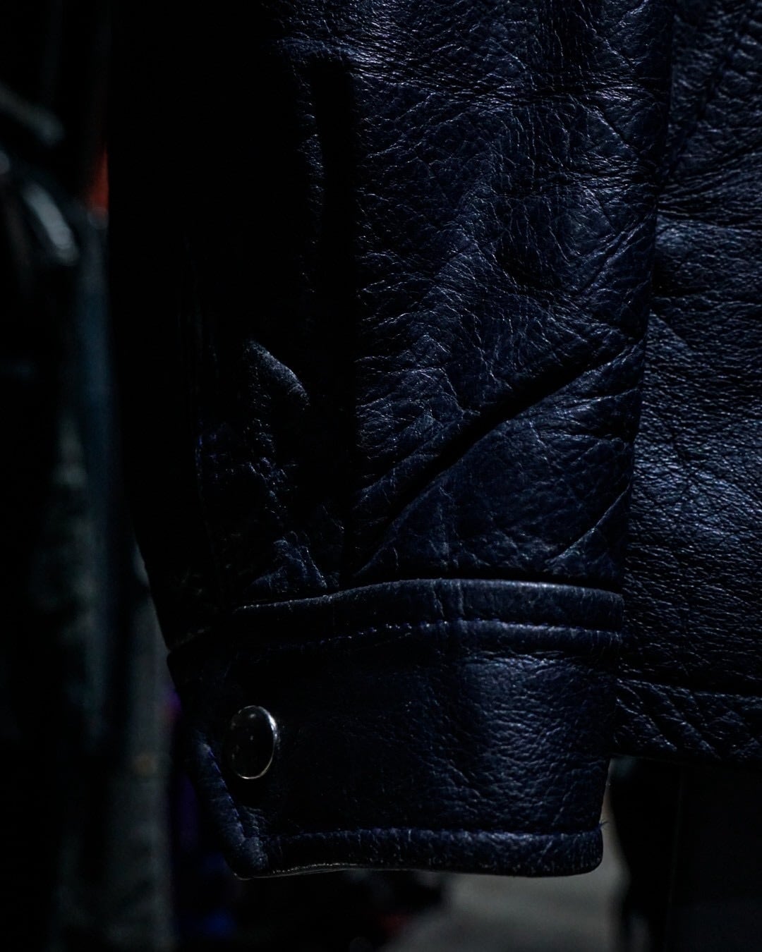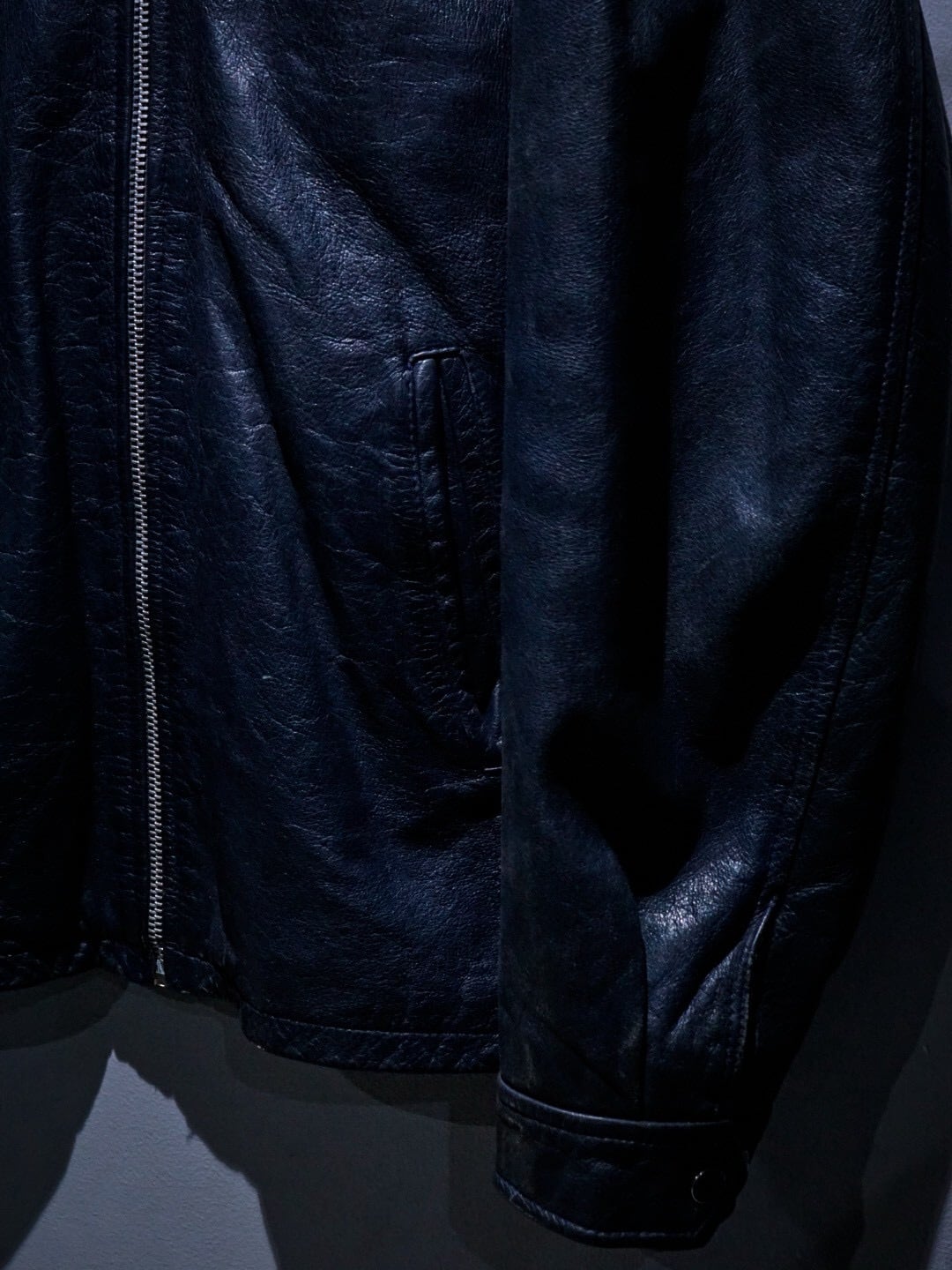 上質なレザー素材と稀有なネイビーカラーが合わさった、洗練された空気感を纏うスペシャルなシングルライダースジャケットです。