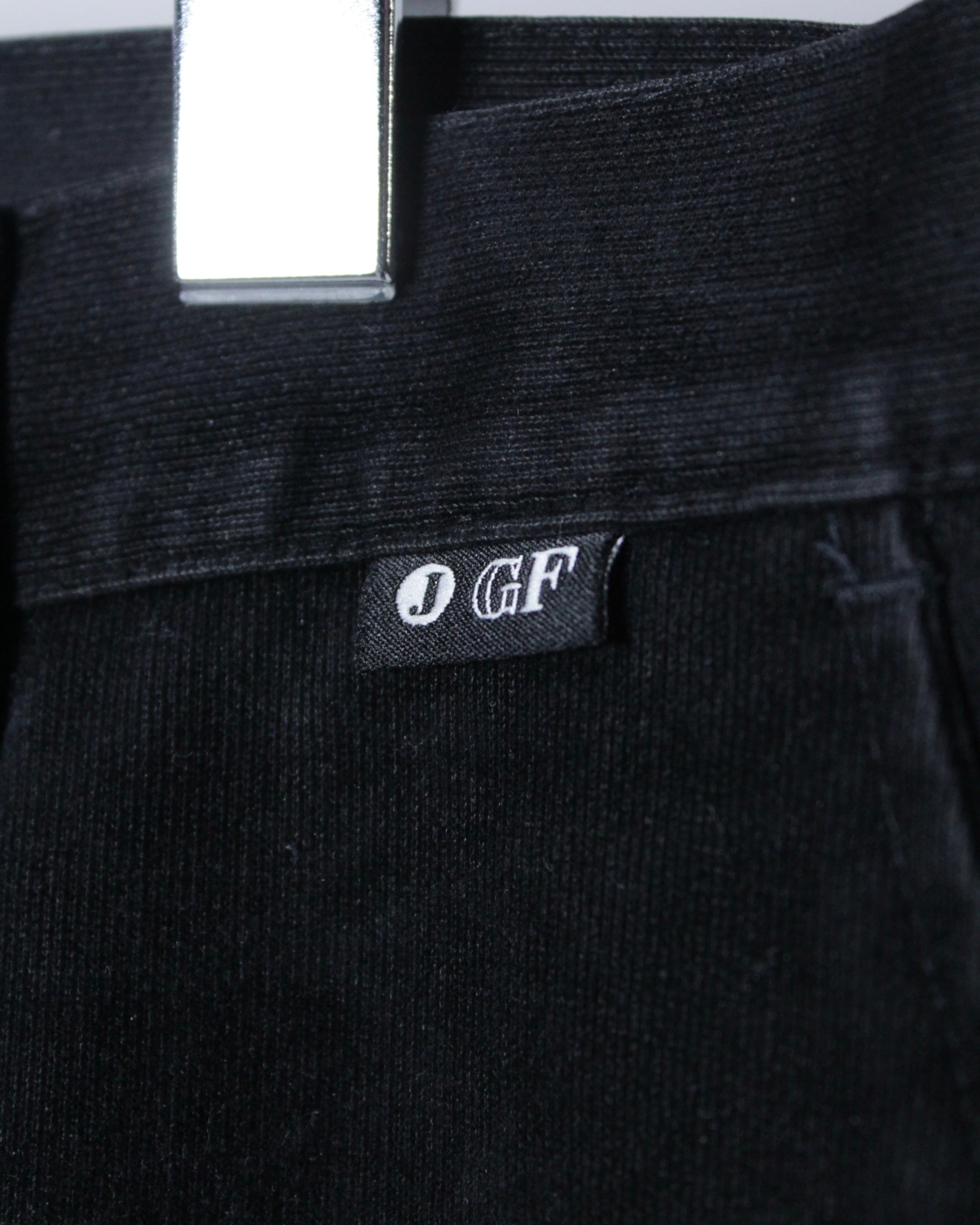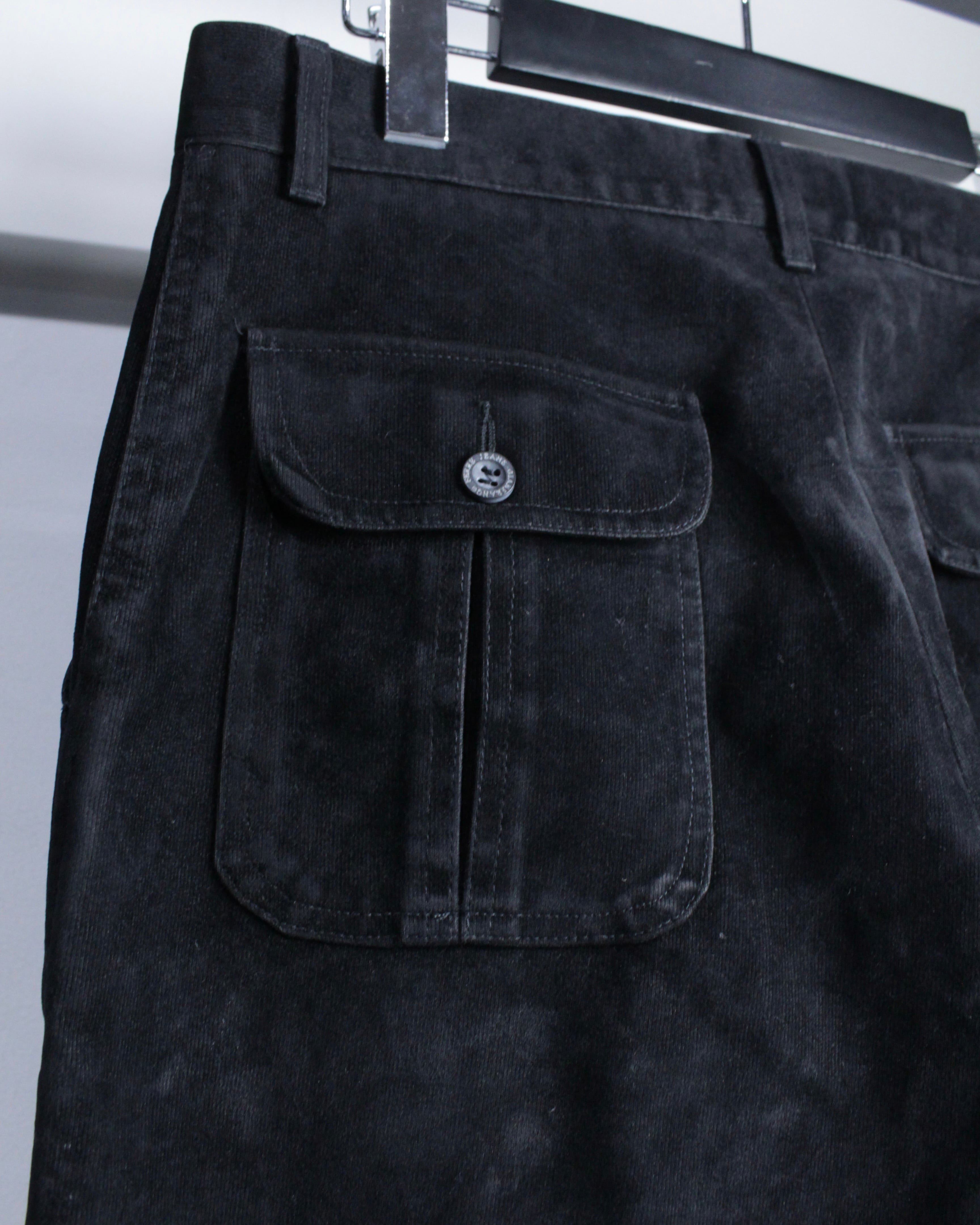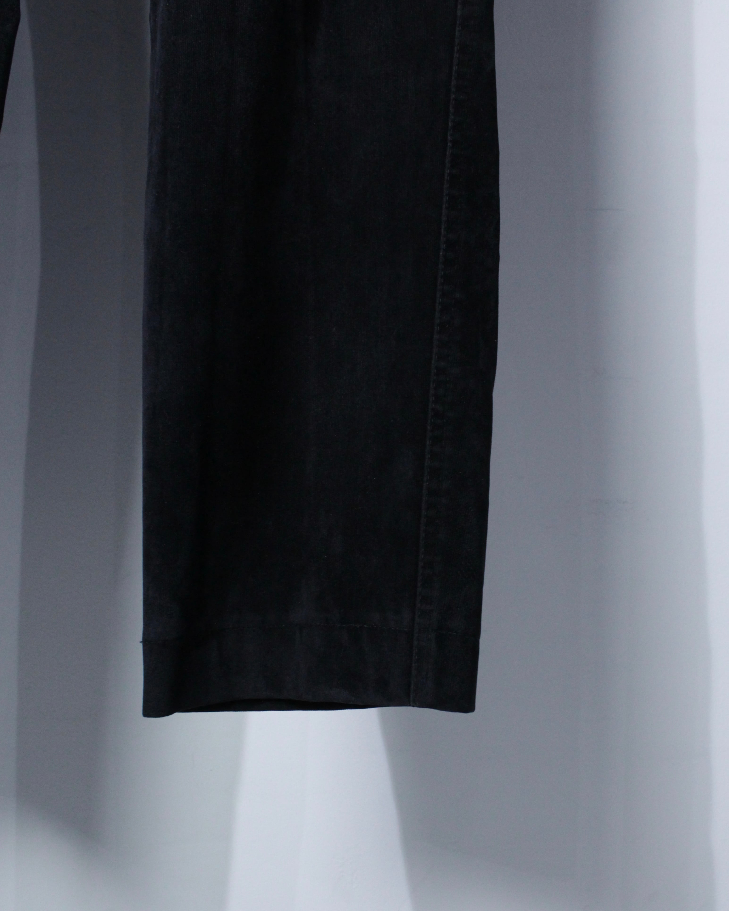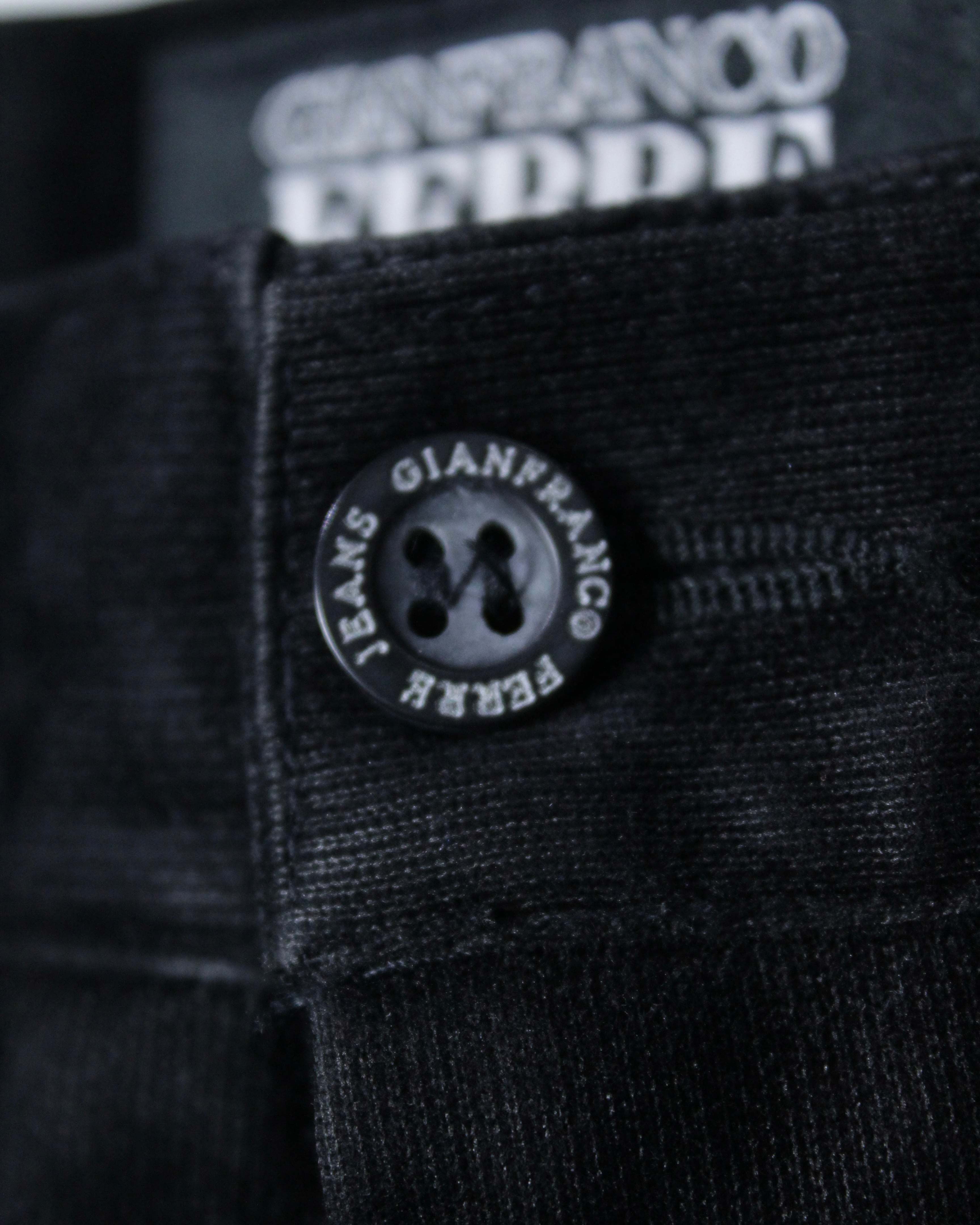 “GIANFRANCO FERRÉ JEANS”らしい構築美と素材使いが際立つパンツ。