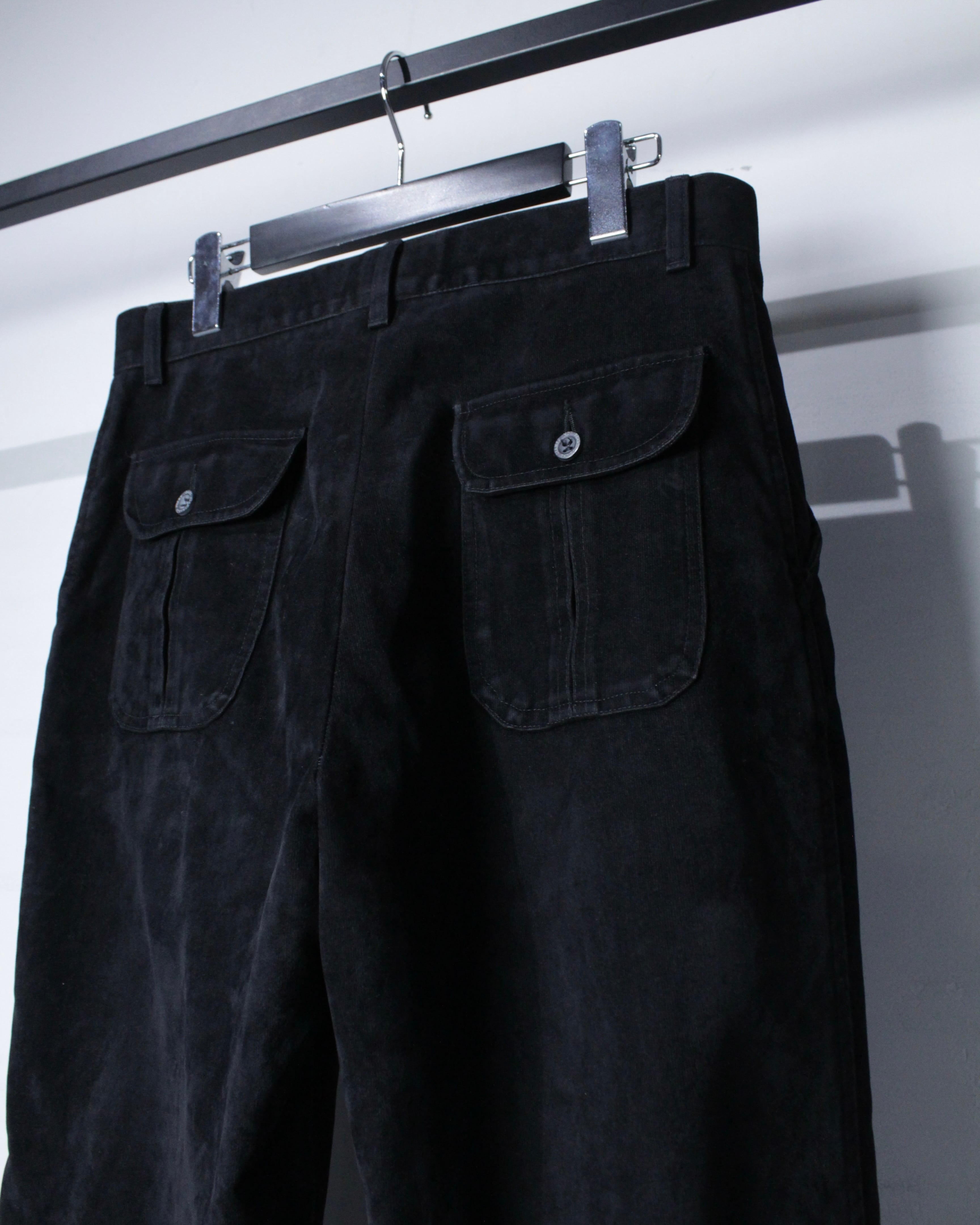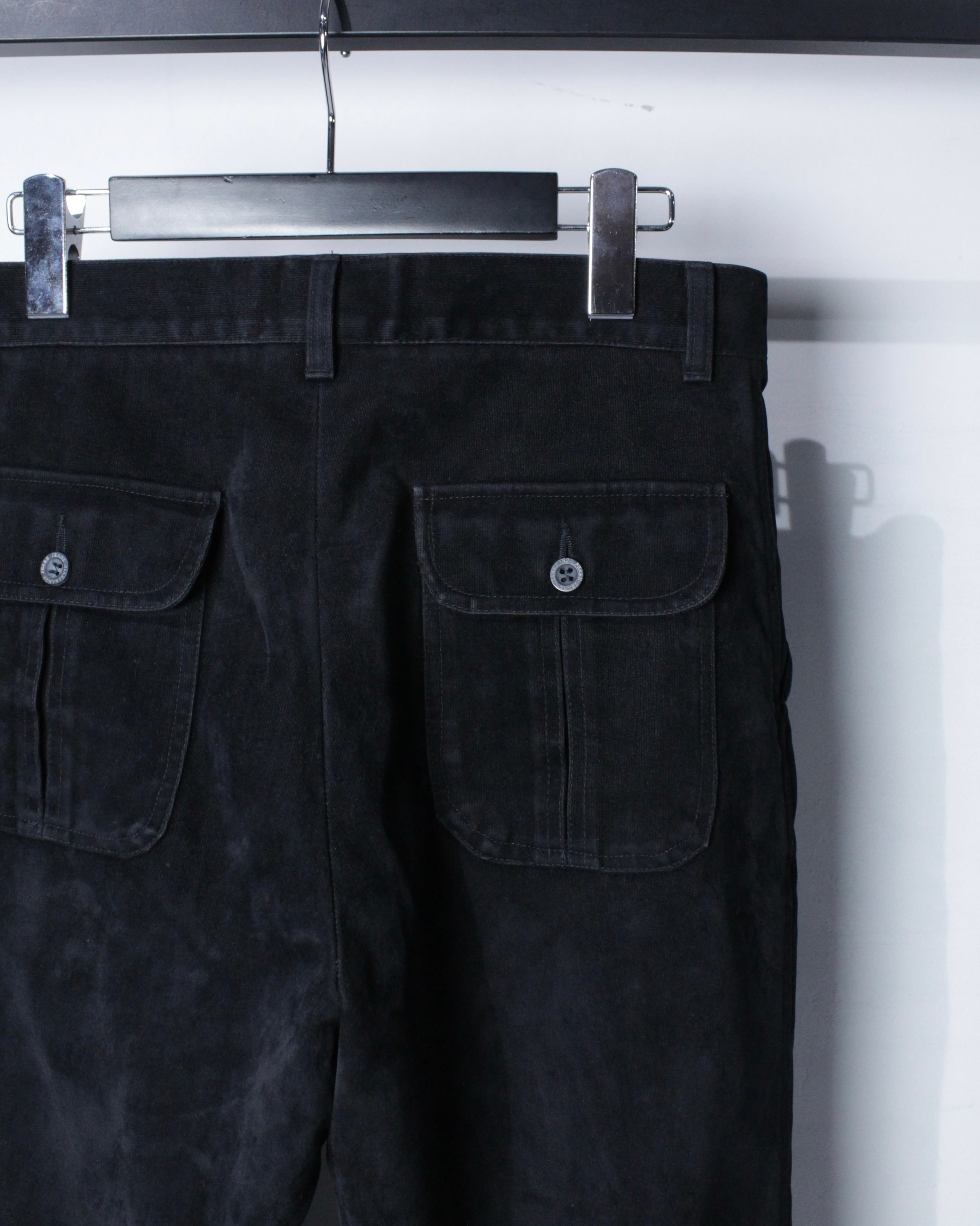 フロントはすっきりとした設計で、バックにはフラップポケットを配置。装飾を抑えたデザインの中に、パターンワークや縫製の美しさが際立つ仕上がりに。