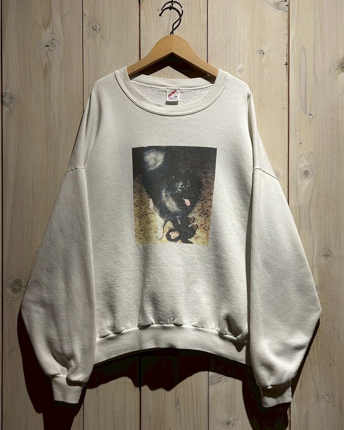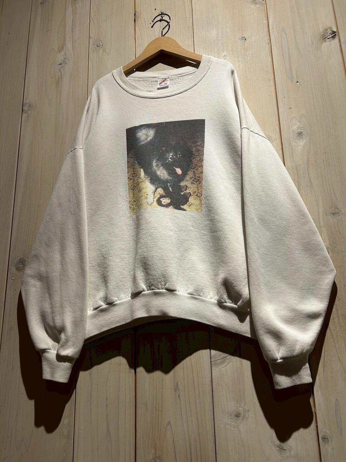 どこかの家の愛らしい犬を切り取った、90'sヴィンテージのフォトプリントスウェット。
