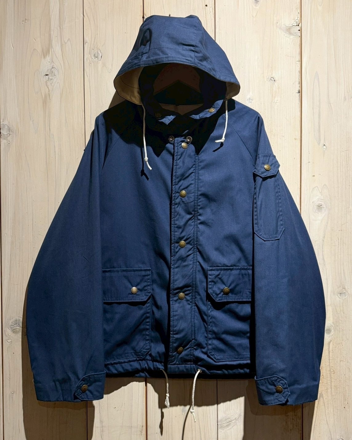 深みのあるブルーカラーのコットンシェルを採用し、マットで落ち着いた質感が魅力の1着。無駄を削ぎ落としたソリッドなボディに、フロントのフラップポケットやスナップボタン、ドローコード付きのフードなど、王道のディテールを踏襲。洗練さとアウトドアウェアらしい実用性が両立されています。