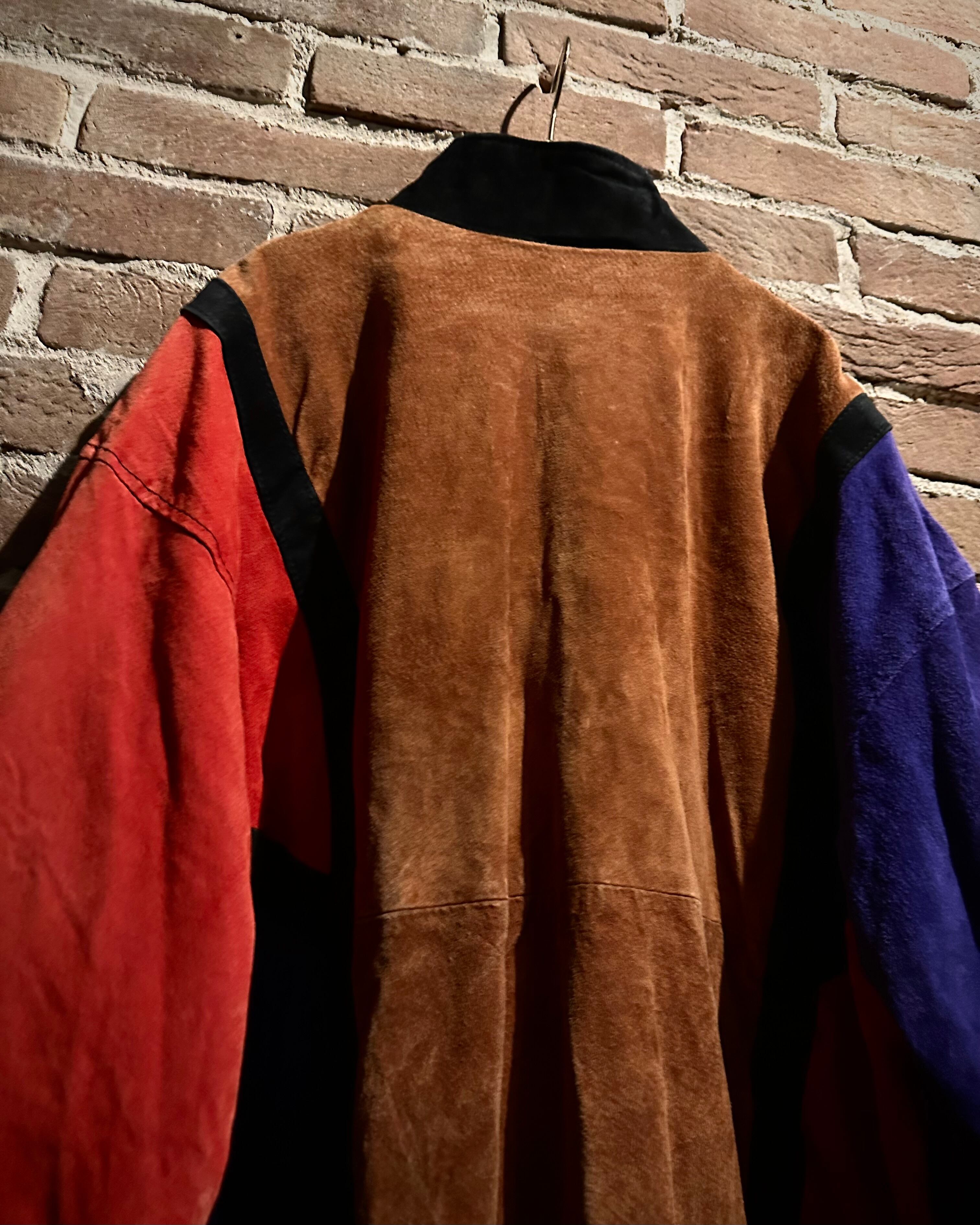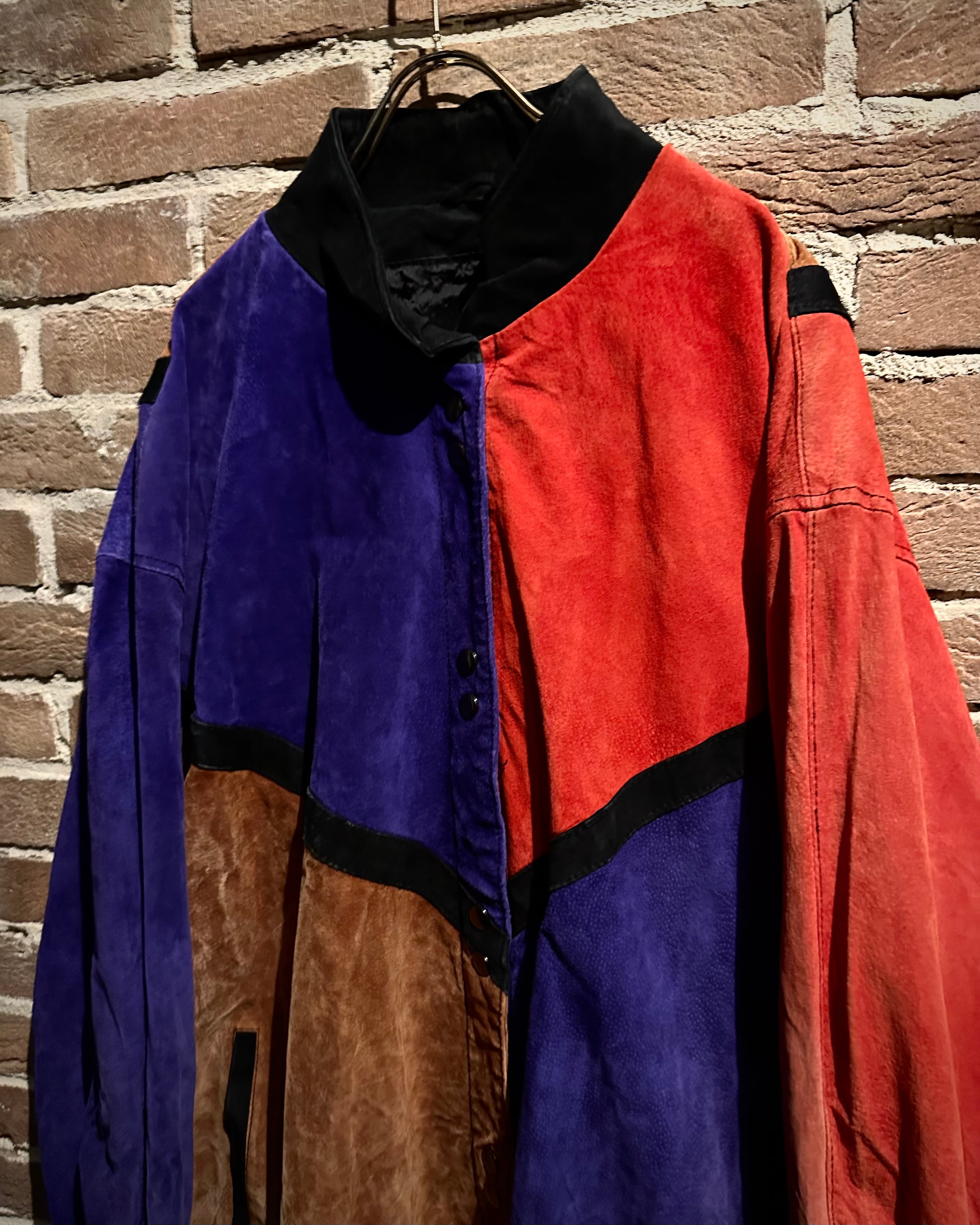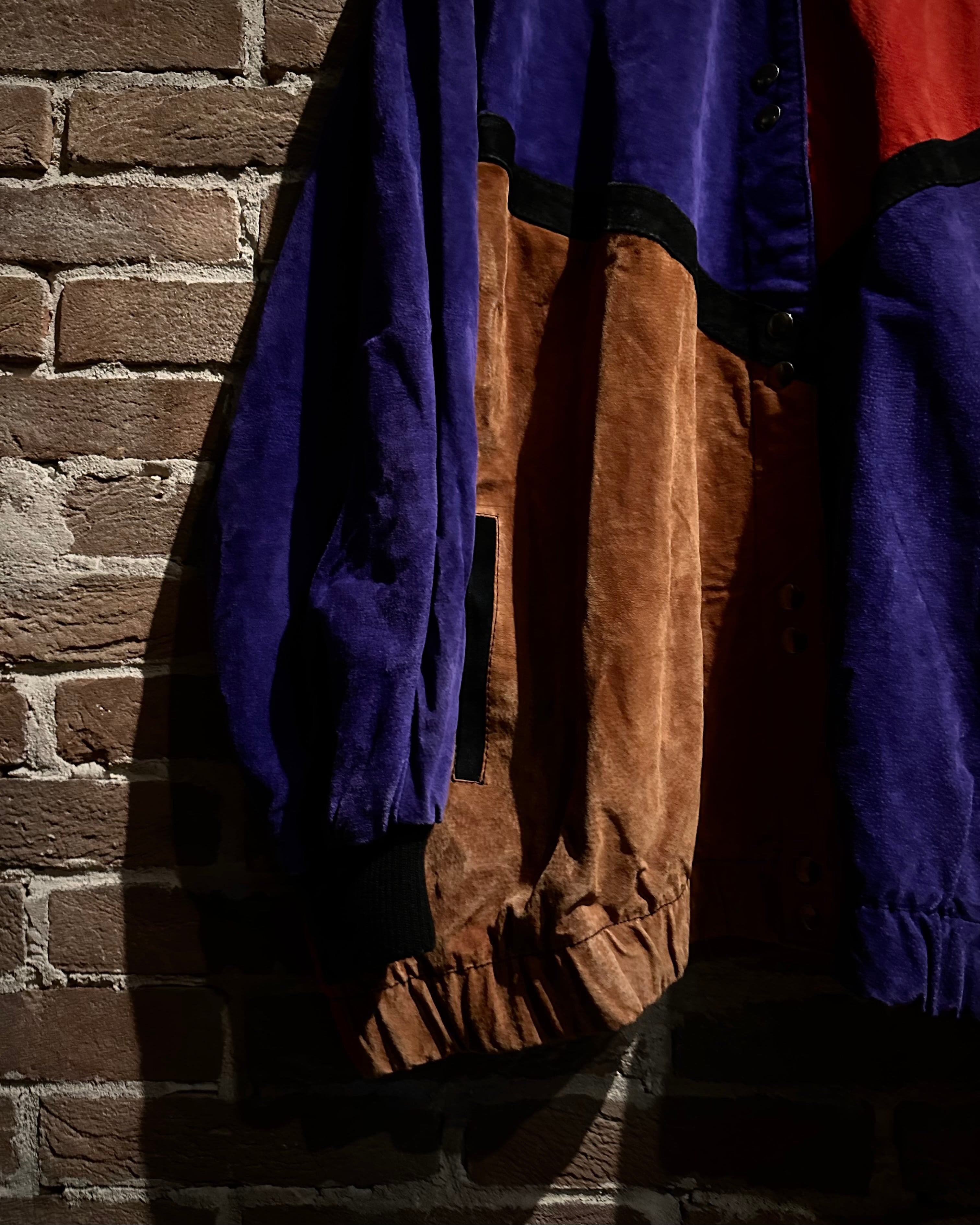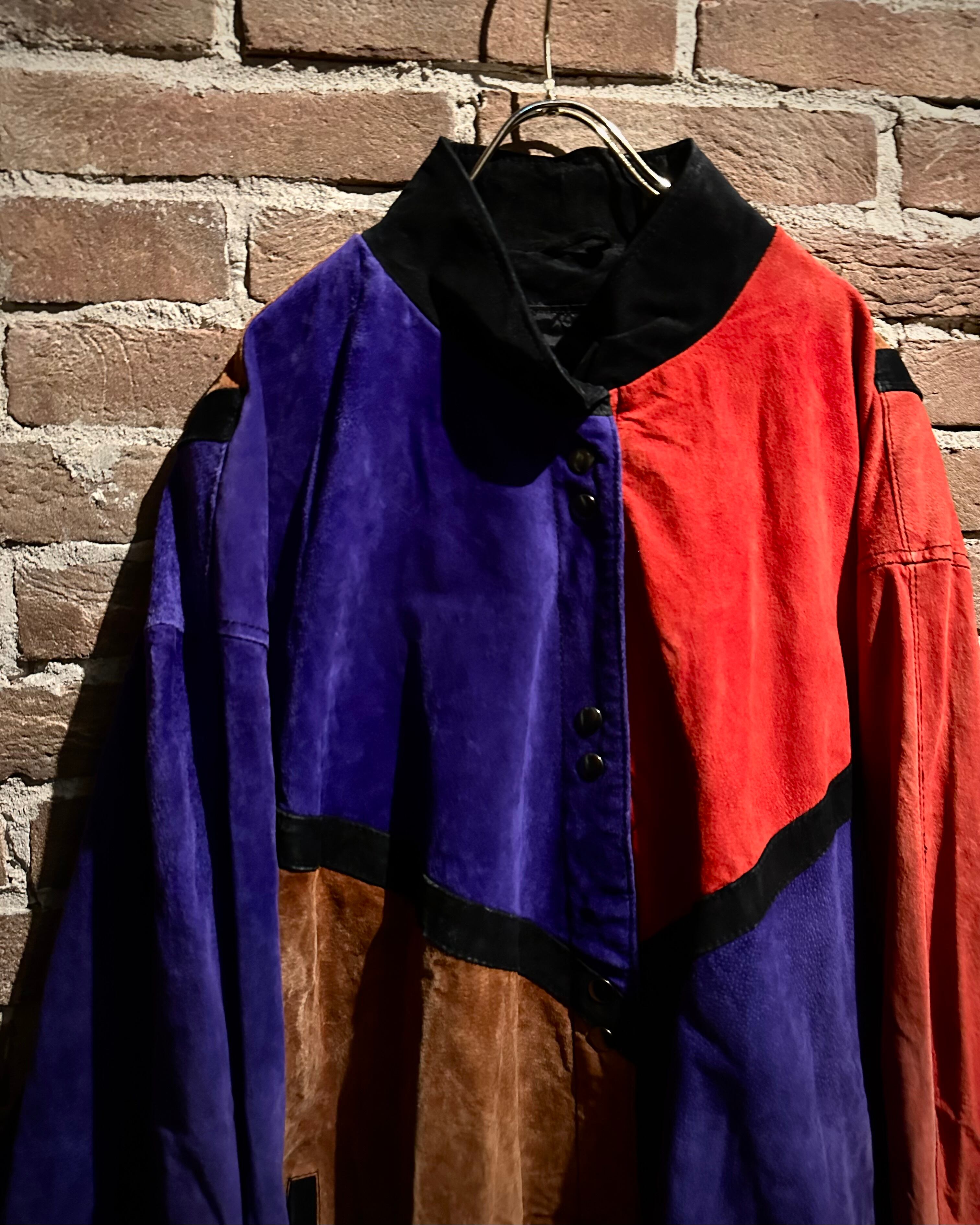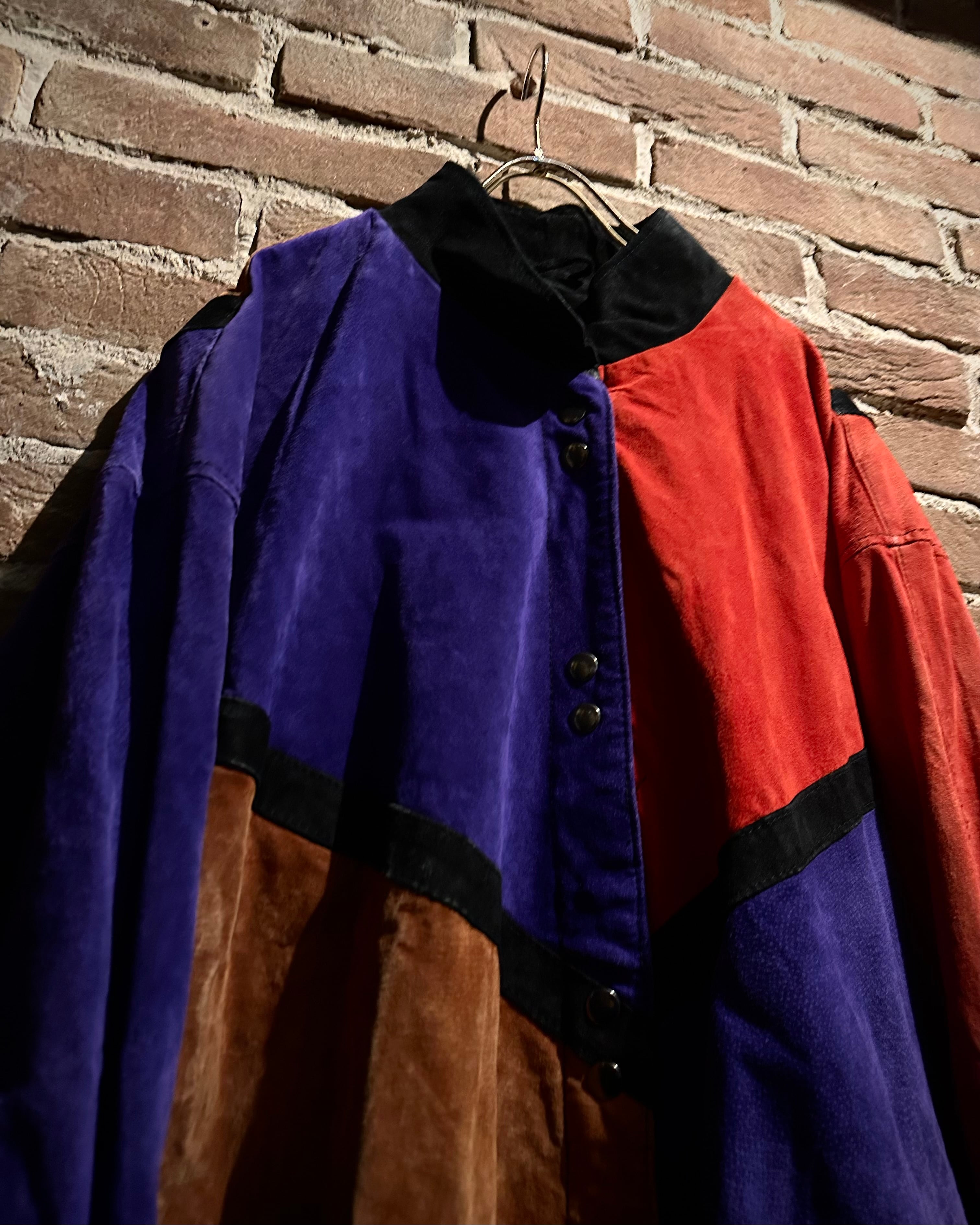 ハリがありながらも柔らかい極上スエードレザーを採用し、希少なカラーレザーでモンドリアン的な切り替えを施した稀有な一着。1965年にイヴ・サンローランがモンドリアンから着想を得て制作した“モンドリアン・ルック”を彷彿とさせるデザインです。