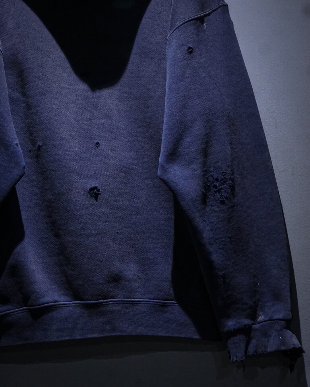 長年の着用によって生まれたフェード感が全体を包み込み、深いネイビーがムラのある絶妙な褪色へと変化。リアルな背景を想像させる、当時の空気をそのまま纏ったかのような1着に仕上がっています。