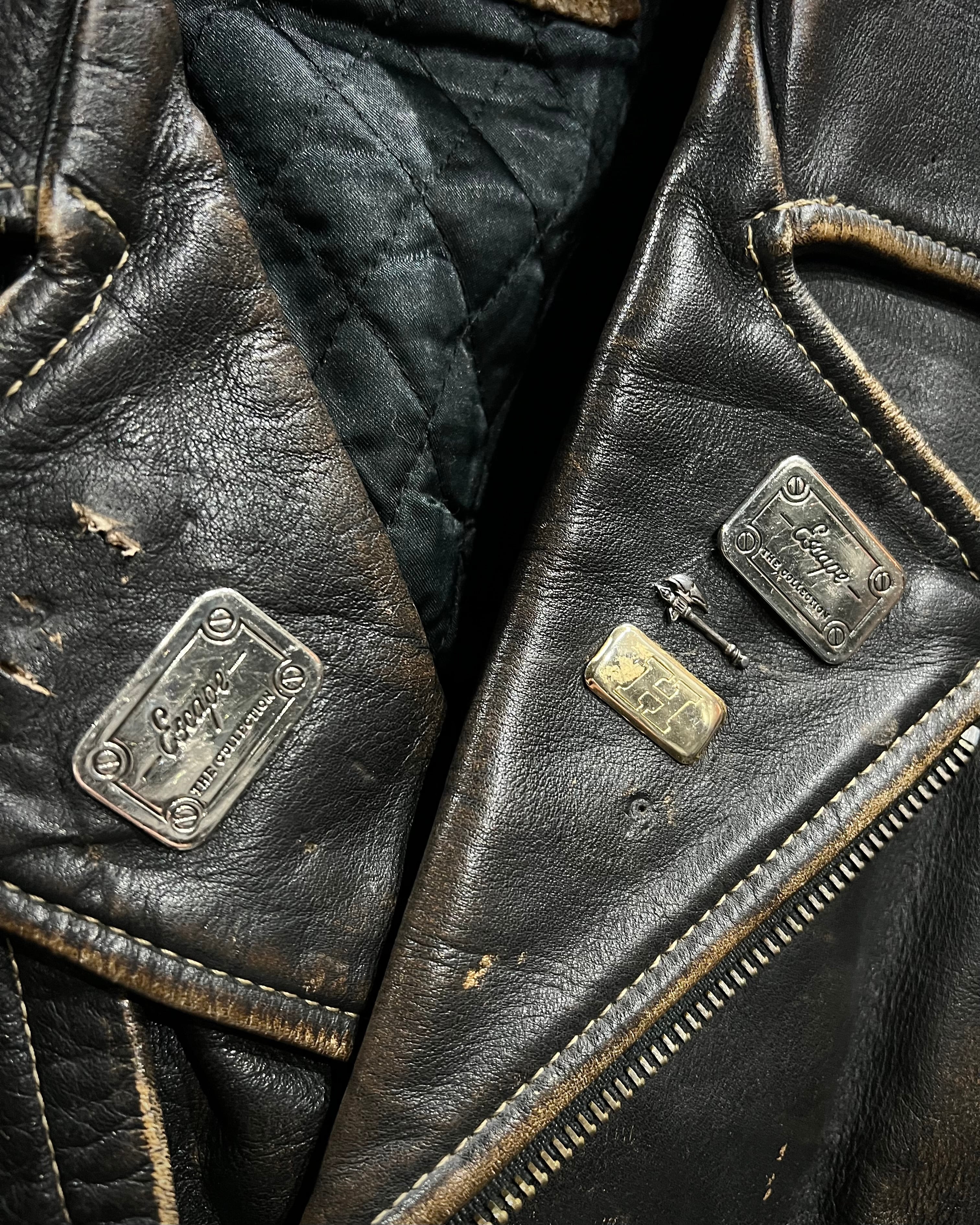肉厚でしなやかなレザーを用い、全体に刻まれたシワや擦れ、色の抜けのエイジングが圧巻な1着。ブラックをベースに、茶芯が浮かび上がるフェード感が奥行きを生み、無骨さと色気を同時に纏った表情へと昇華されています。
