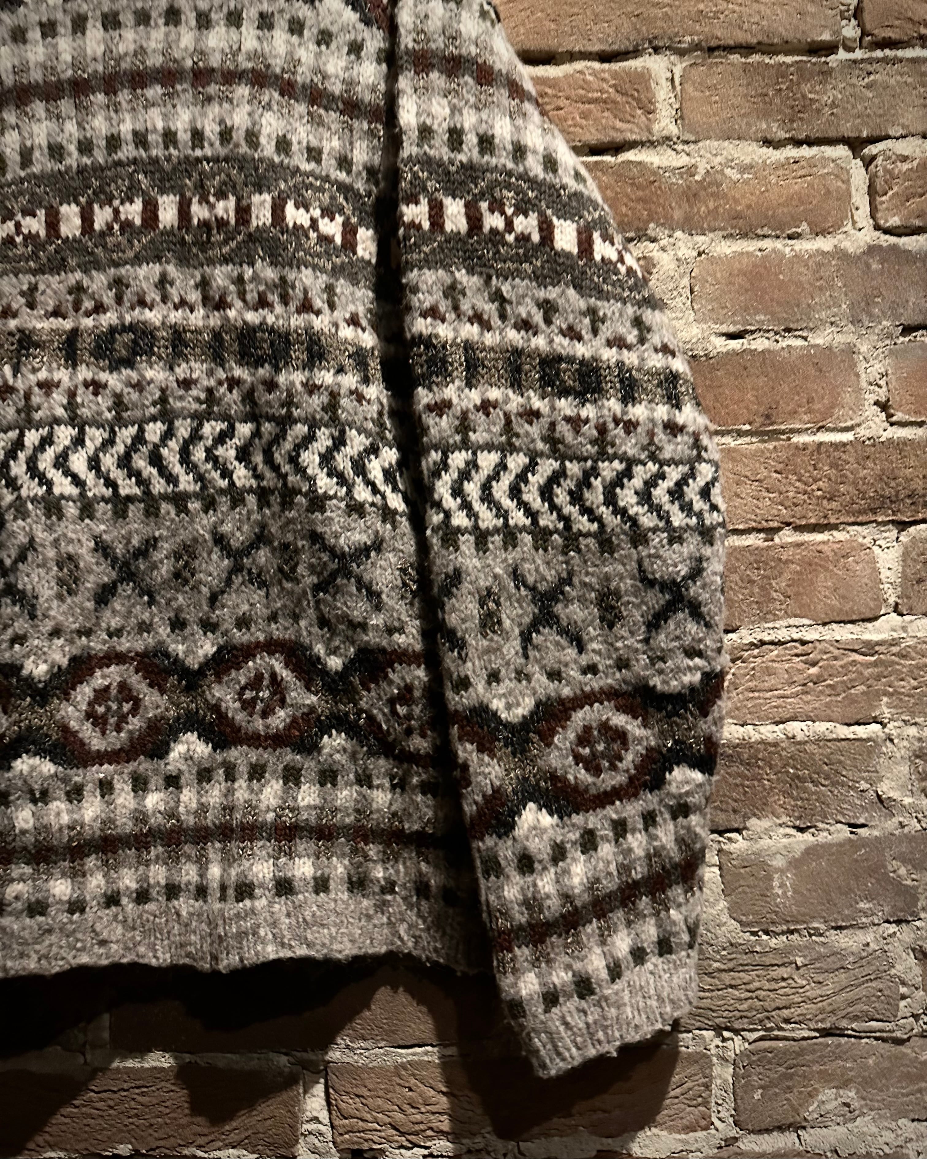 全面に配された幾何学×ノルディック調のパターンは、クラシックでありながらファッションピースとしての完成度も高いデザイン。コーディネートに馴染みやすいのも嬉しいポイントです。