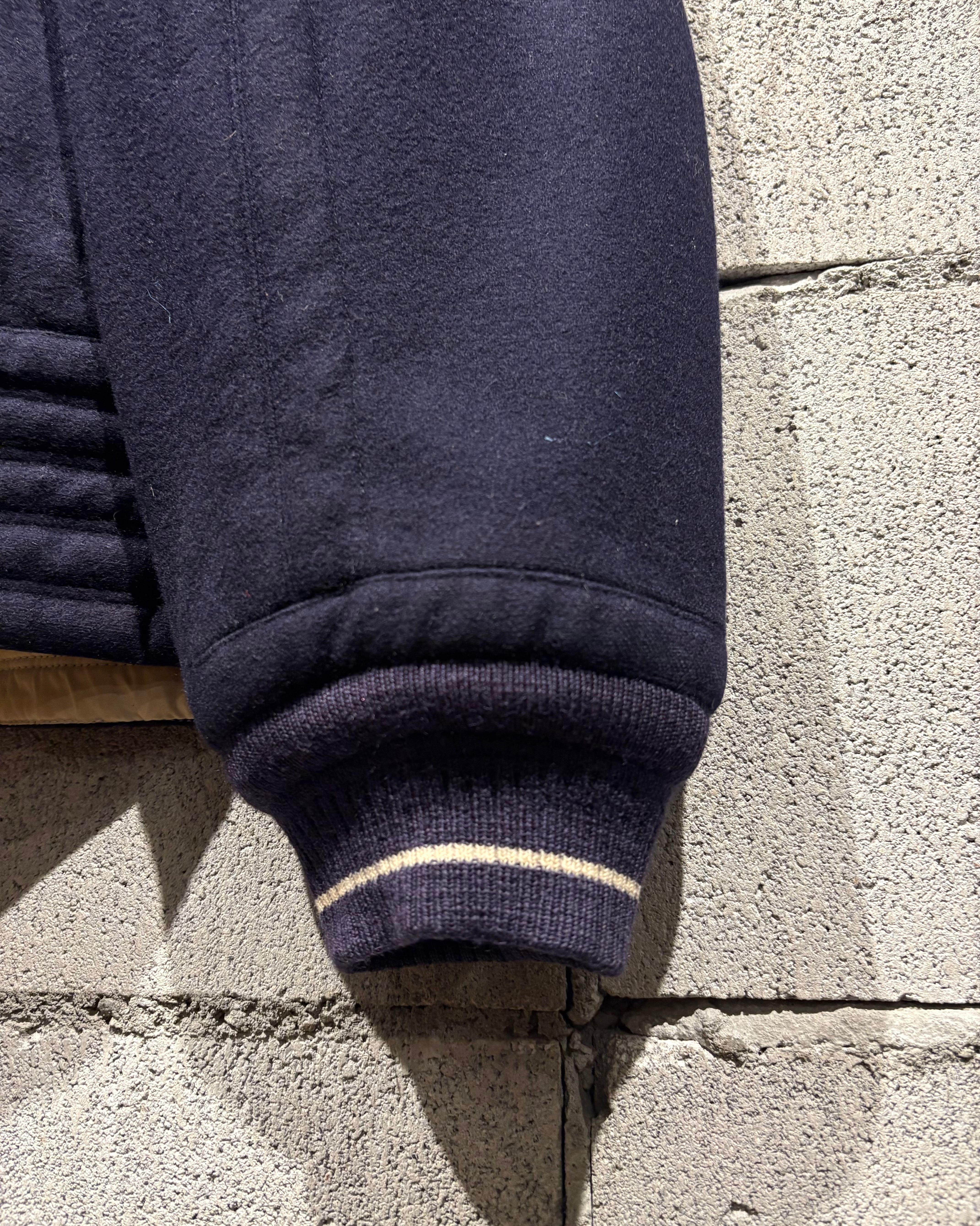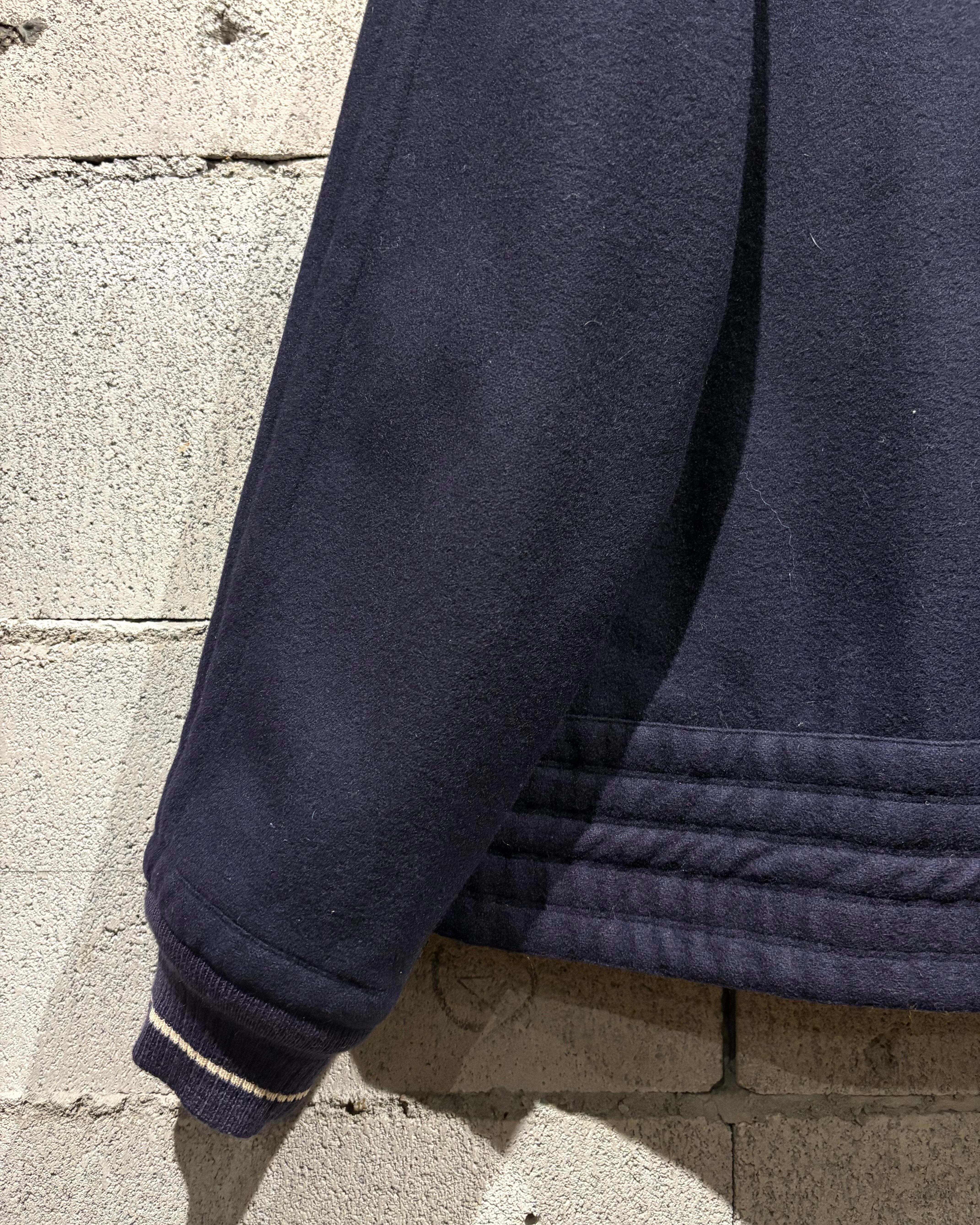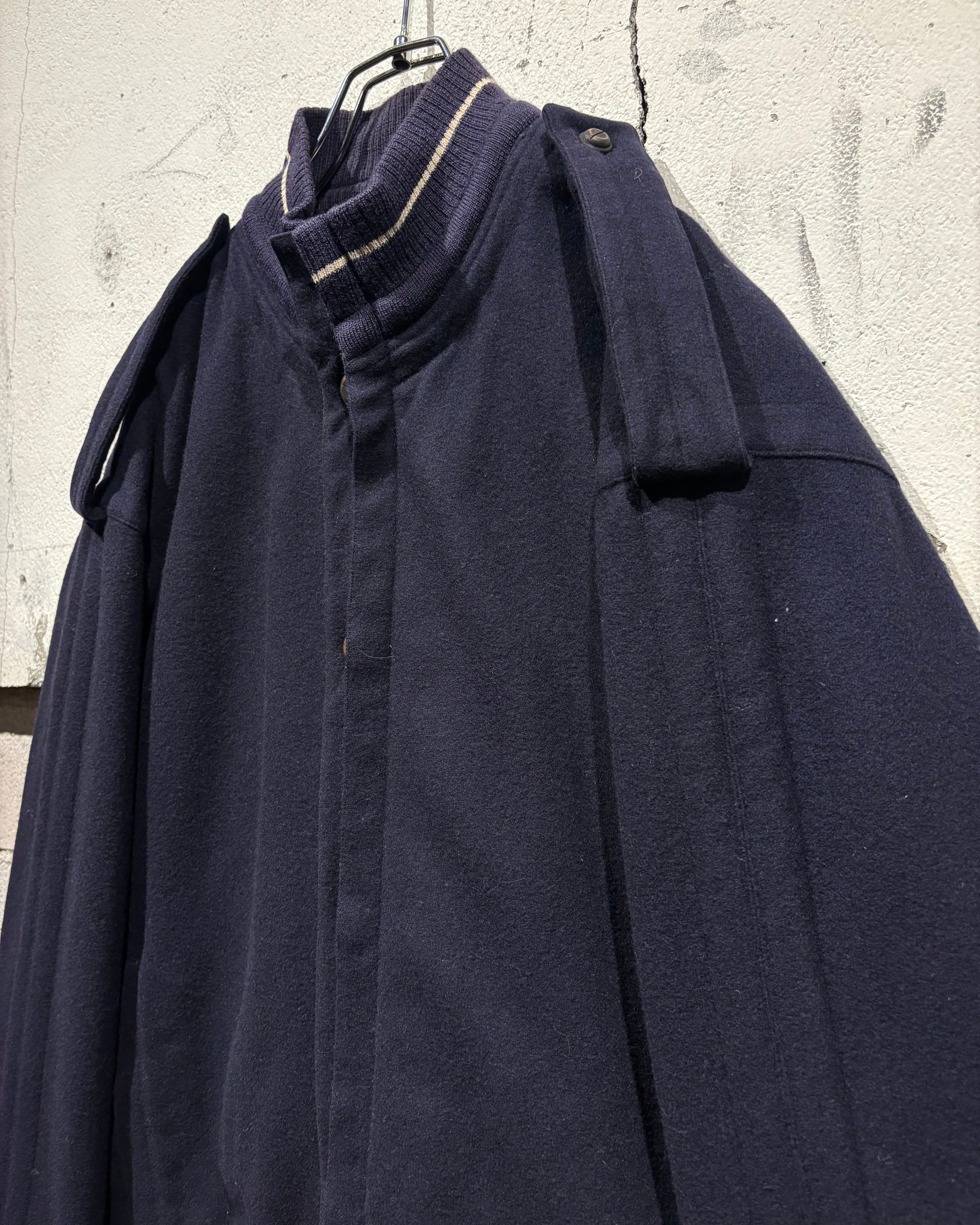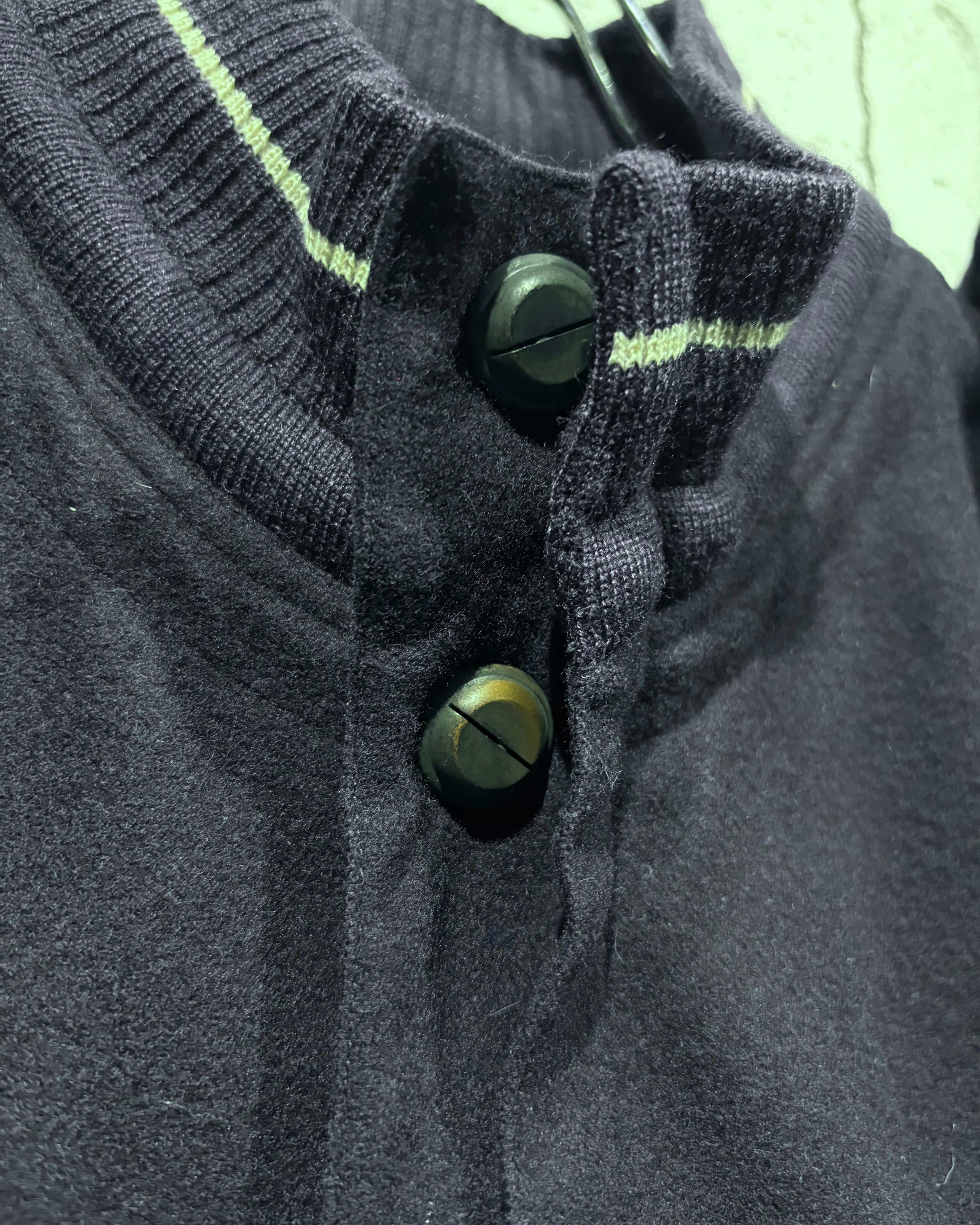 深みのあるネイビーカラーのウールボディは、しっとりと滑らかな質感と程よい肉感を兼ね備え、上品さと温もりを同時に感じさせる仕上がり。ミニマルな表情の中に、素材の良さが際立ちます。