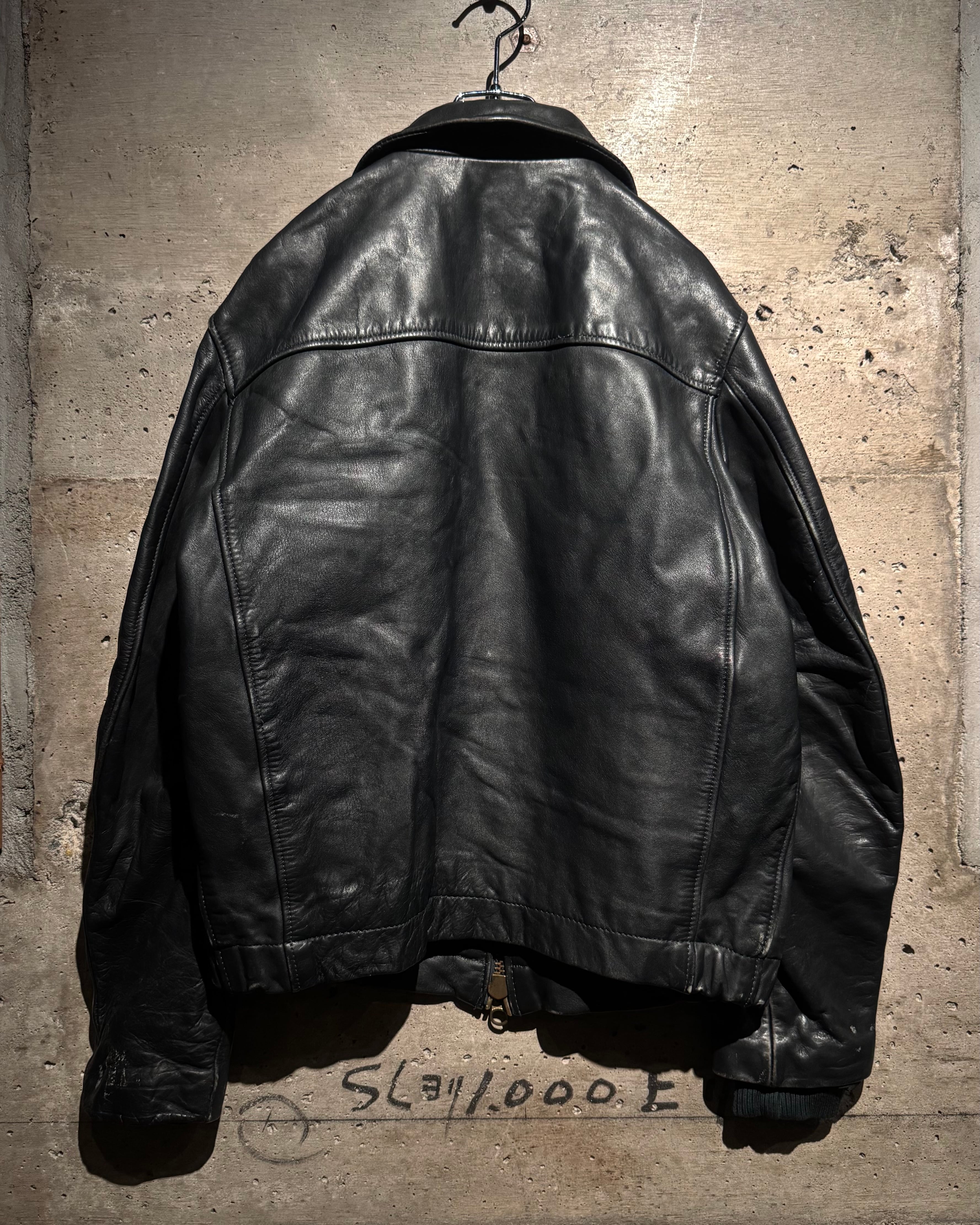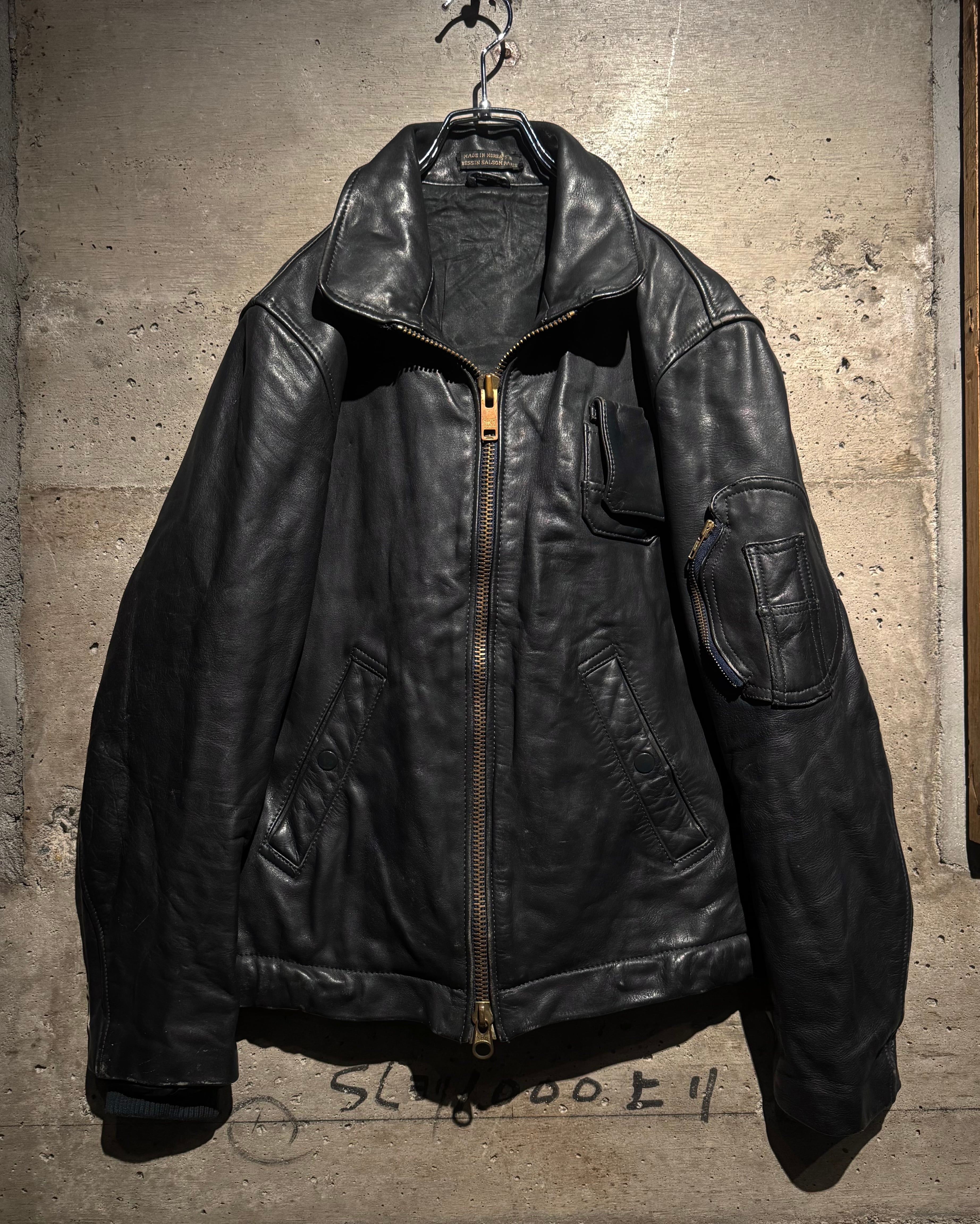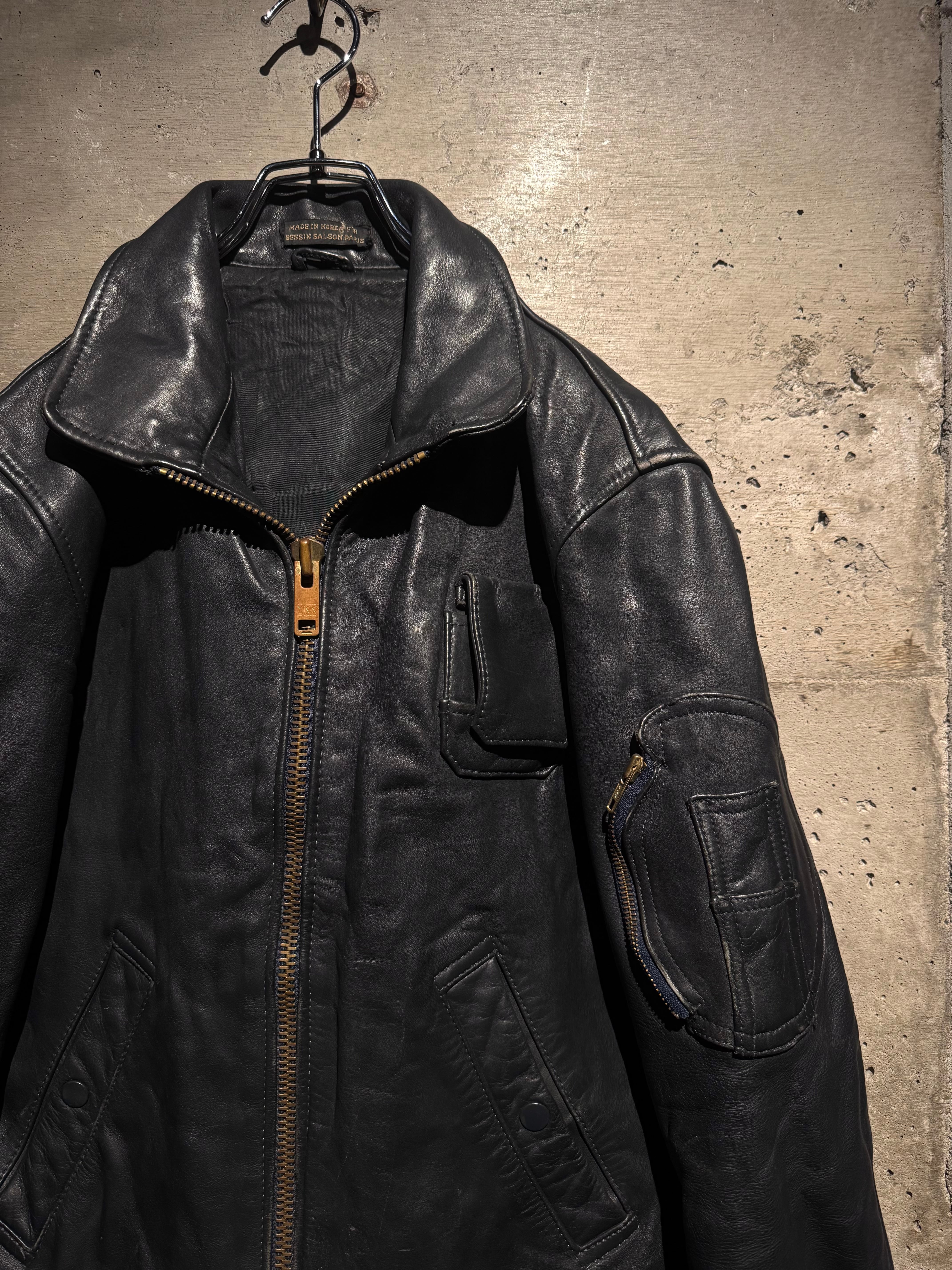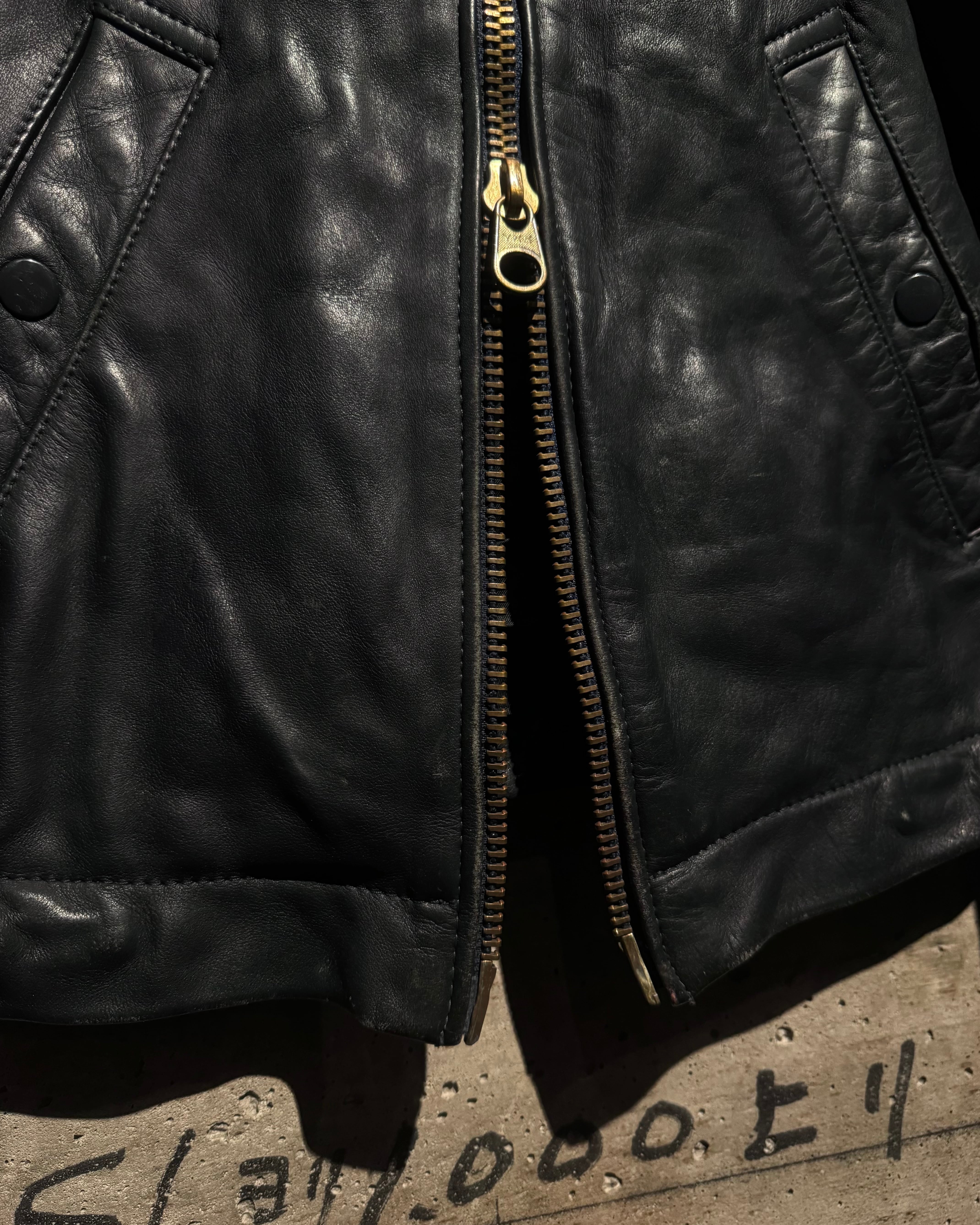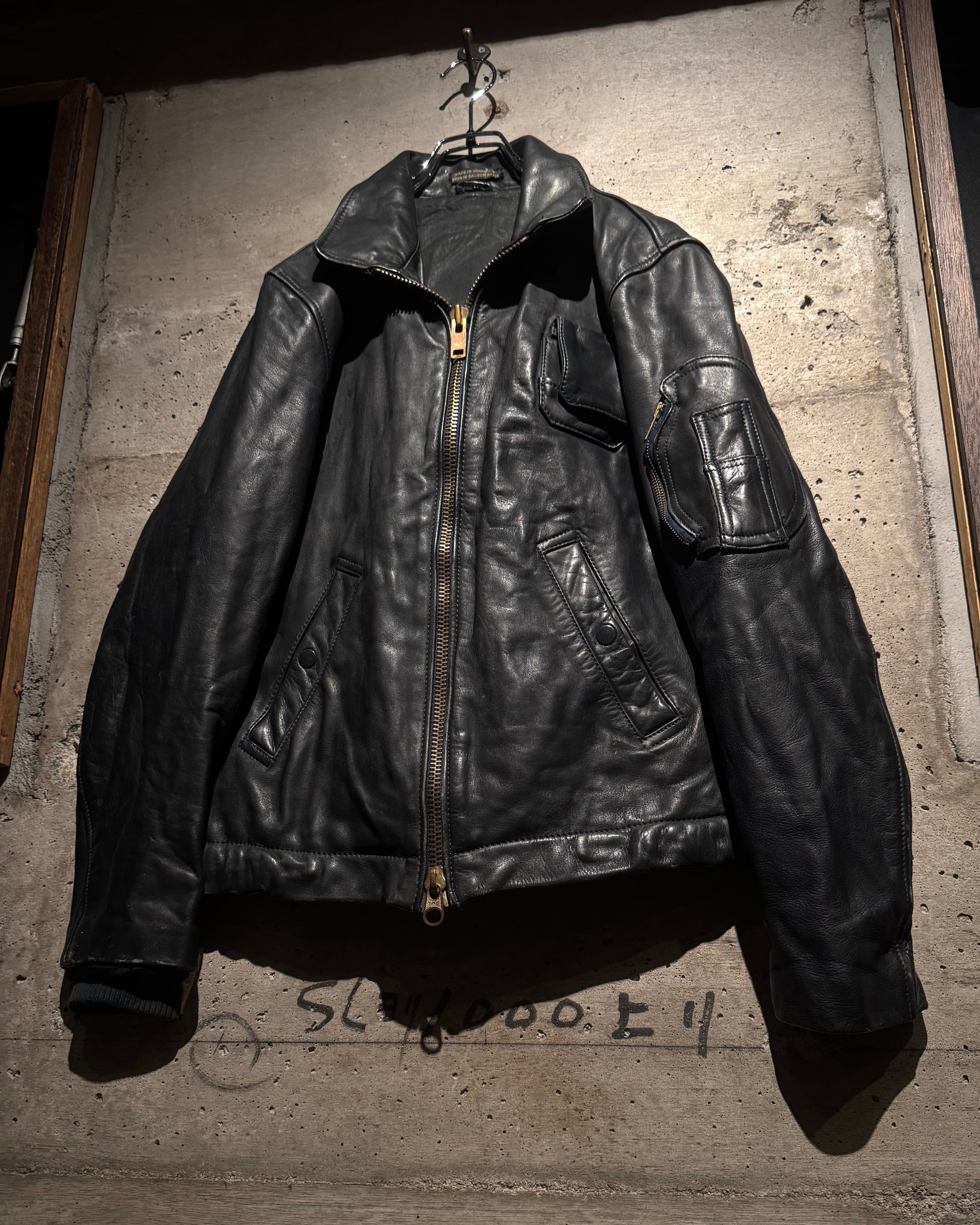 重厚でありながらしなやかさも感じさせるブラックレザーは、年月を経たことで鈍い艶と深みを帯び、ミリタリー特有の迫力と色気を纏う仕上がり。