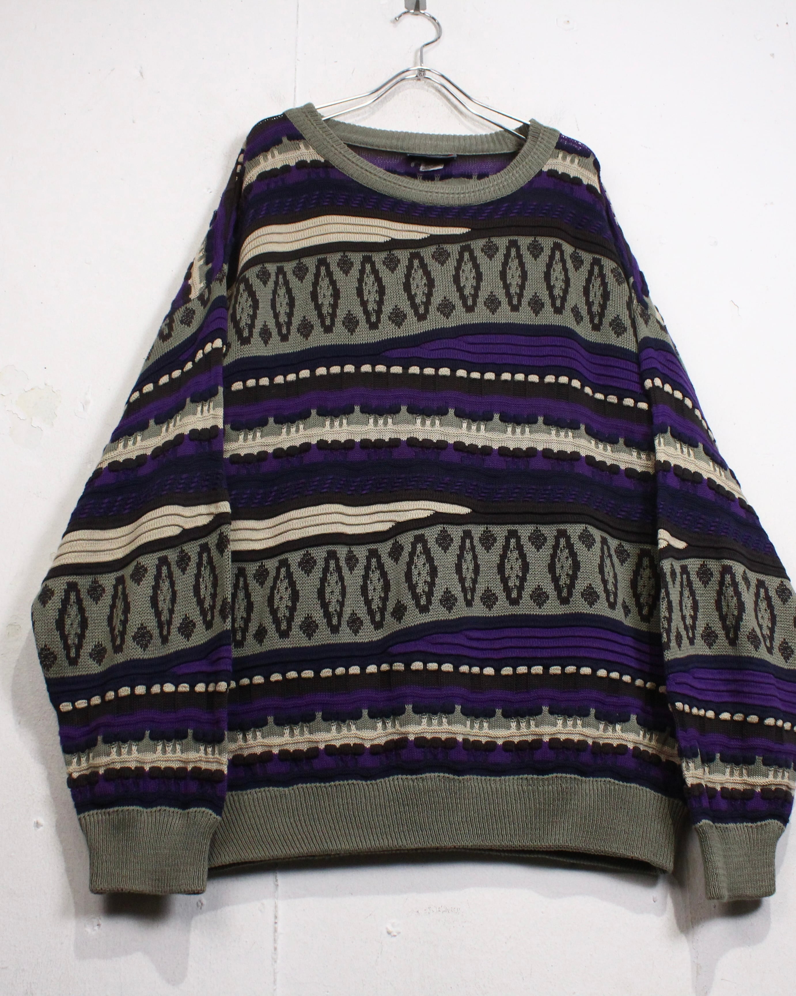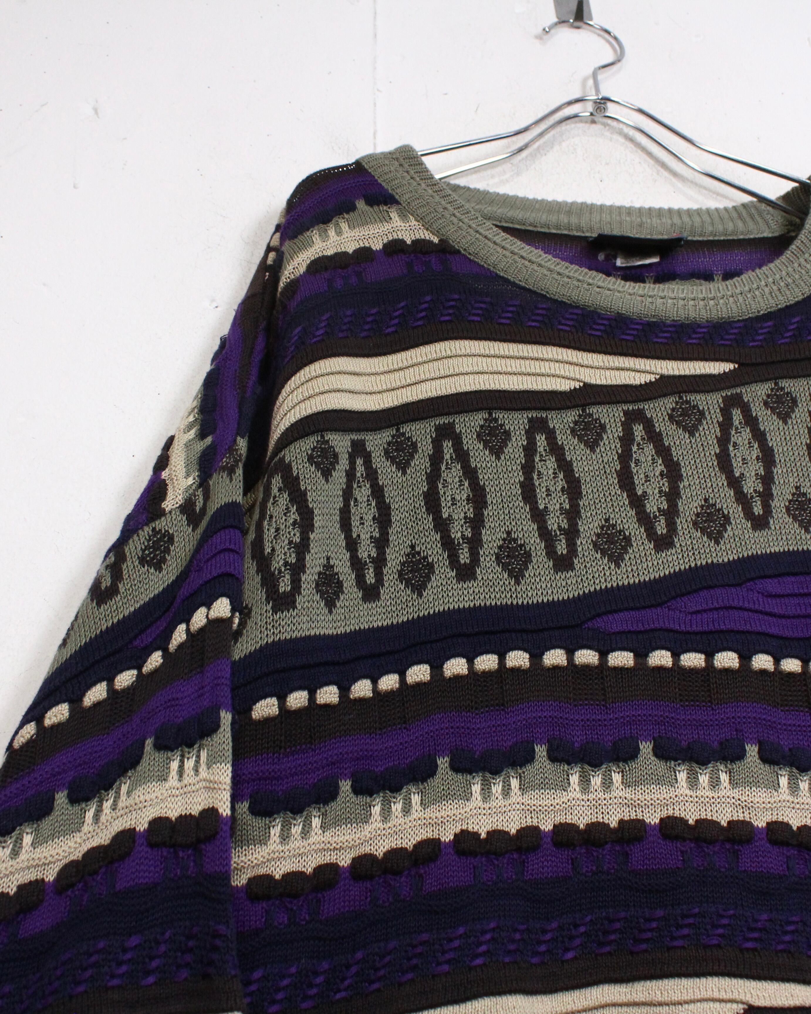 立体的な編み地と大胆な配色が目を惹く、存在感抜群の3Dニットをご紹介いたします。